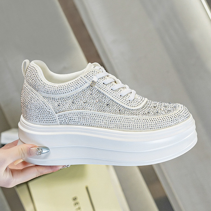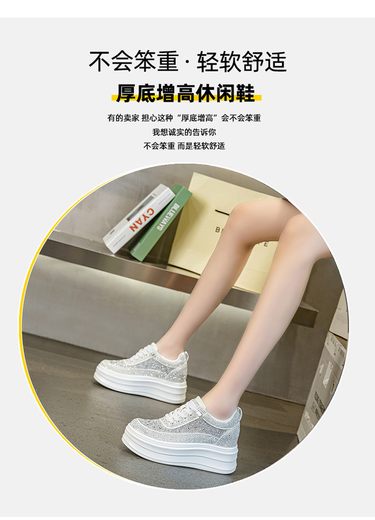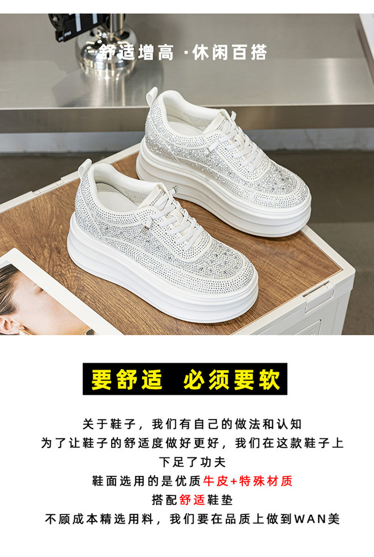 小白鞋镂空圆头板鞋水钻透气厚底内增高休闲软底单鞋AM1327