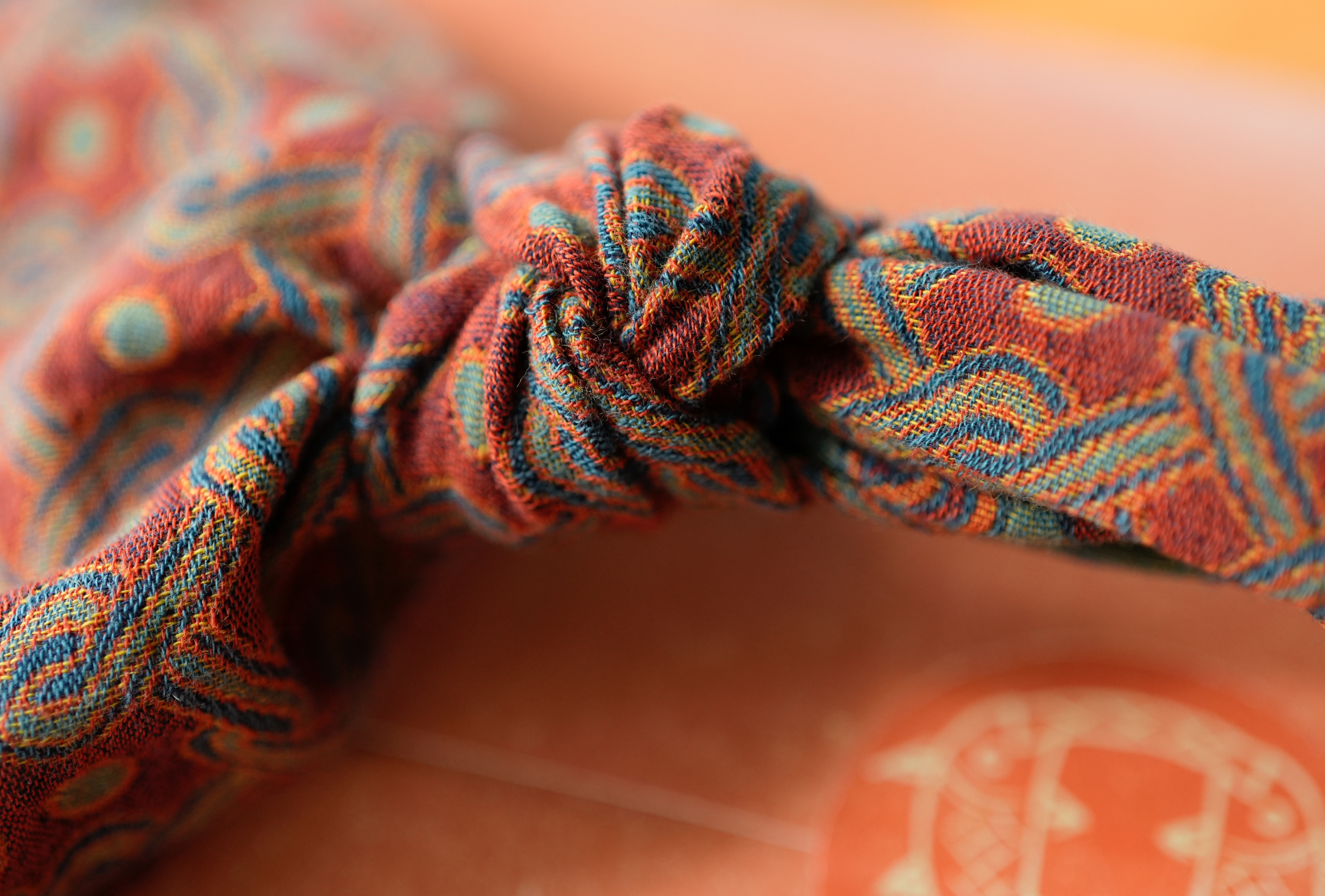 提手以织锦为之,纹作缠枝莲,绾同心结。