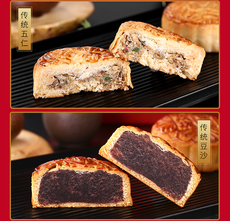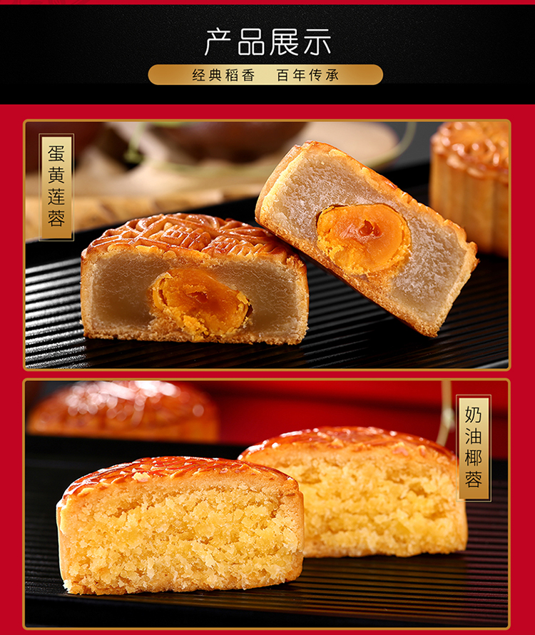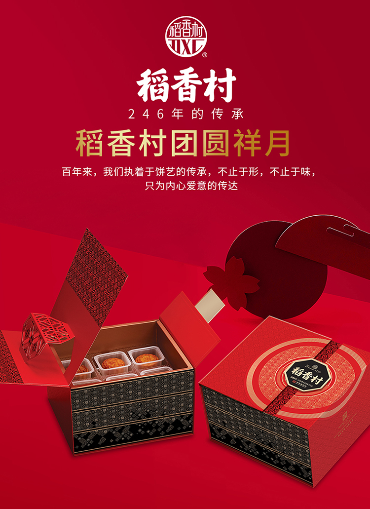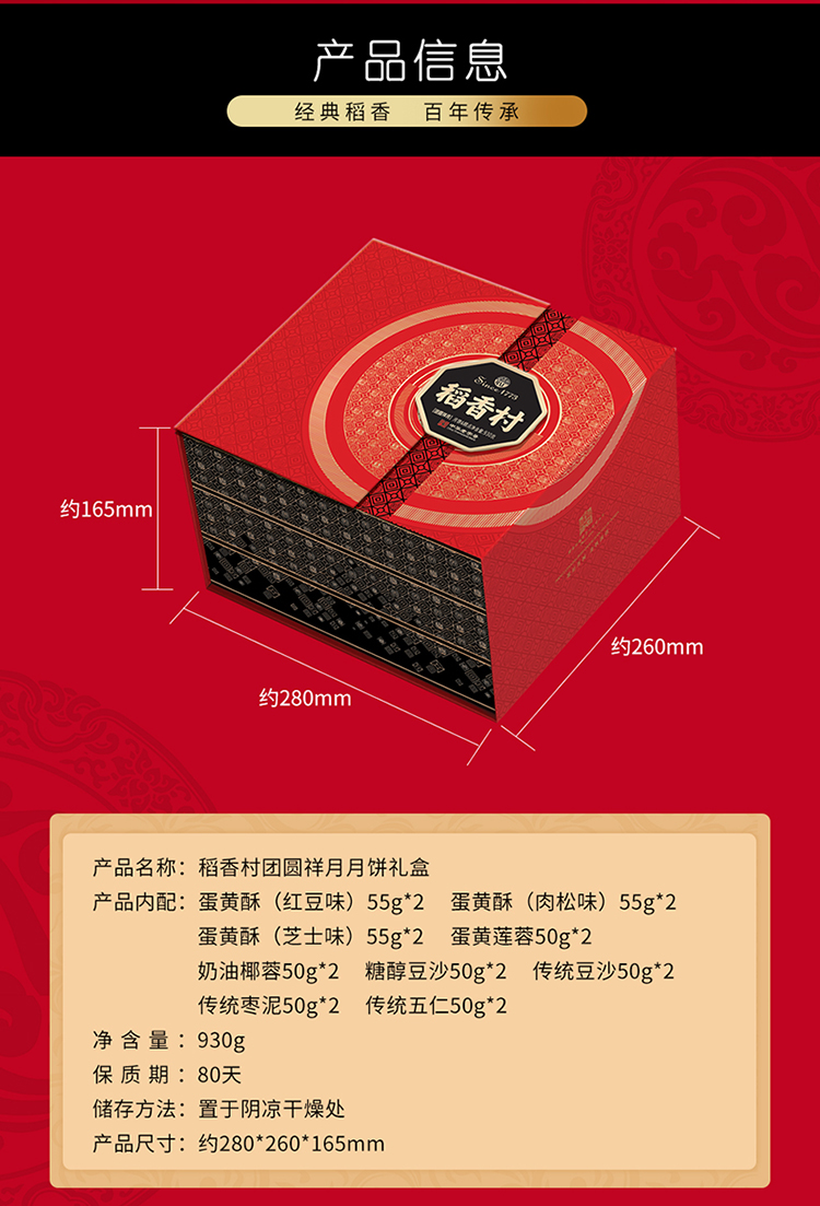 【稻香村月饼礼盒】 传统五仁糖醇玫瑰蛋黄莲蓉椰蓉 团圆祥月 930g