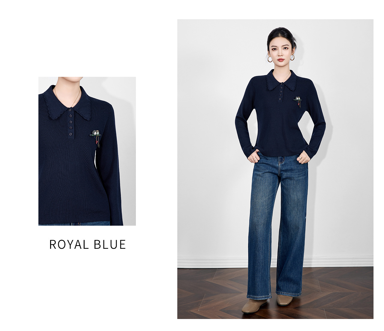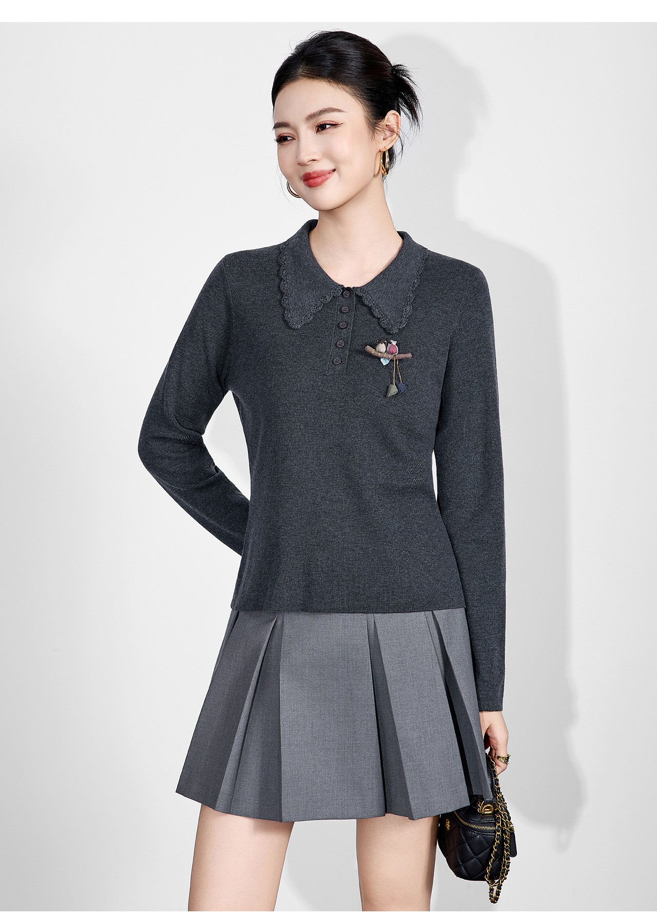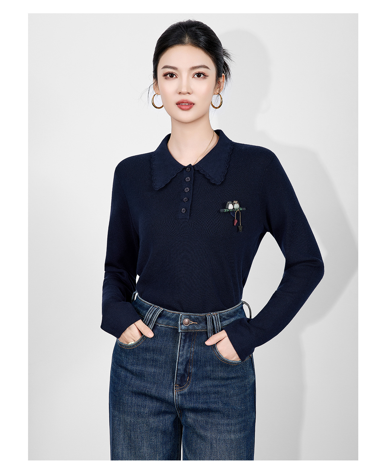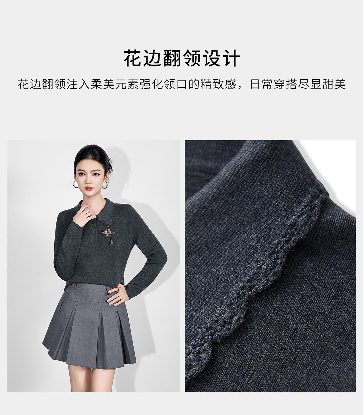 「高货wl」全新升级【铂金会员192/天猫259/差价67】(64726)洛诗琳气质简约花边娃娃领上衣2025秋冬减龄百搭针织上衣