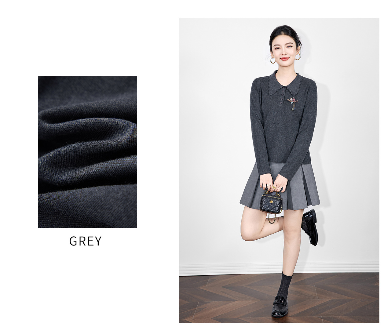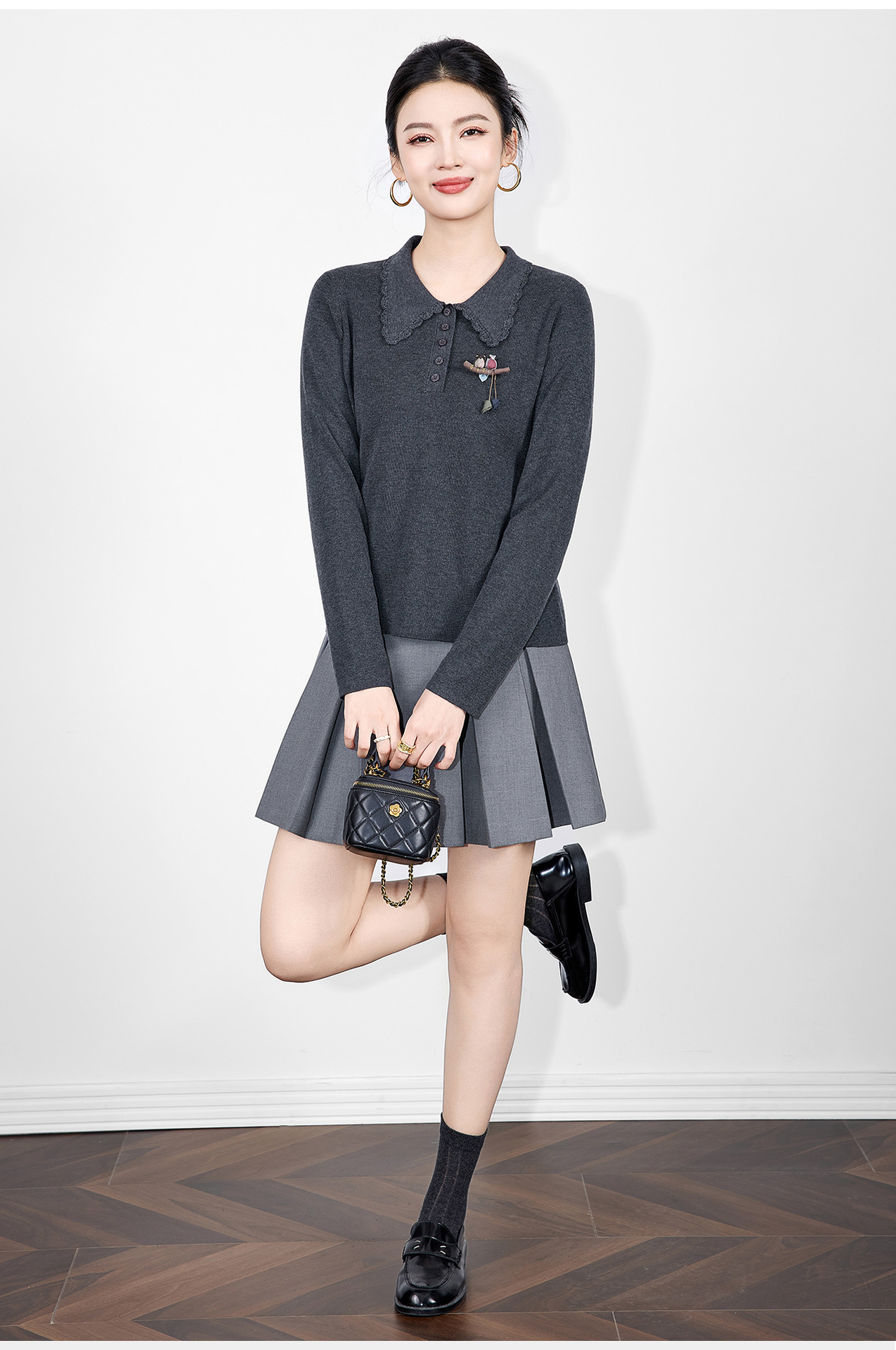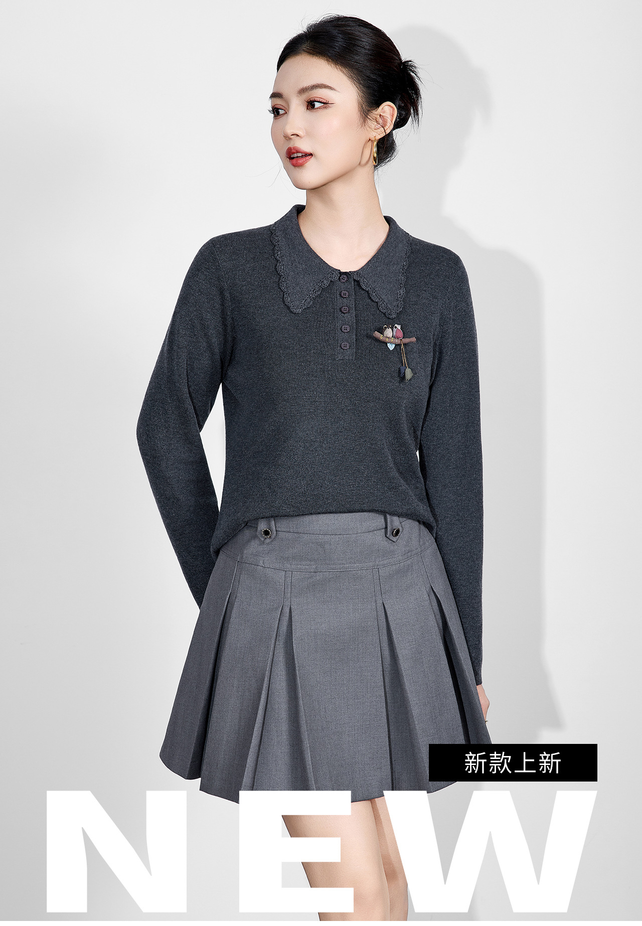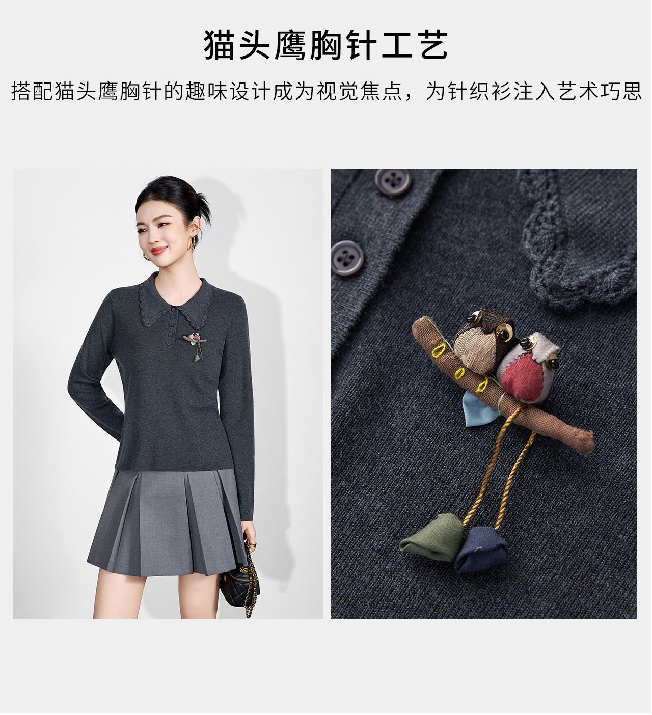 「高货wl」全新升级【铂金会员192/天猫259/差价67】(64726)洛诗琳气质简约花边娃娃领上衣2025秋冬减龄百搭针织上衣