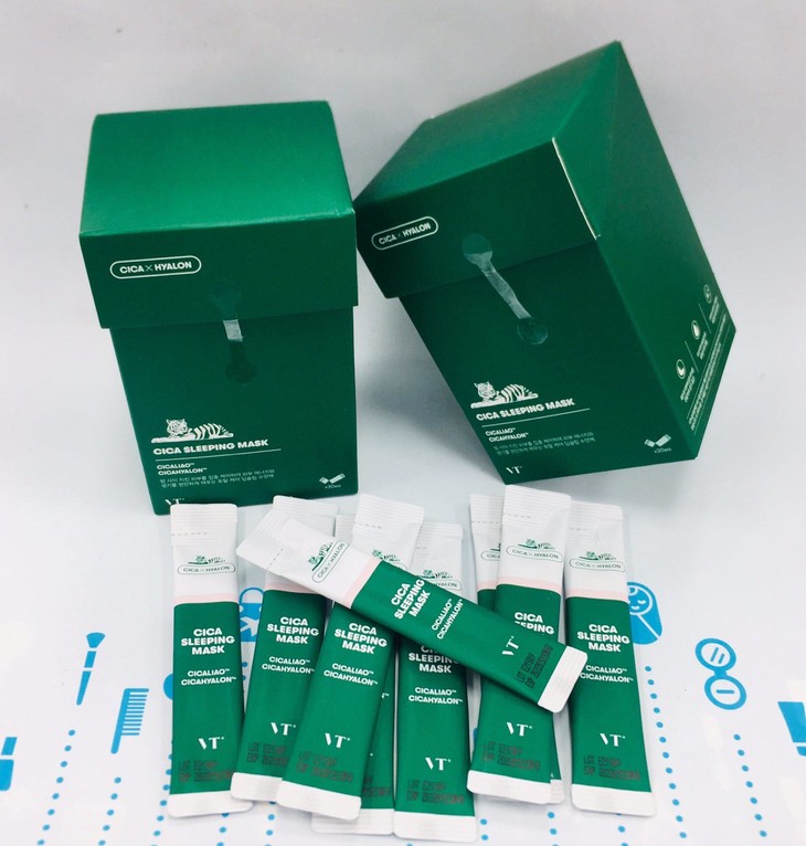 韩国vt老虎积雪草绿水鬼睡眠面膜30条👍熬夜党的福音🙋,舒缓镇定🍃,啫喱状质地,涂抹起来清爽不粘腻🙅,很容易吸收,涂在脸上冰冰凉凉的,在炎热的夏天使用真的很舒服🌬,出差旅行干净卫生又不占地方😘😘😘~