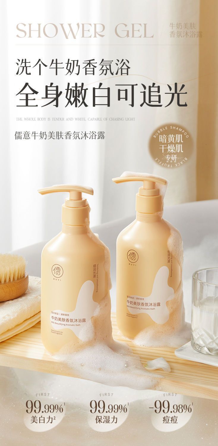 春节不打烊【控油除螨❗️持久留香】儒意牛奶香氛沐浴露烟酰胺提亮嫩肤控油保湿去背痘抑菌留香沐浴露。jd