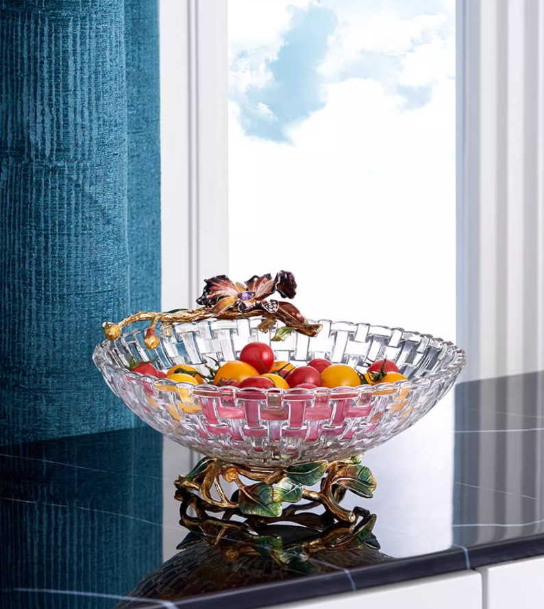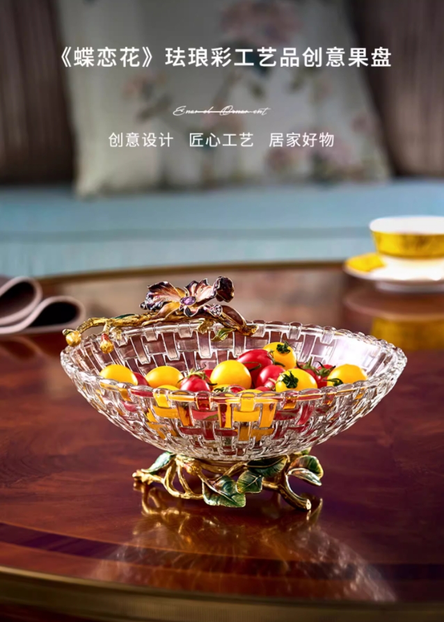 【彼达思】罗比罗丹蝶恋花果盘珐琅彩工艺网红水果盘现代客厅茶几家用轻奢零食糖果盘