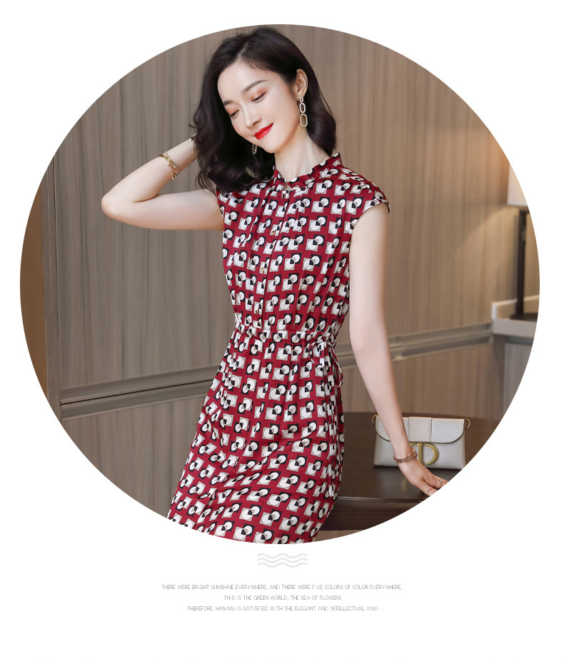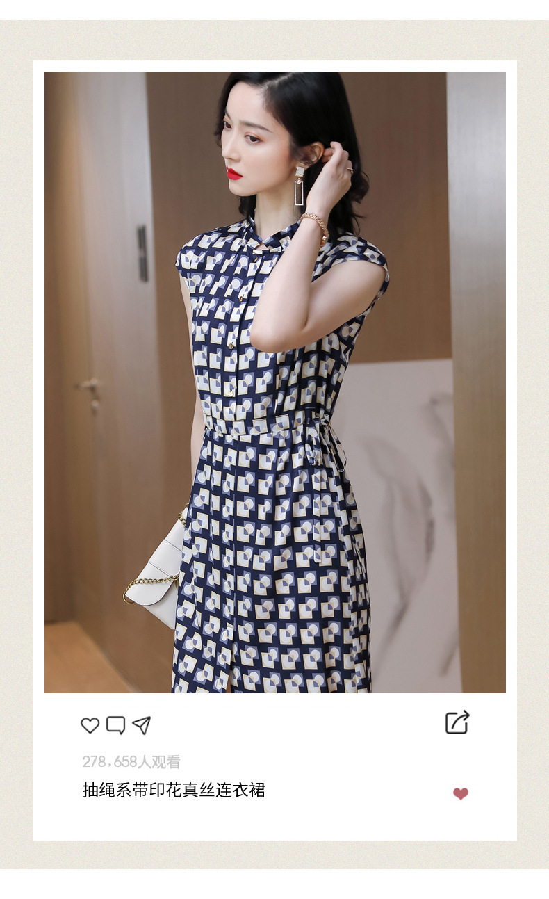 上海旗袍厂ASE-9159真丝连衣裙重磅桑蚕丝女2021春季新款收腰中长裙无袖修身