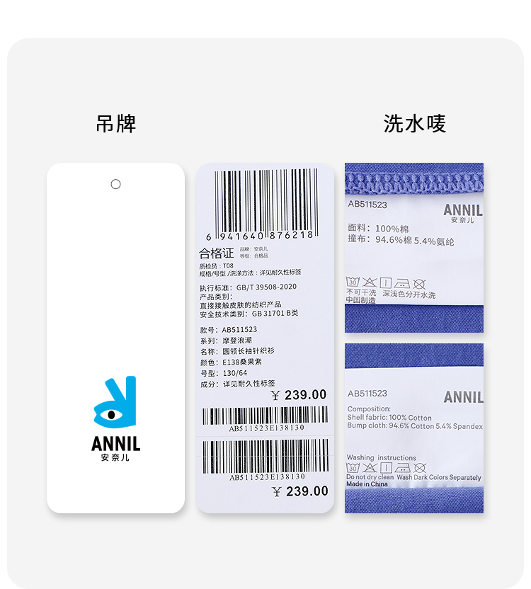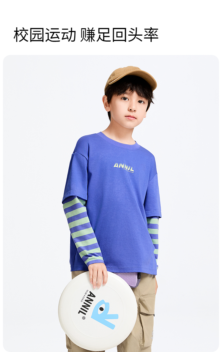 男童圆领液氨长袖T恤春季新款安奈儿童装实体店同款AB511523