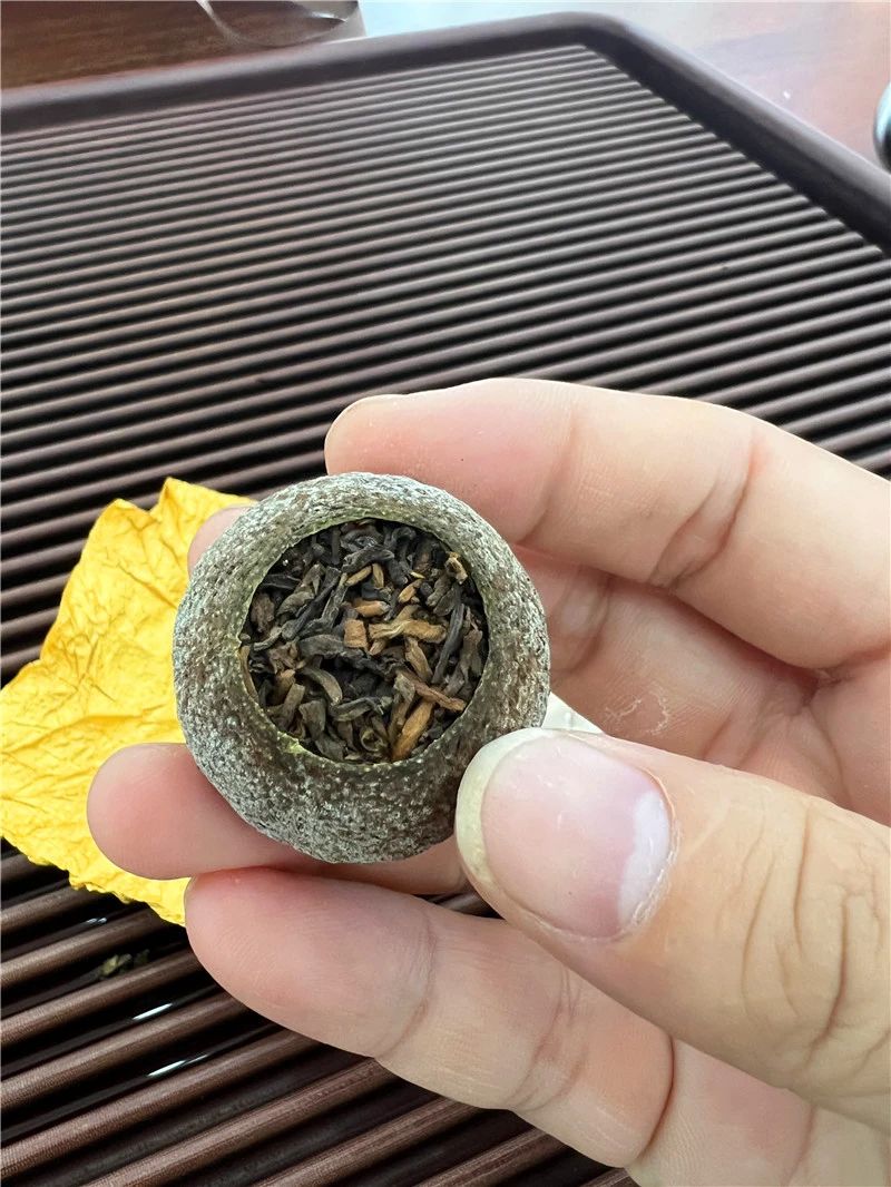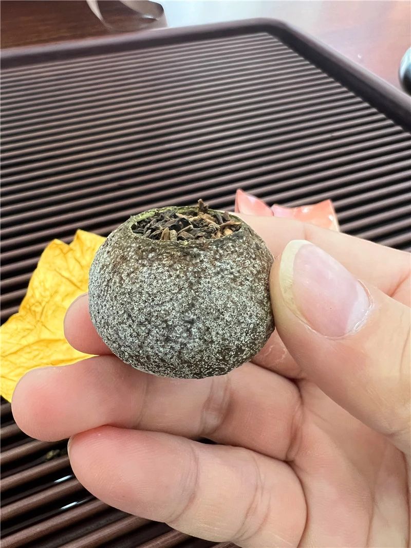 青柑个头小小的,每采摘一个,就意味着少了一片大红皮,所以产量比较少,比较珍贵,收藏价值高。