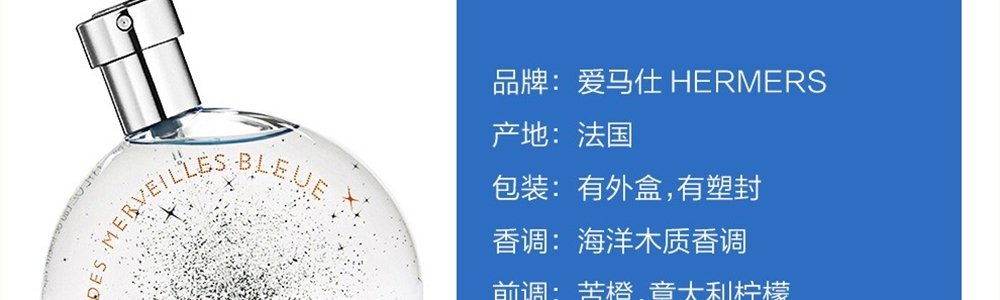 法国 爱马仕(Hermès)蓝色橘彩星光淡香水 30ml/瓶【香港直邮】