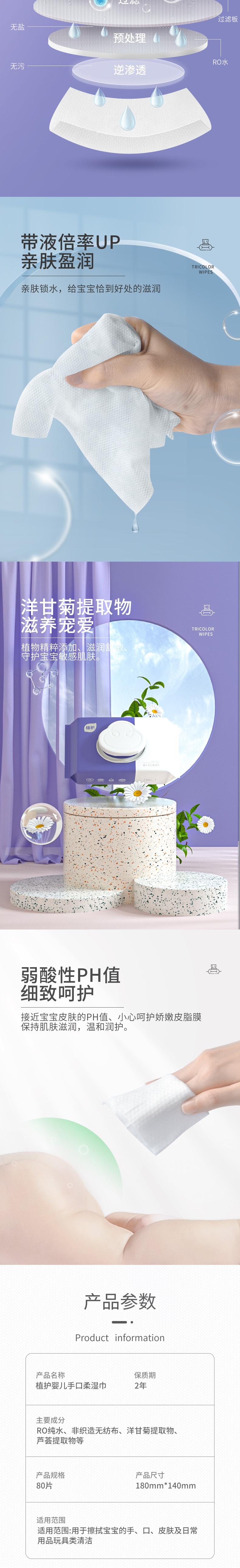 植护 三色花湿巾80抽*5包 zh80c05b
