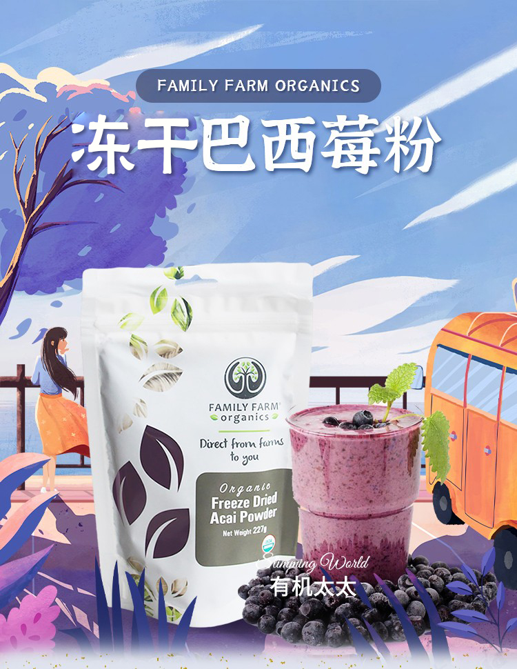 美国冻干巴西莓粉Family Farm巴西莓浆果粉无糖添加去YANG化Acai