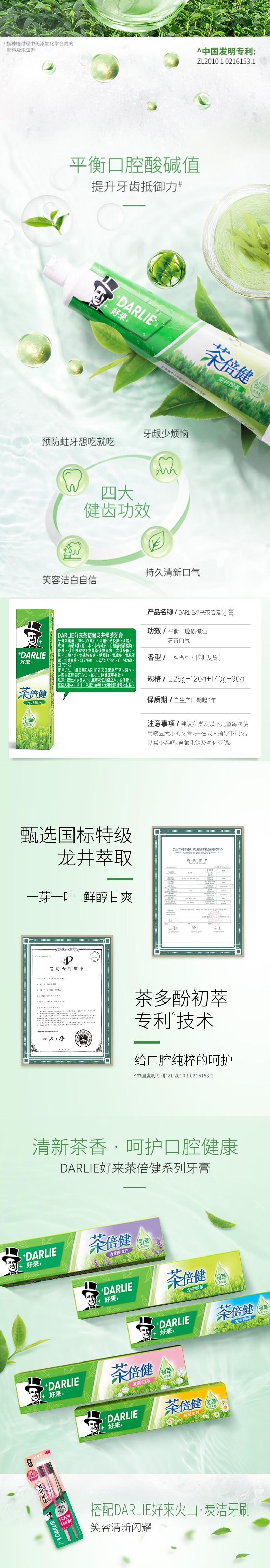 好来 茶倍健家庭牙膏套装575g(双重薄荷225g*1支+龙井绿茶120g*1支+小苏打140g*1支+超白90g*1支)口味随机发货 9200004