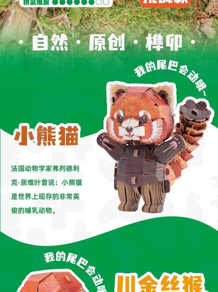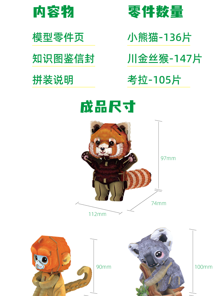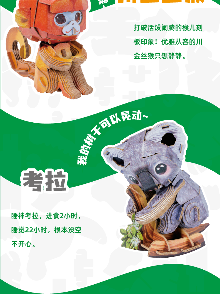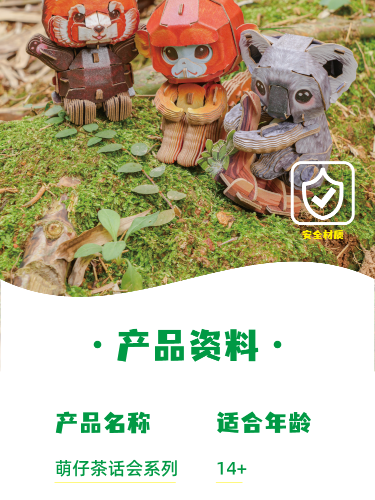 博物文创 萌仔茶话会系列热销款套装 立体拼插纸模 金丝猴 考拉 小熊猫
