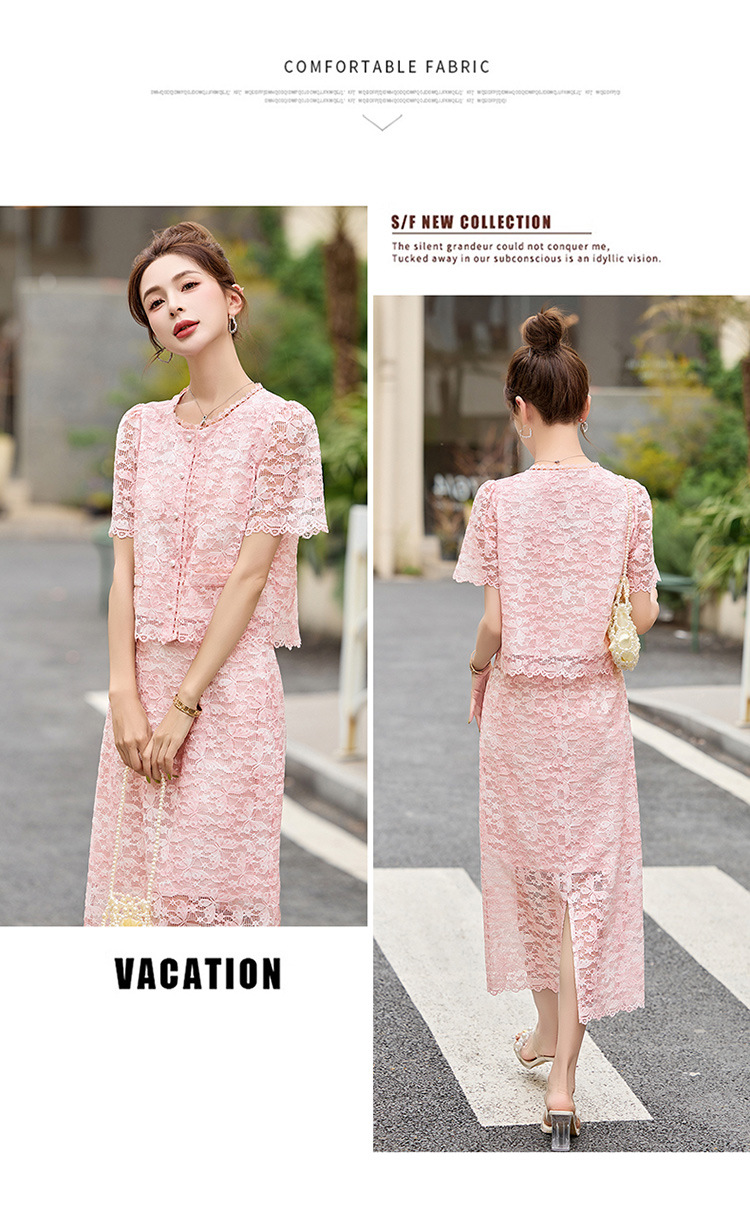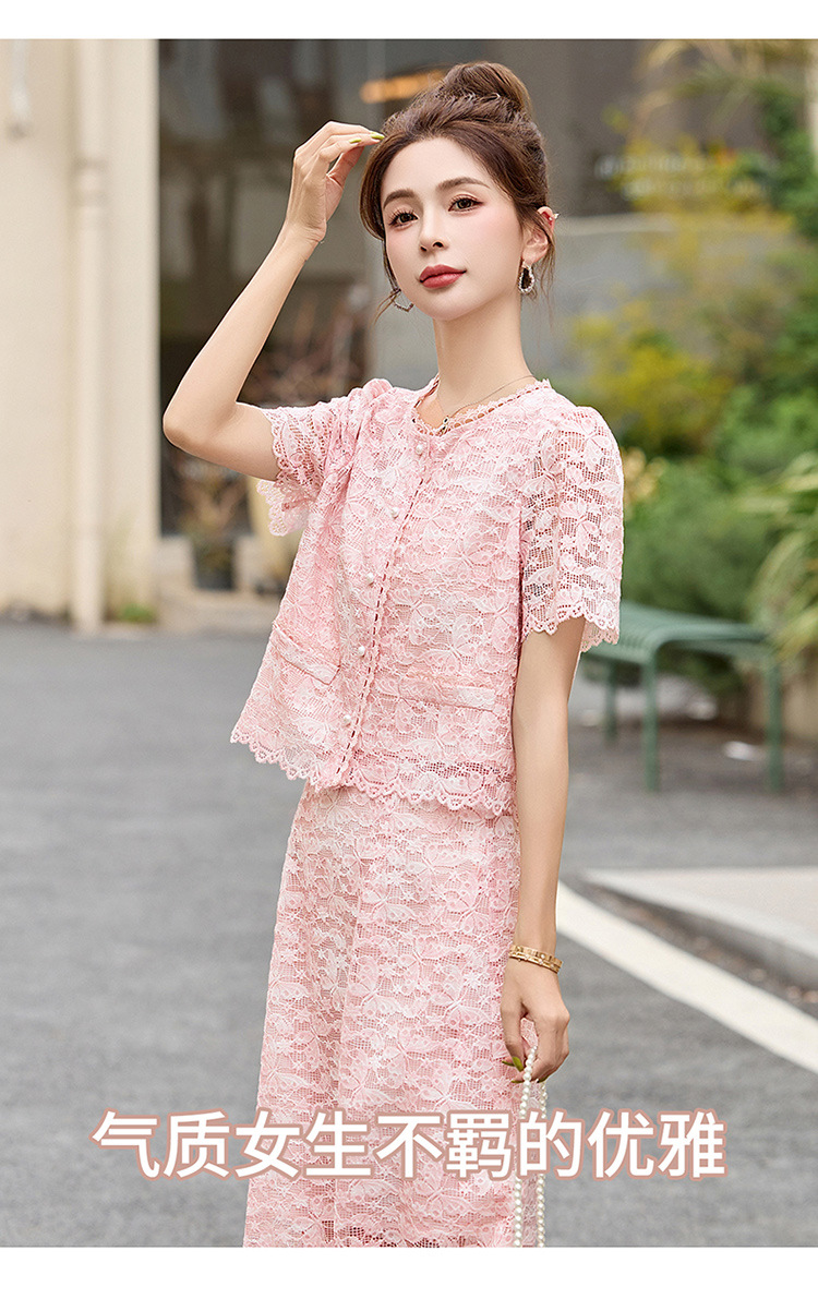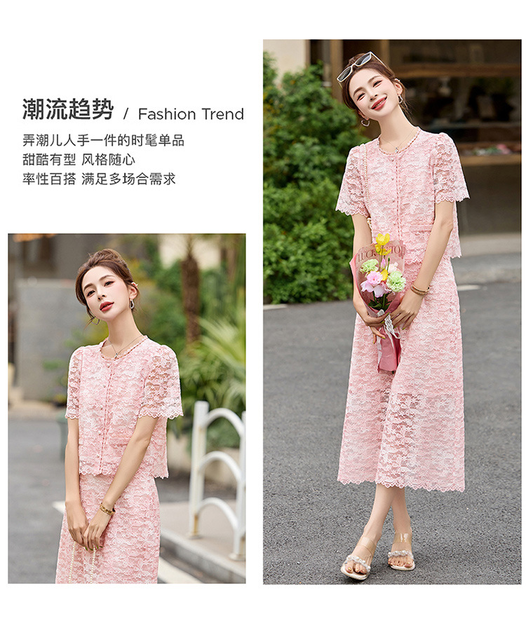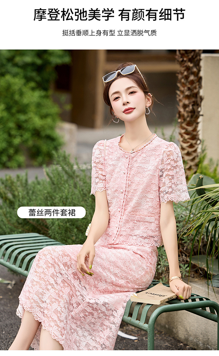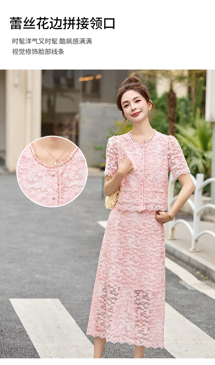 时尚洋气减龄蕾丝拼接,上衣半身裙两件套MEIQIN5593