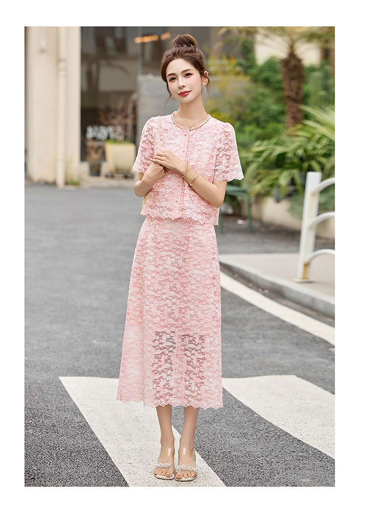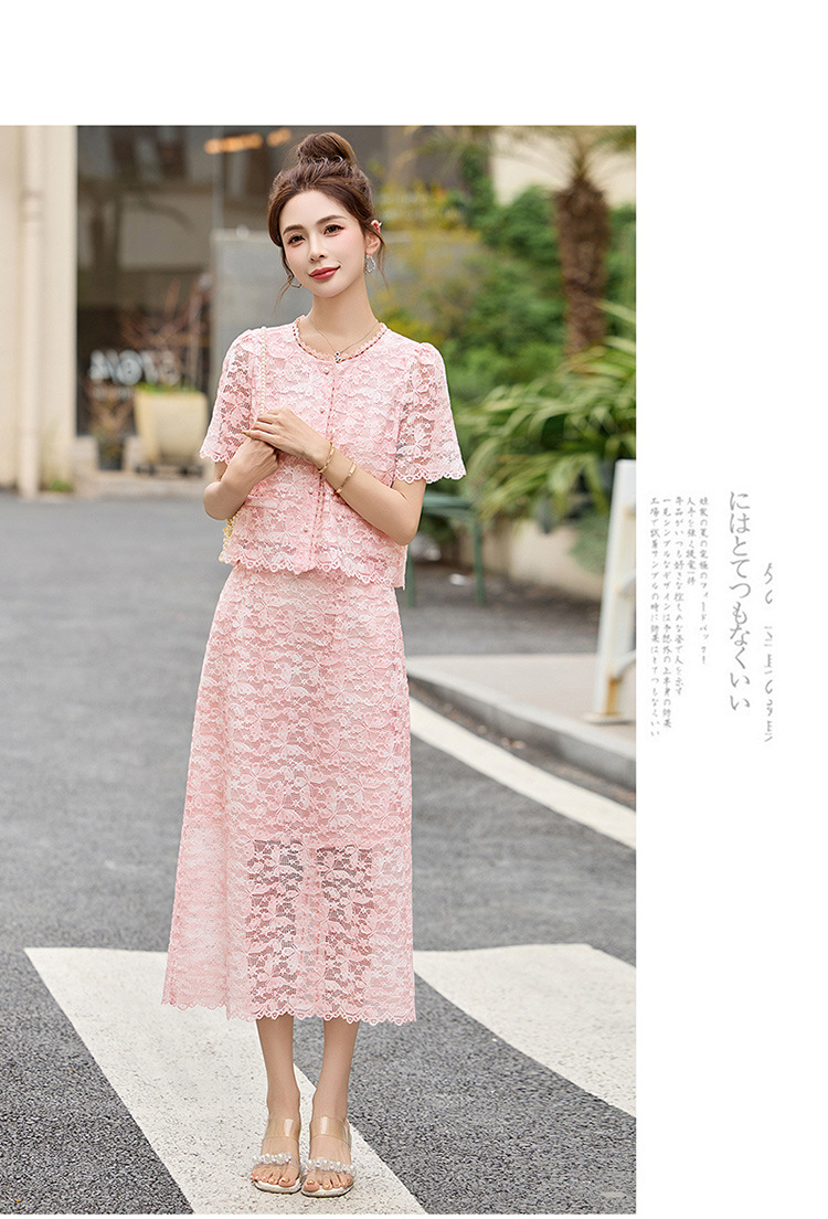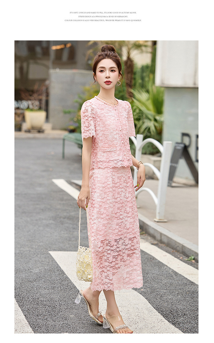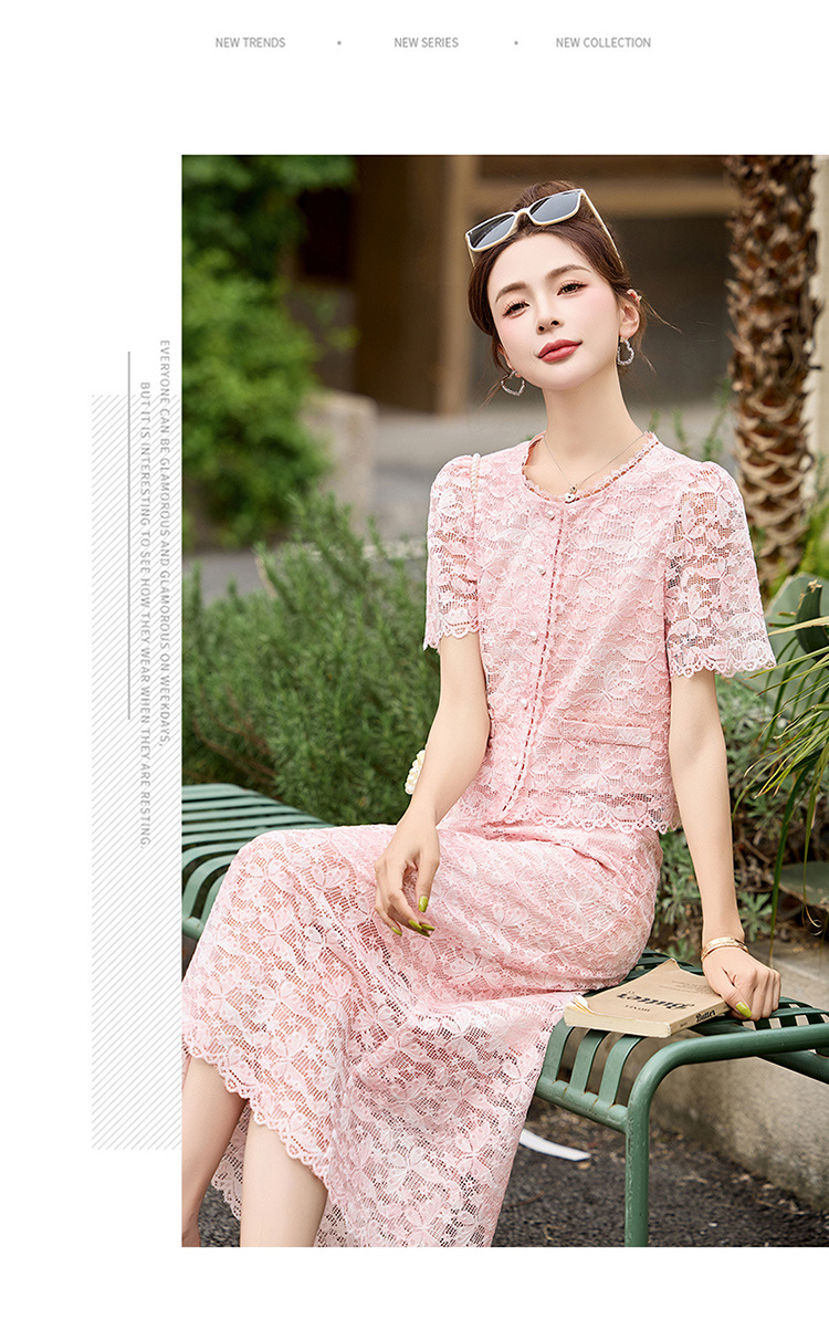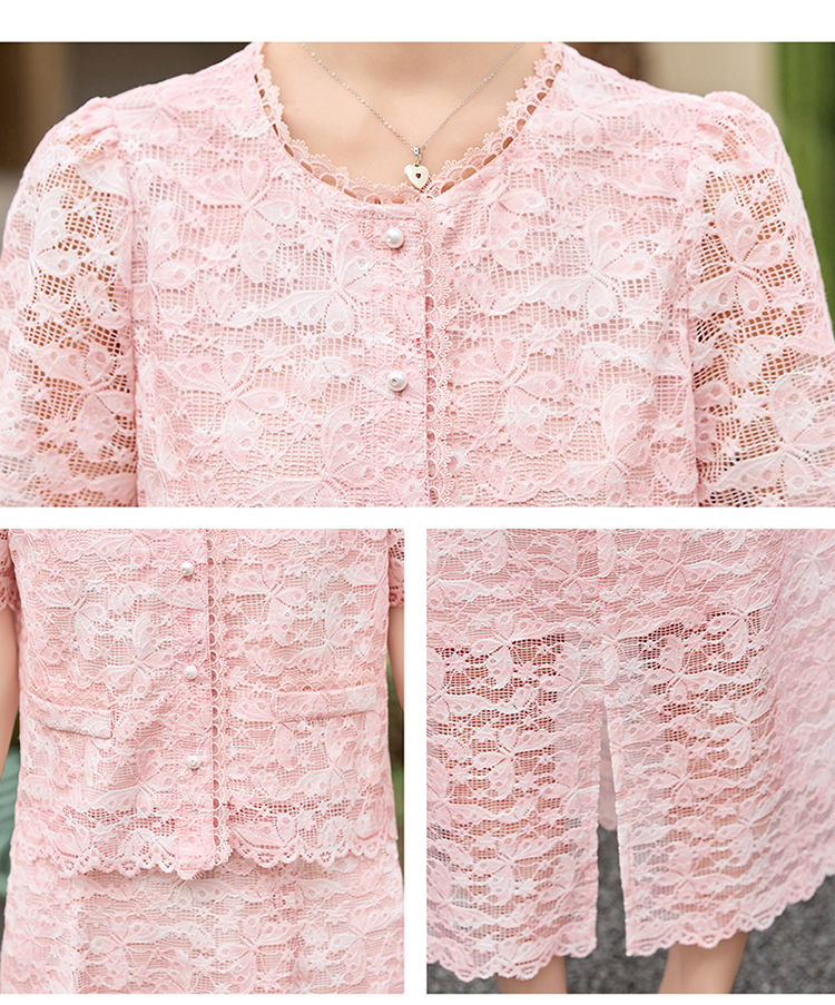 时尚洋气减龄蕾丝拼接,上衣半身裙两件套MEIQIN5593