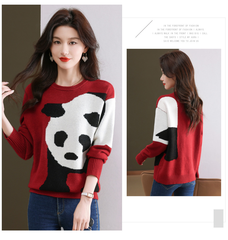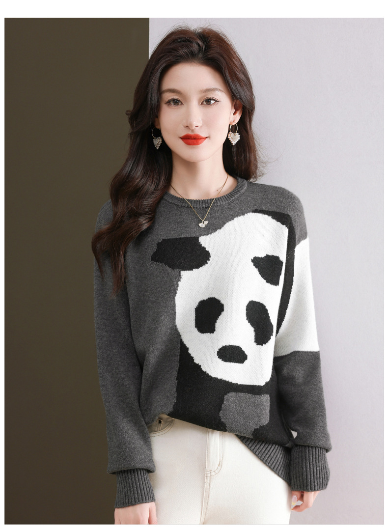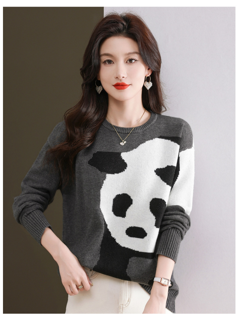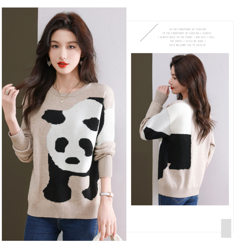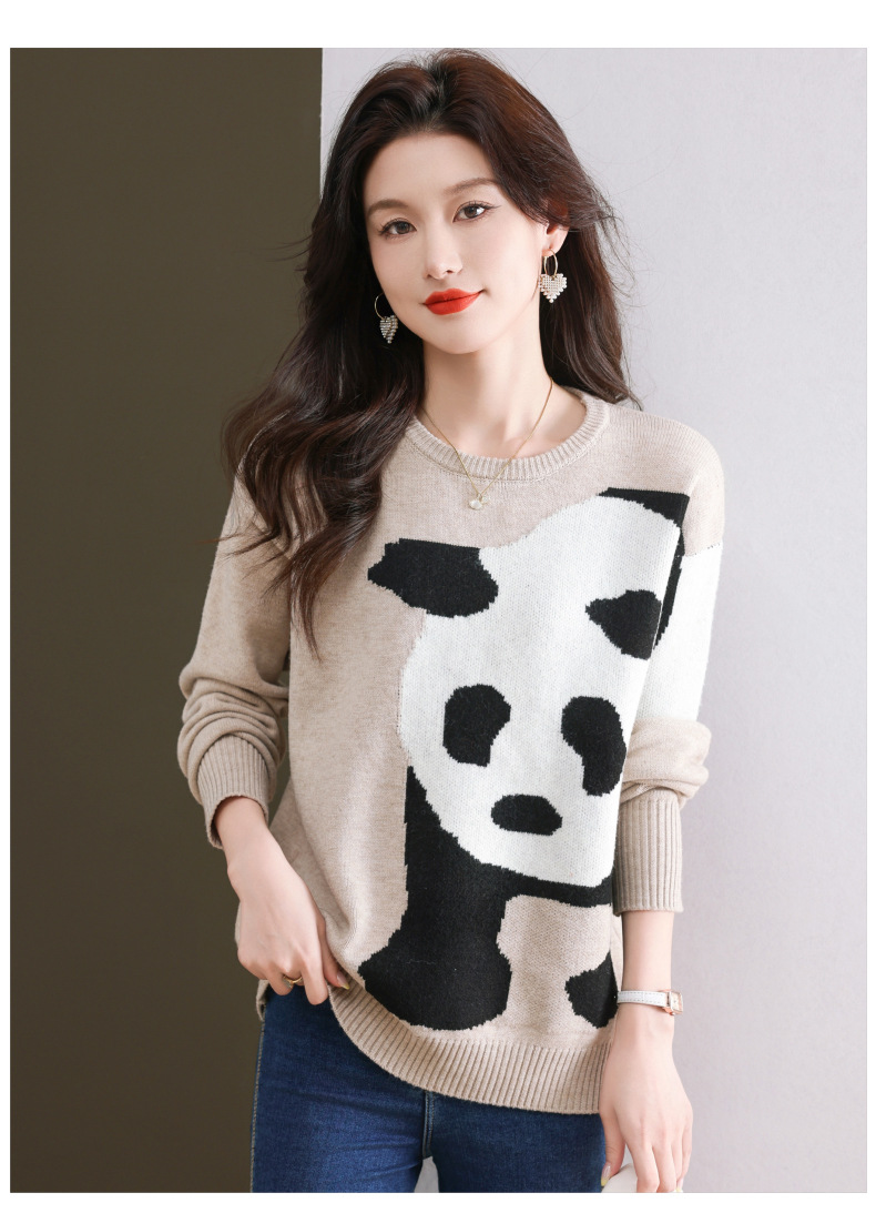 CC-103-6116卡通圆领针织打底衫女春秋新款洋气内搭宽松显瘦气质长袖T恤上衣