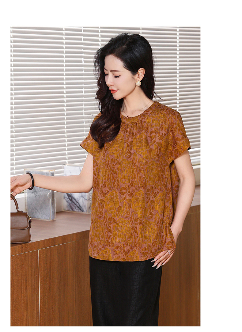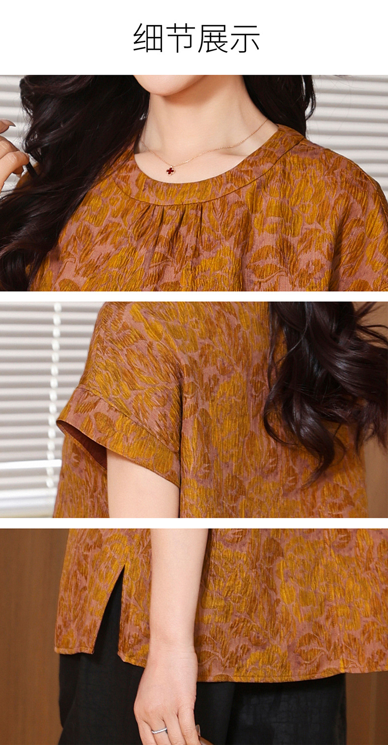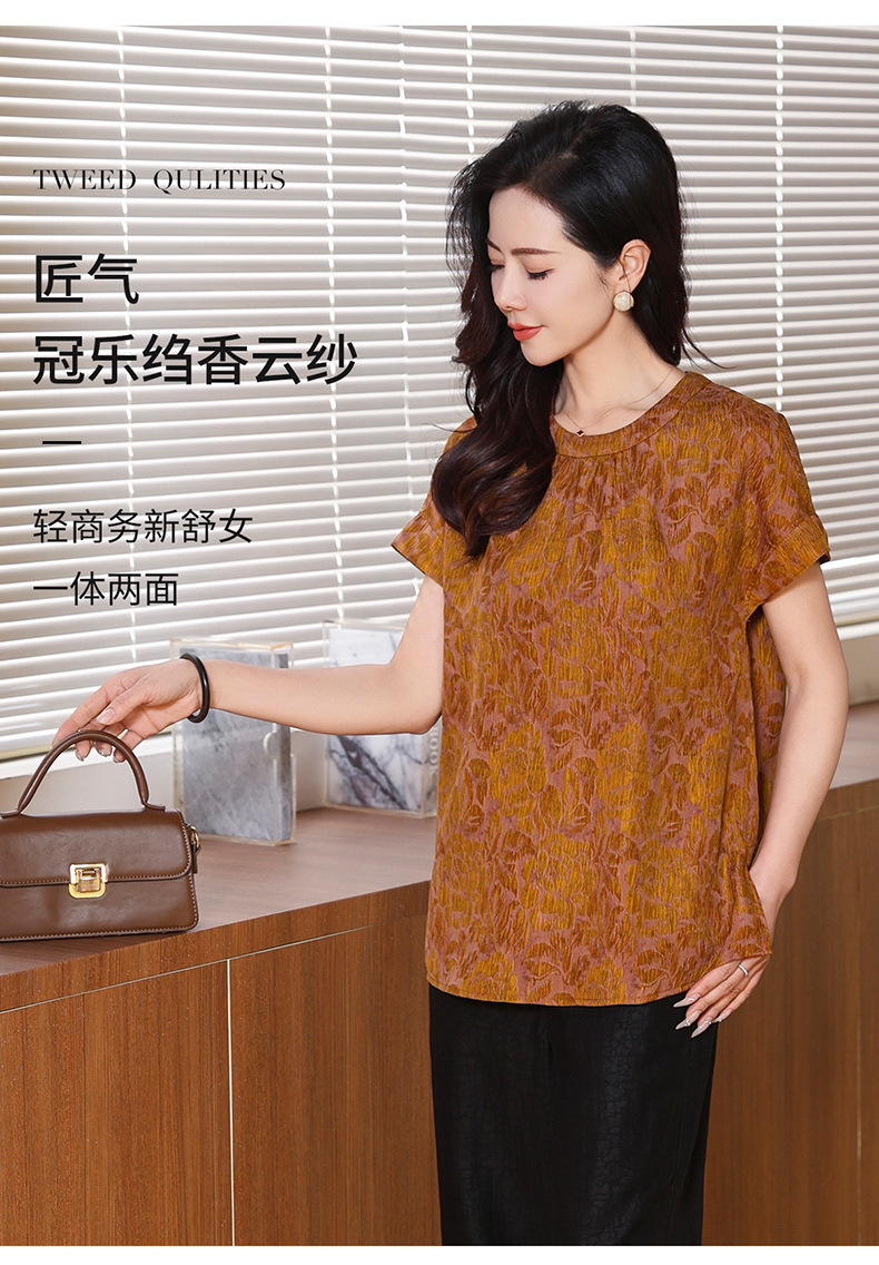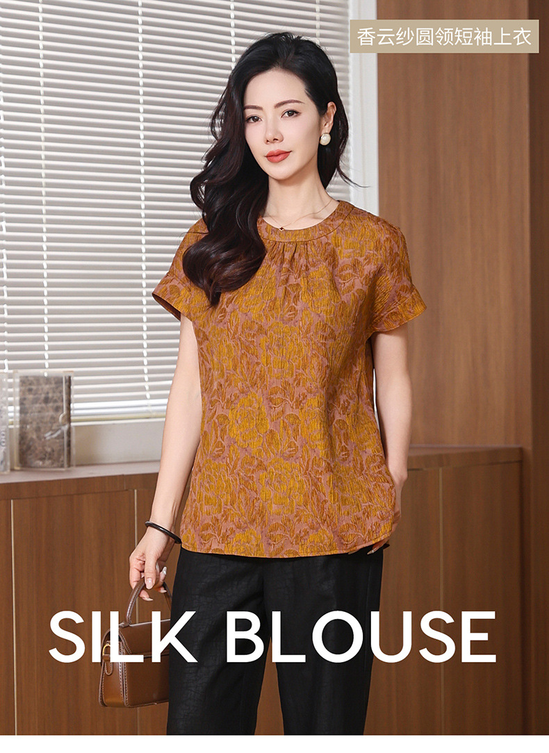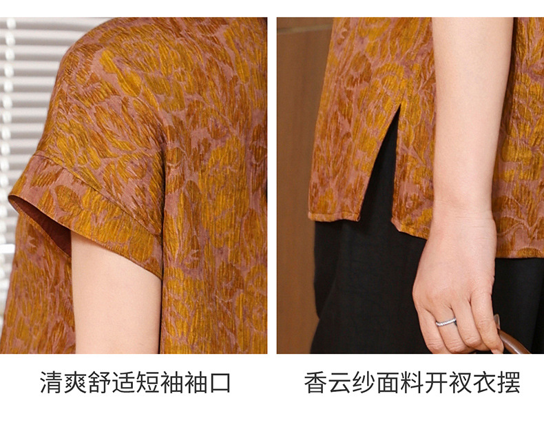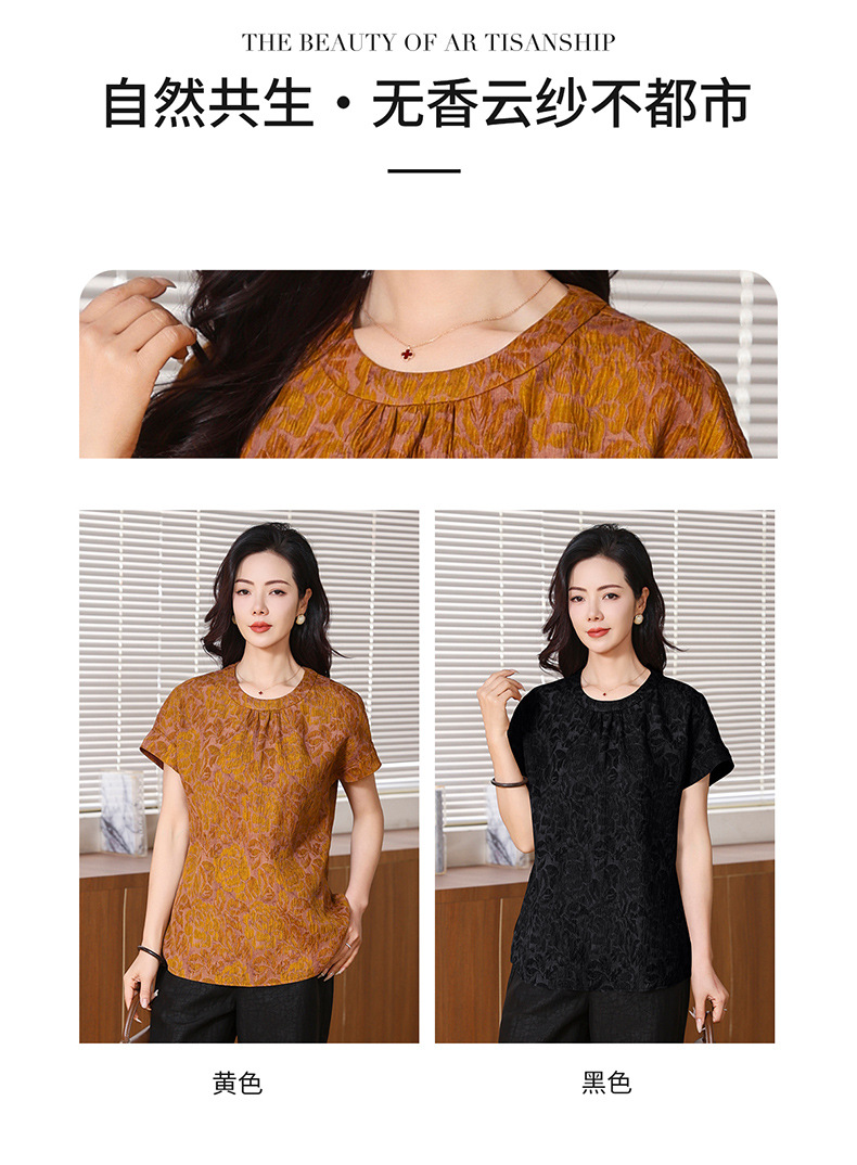 KQ-221810新中式冠乐绉香云纱短袖T恤2025夏新款国风复古小衫体恤真丝上衣