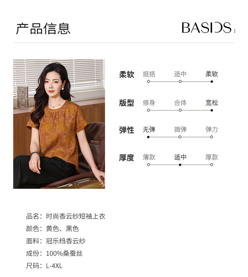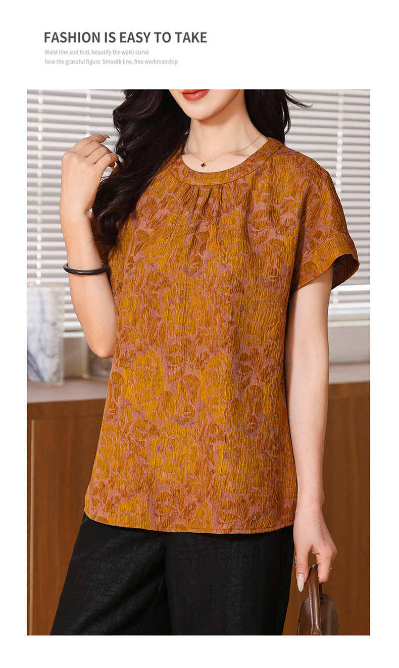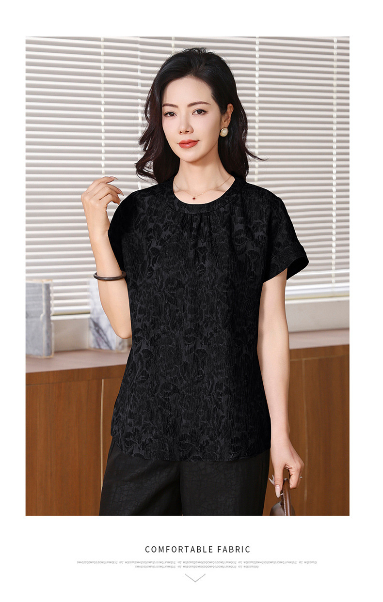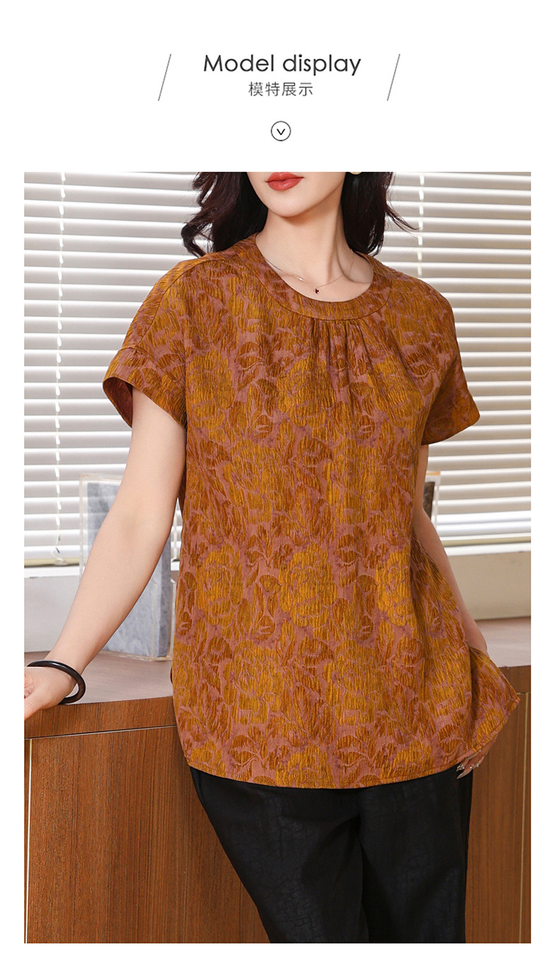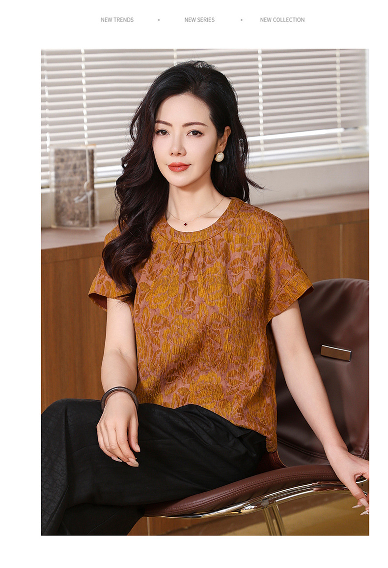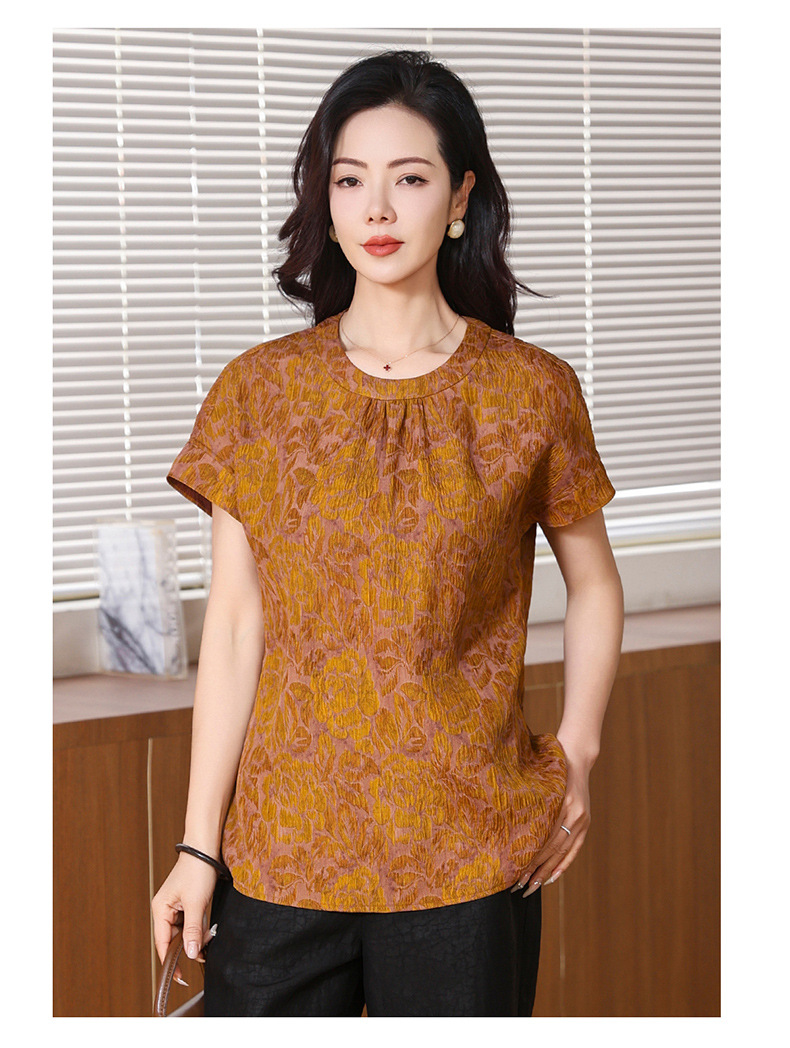 KQ-221810新中式冠乐绉香云纱短袖T恤2025夏新款国风复古小衫体恤真丝上衣