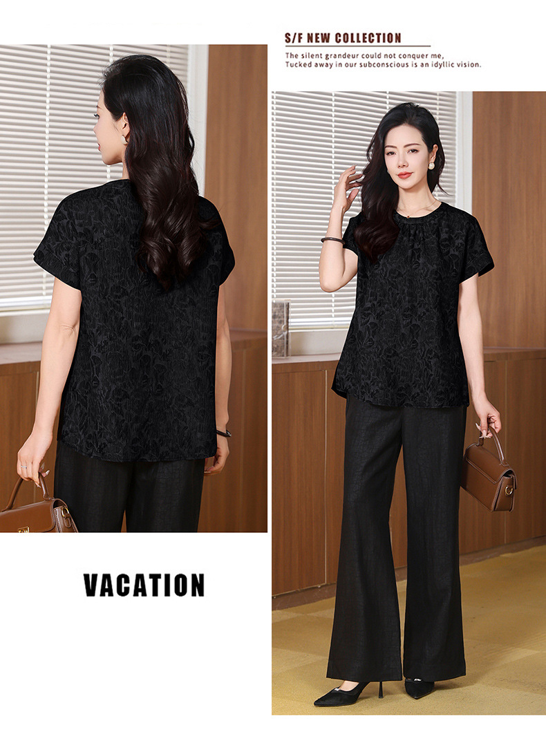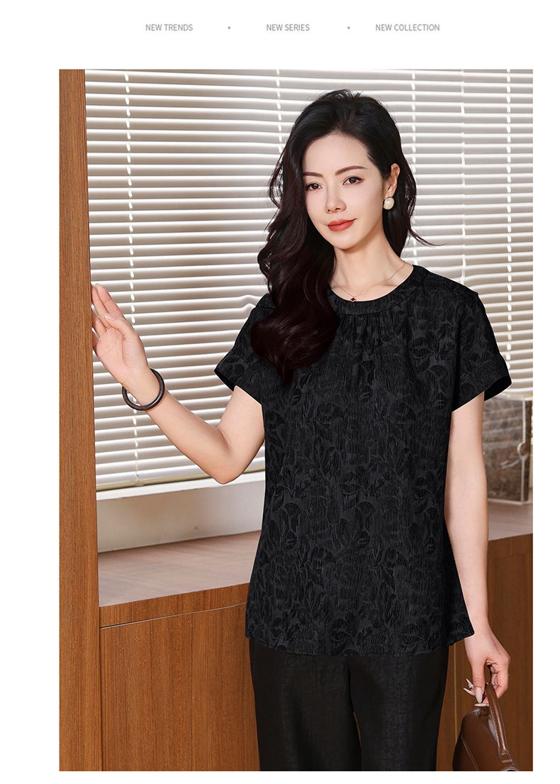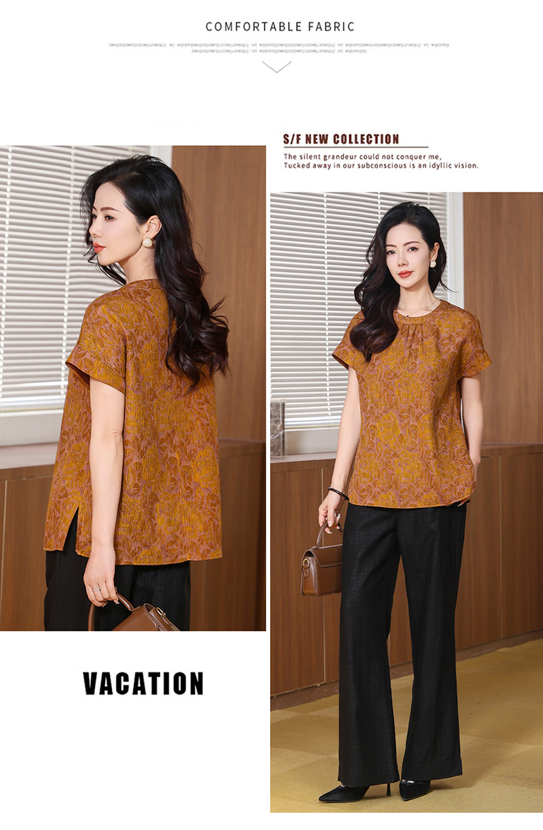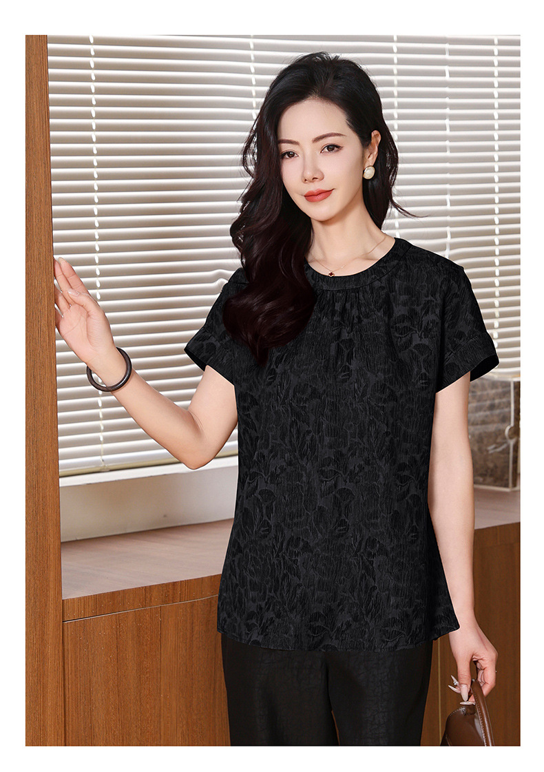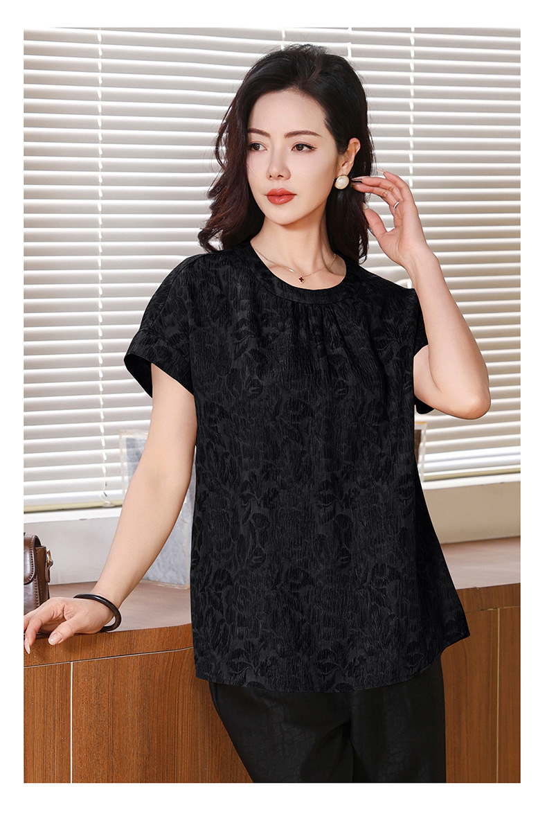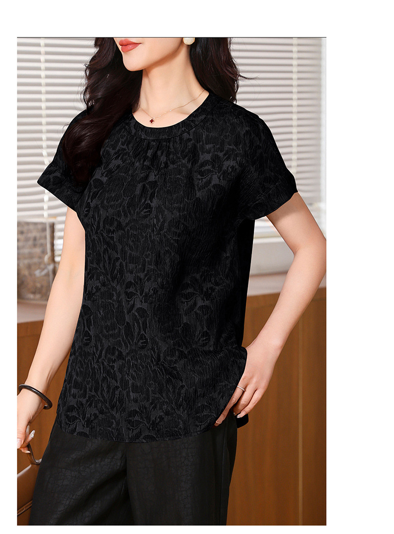 KQ-221810新中式冠乐绉香云纱短袖T恤2025夏新款国风复古小衫体恤真丝上衣