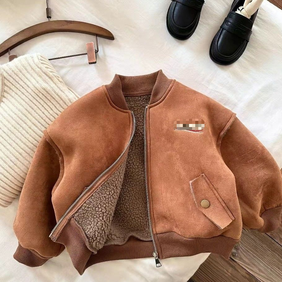 【加绒棒球外套!百搭无烦恼】秋冬新品爆款男女童加厚保暖刺绣,棒球服宝宝拉链衫潮,引领时尚风潮,加绒面料,让孩子个性闪亮