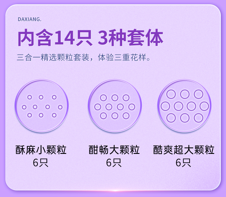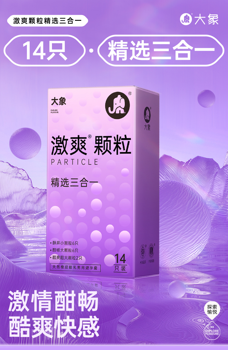 【四种体验】大象安全避孕套 激爽颗粒精选三合一14只+激润款2只 组合16只装