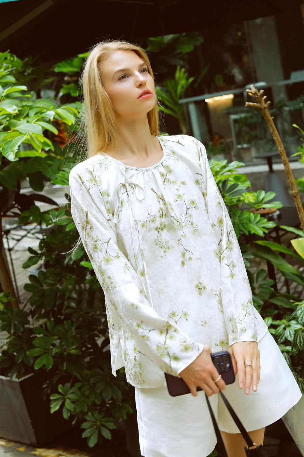 洛诗琳04432气质国风衬衫2025夏季新款改良国风印花上衣1275