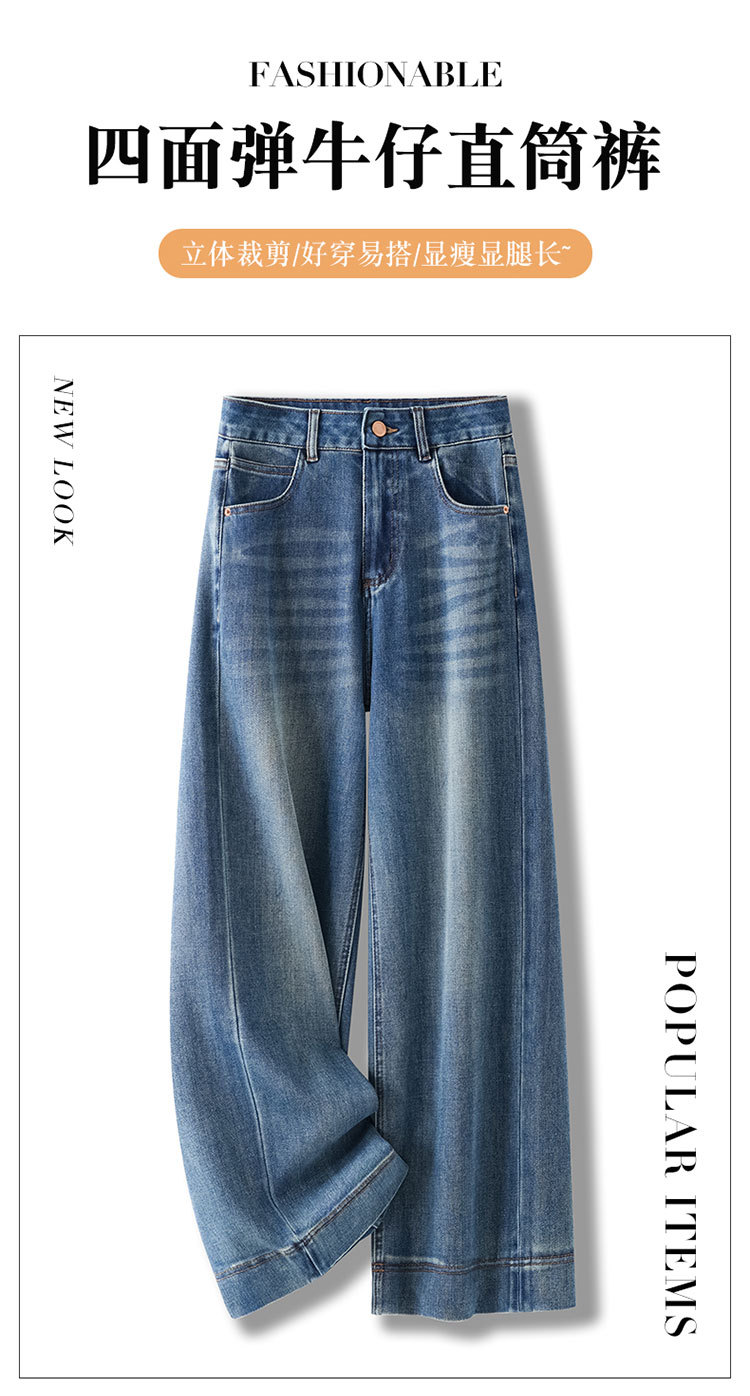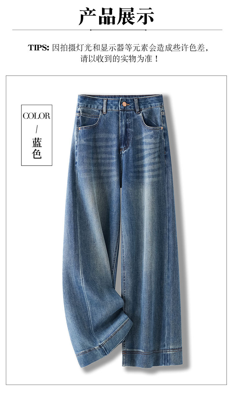 MYX蓝色阔腿牛仔裤2026年春季新款高腰垂坠感直筒裤显瘦休闲长裤女裤