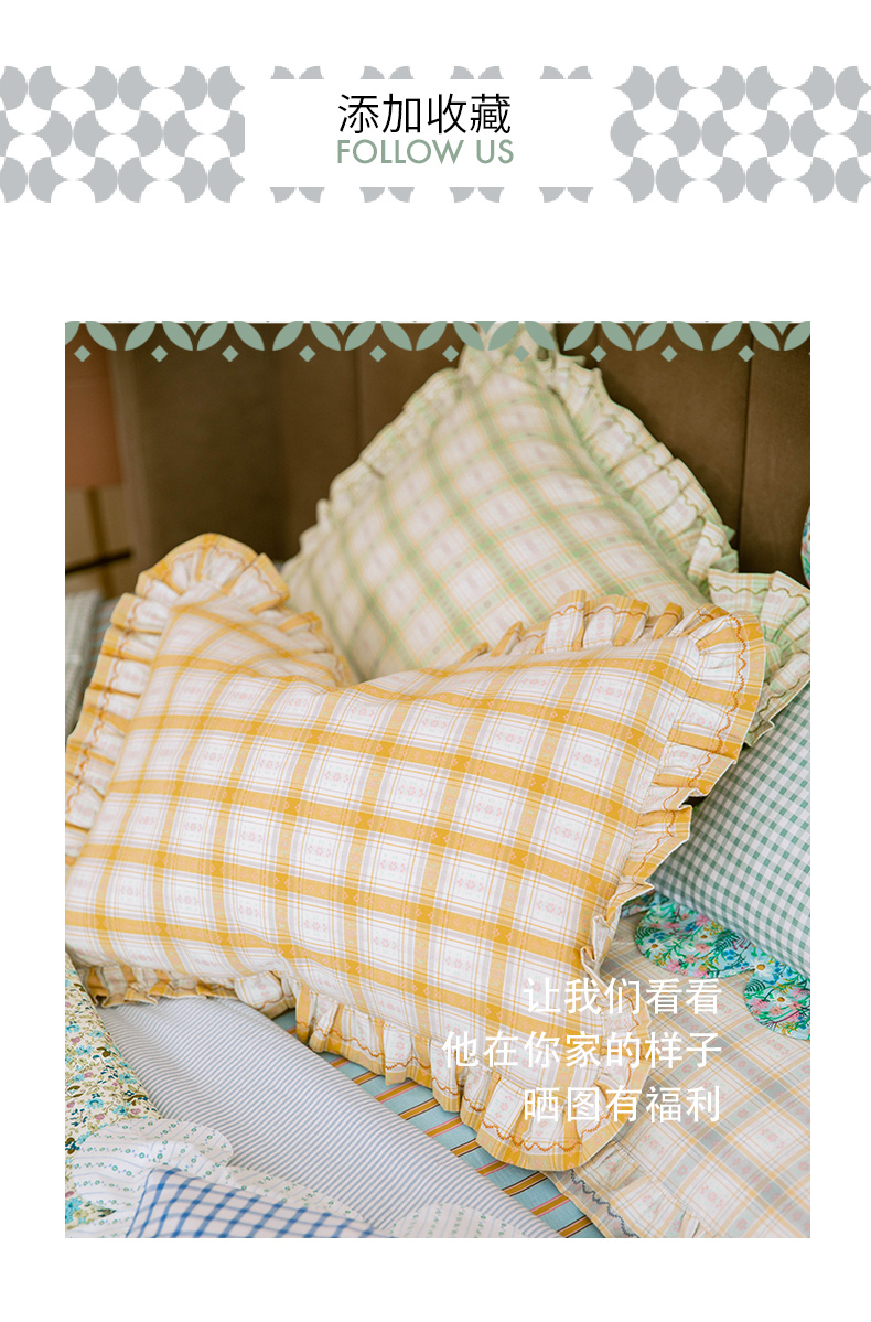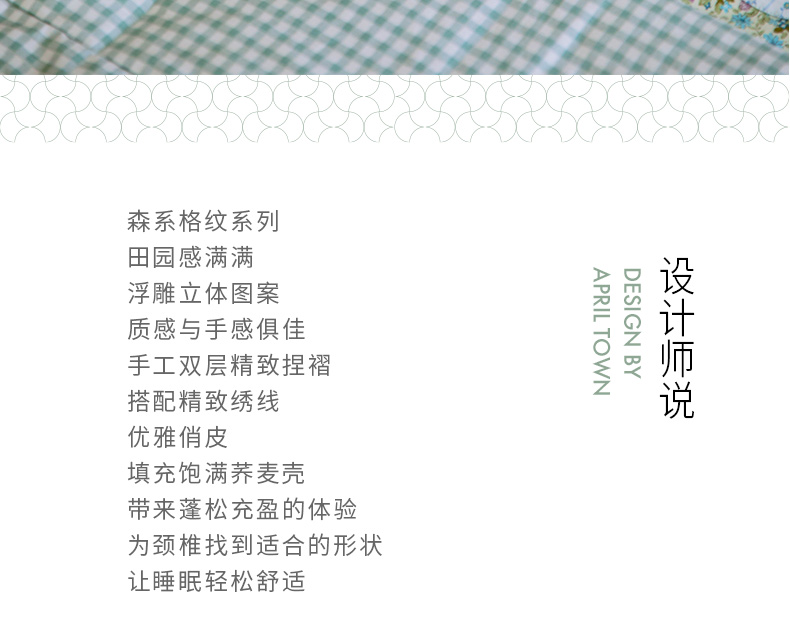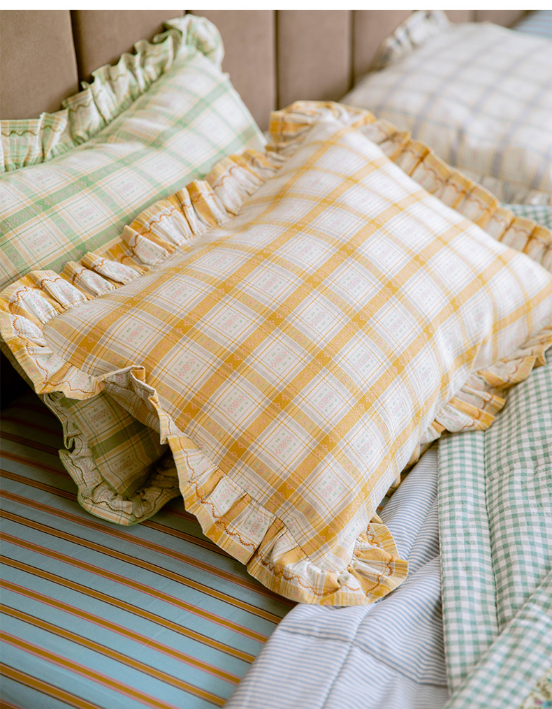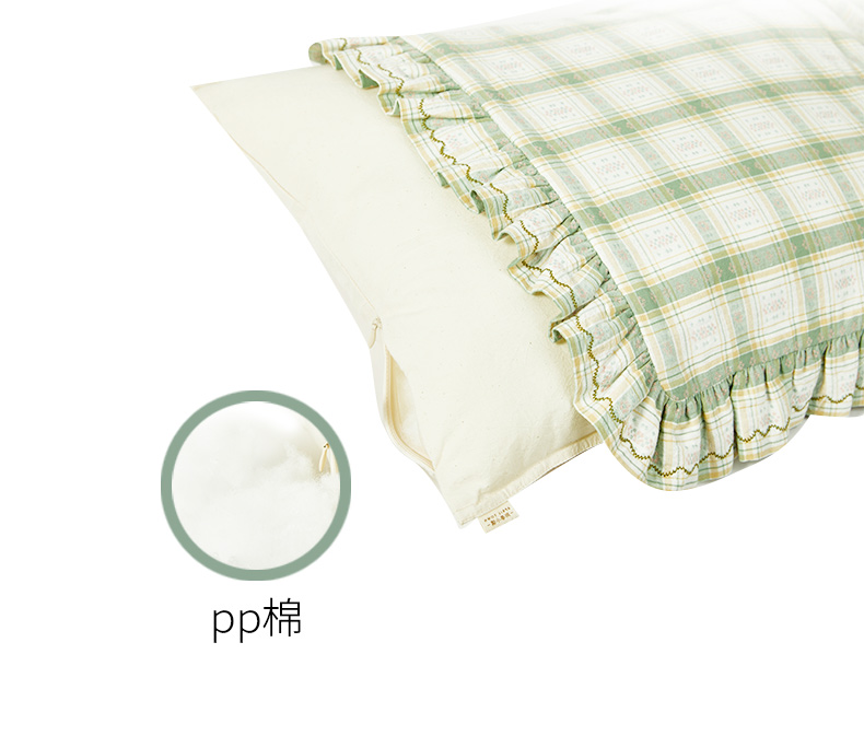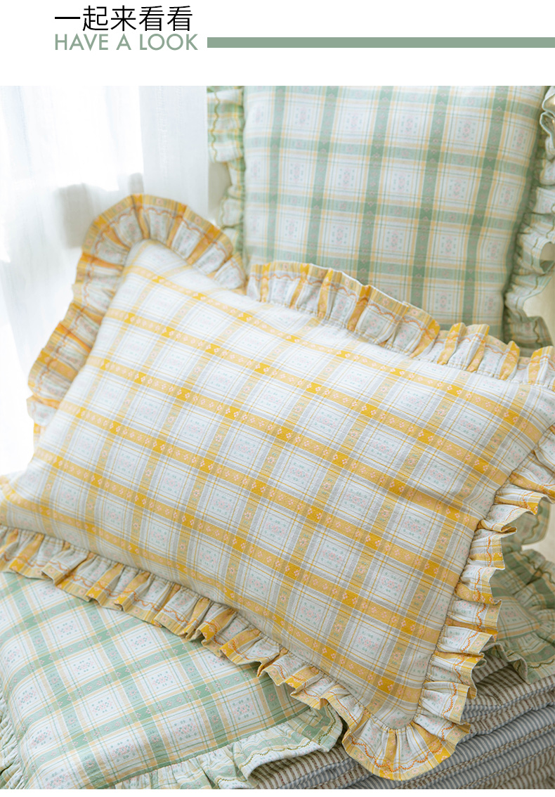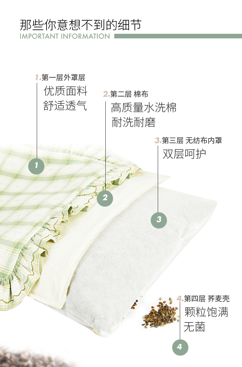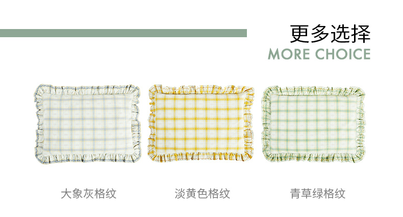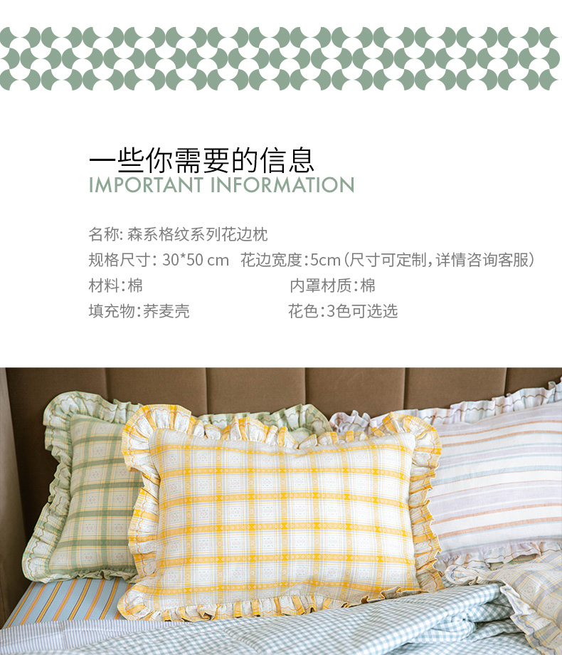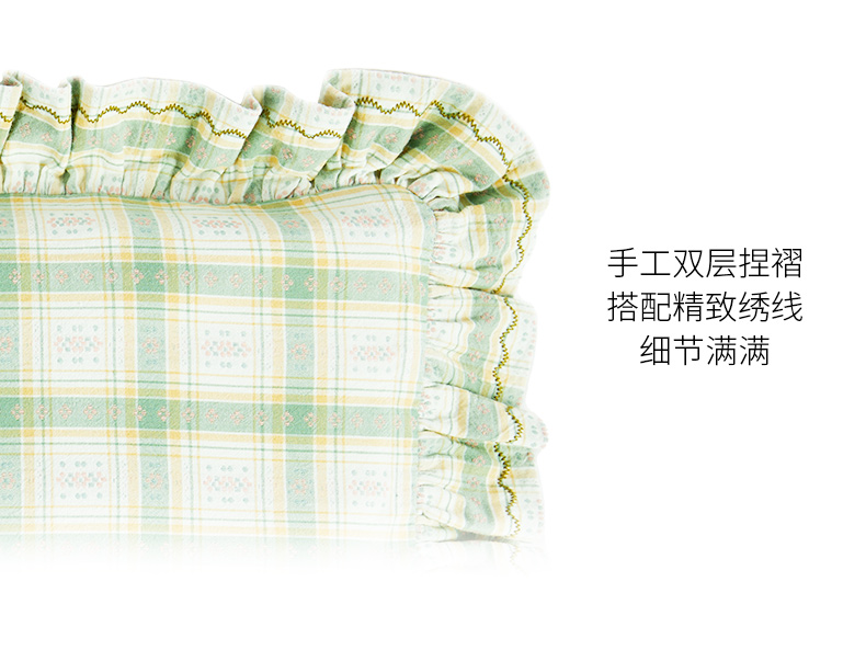 森系格纹系列花边枕全荞麦壳纯棉护颈枕