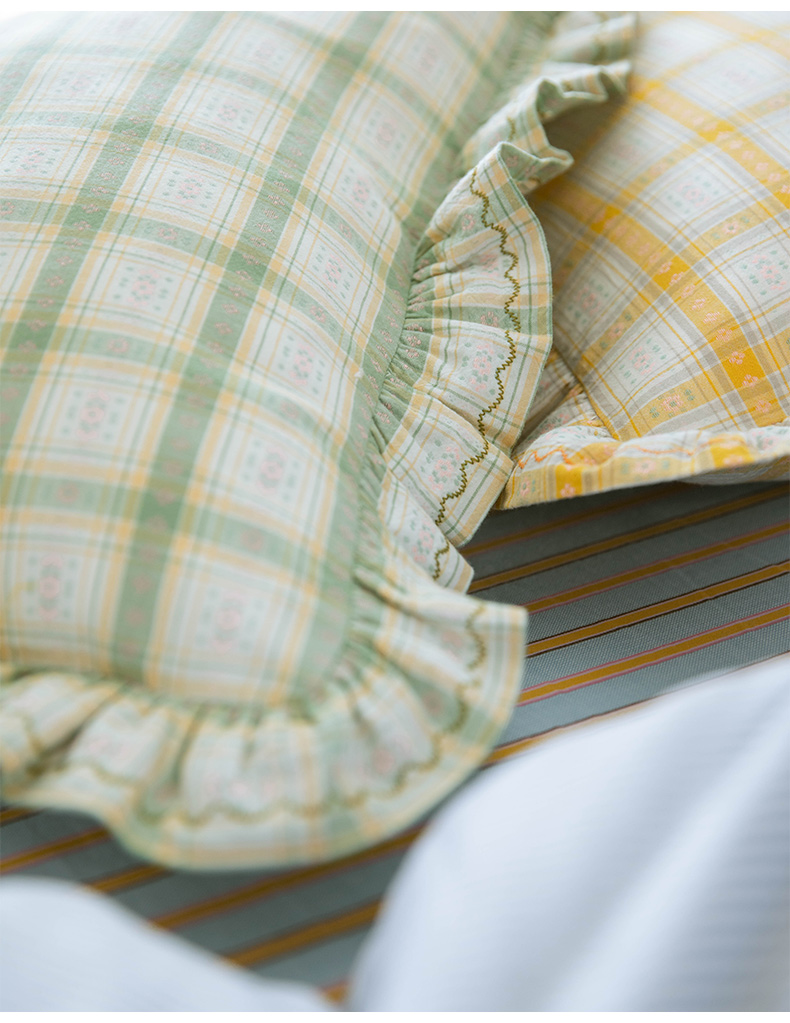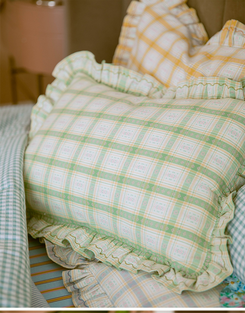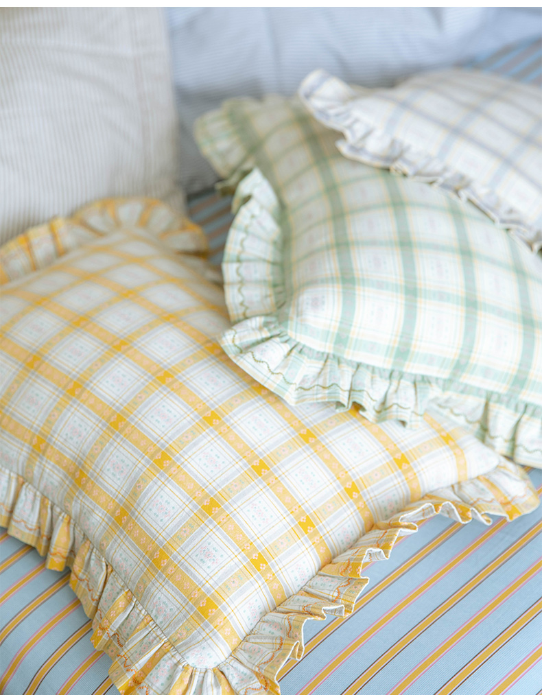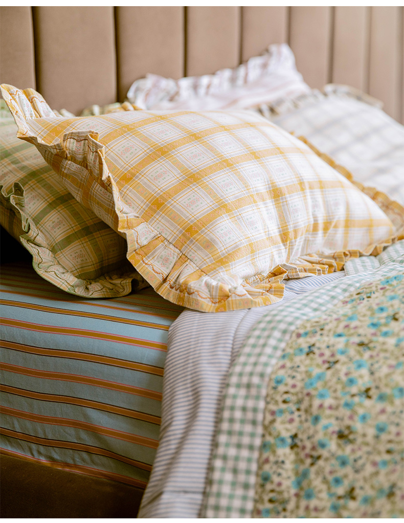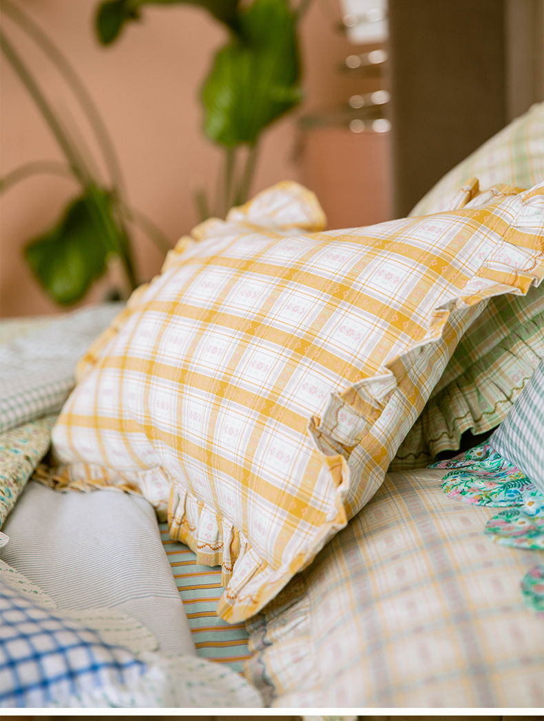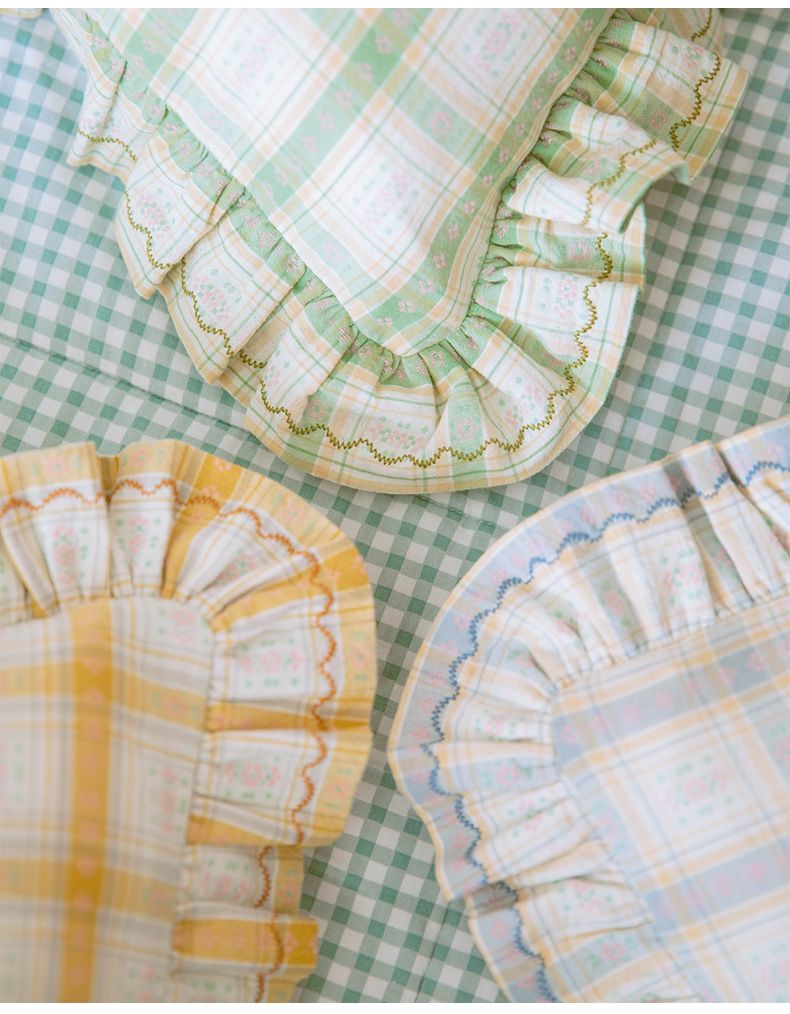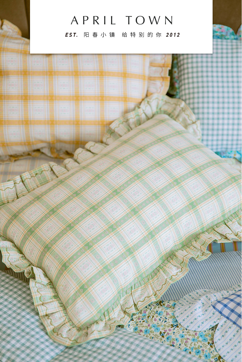 森系格纹系列花边枕全荞麦壳纯棉护颈枕