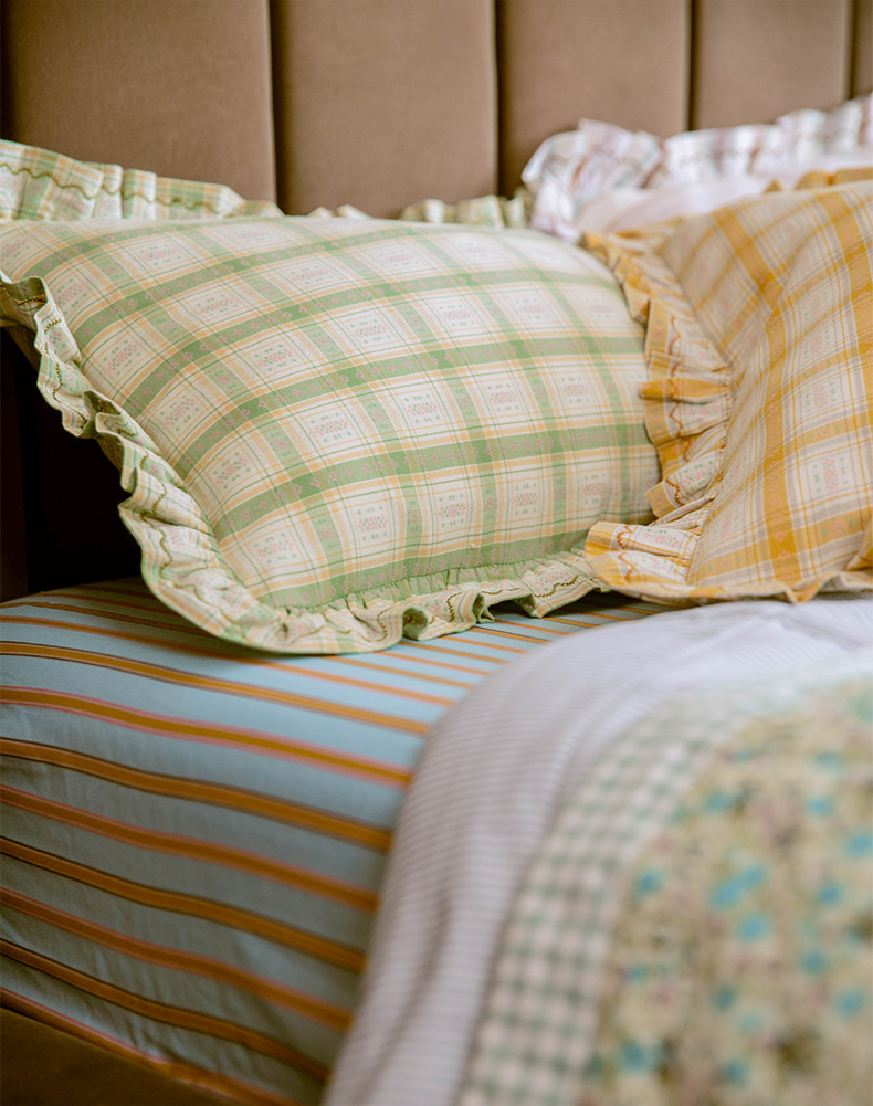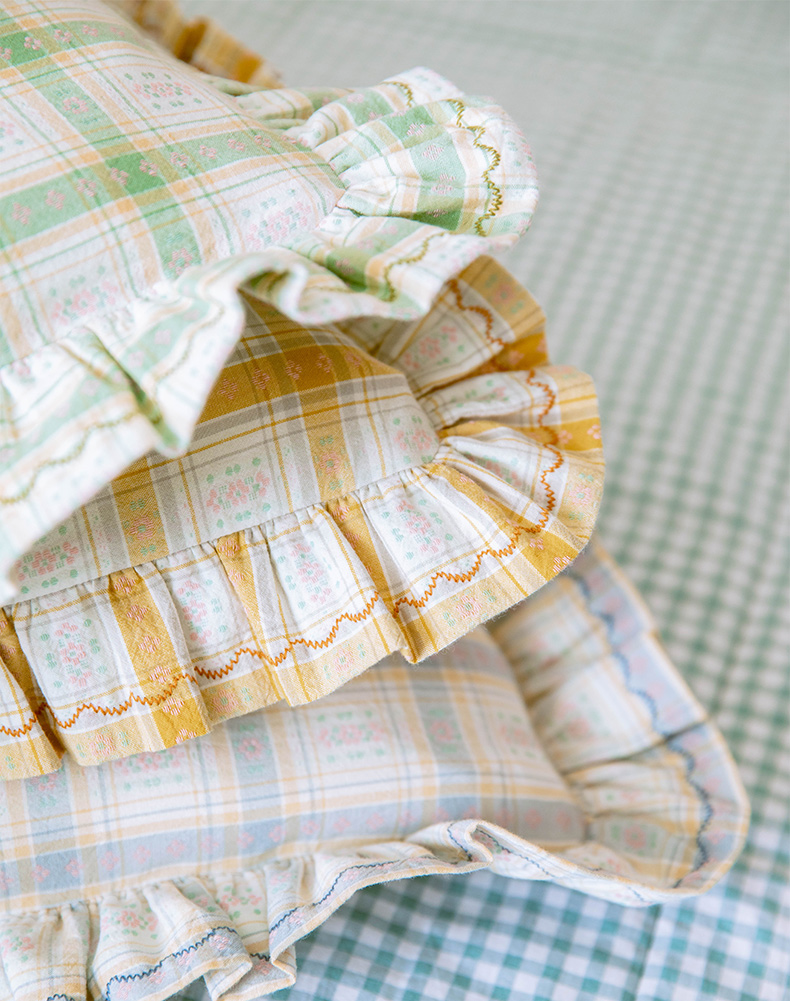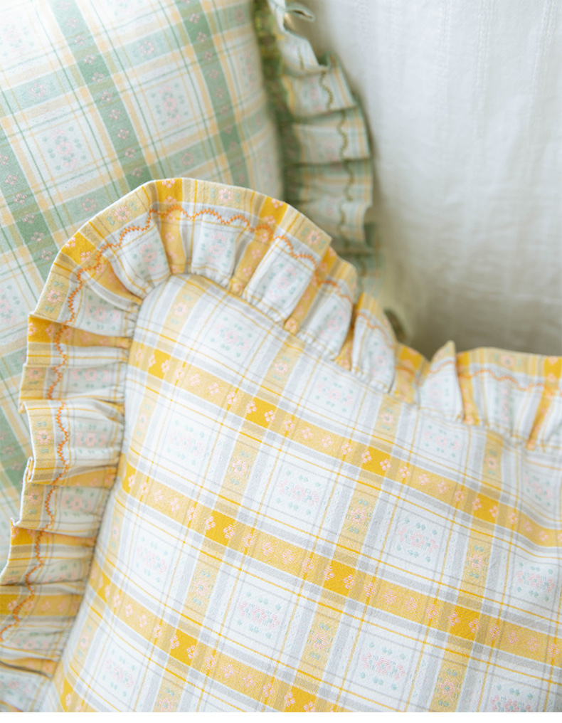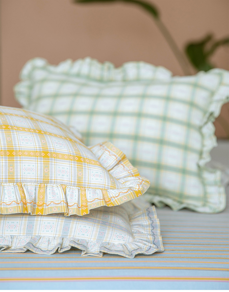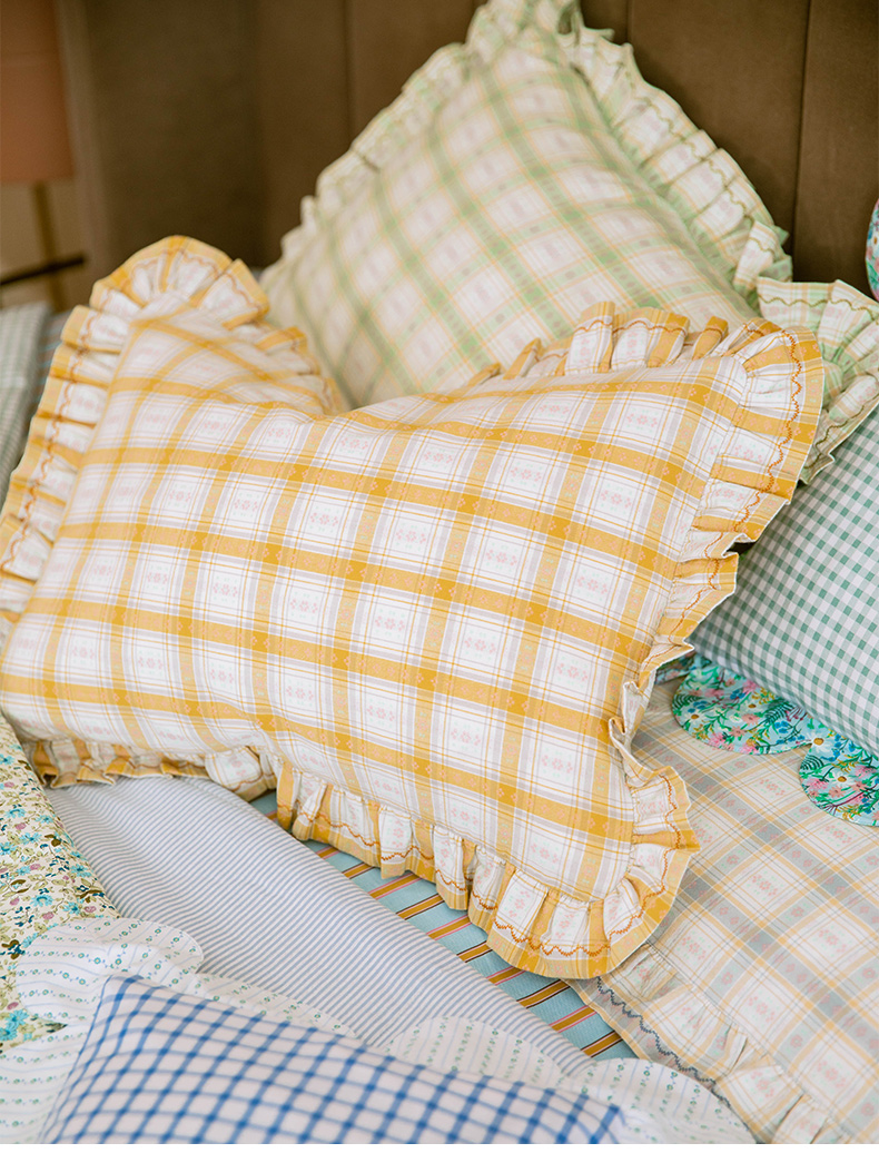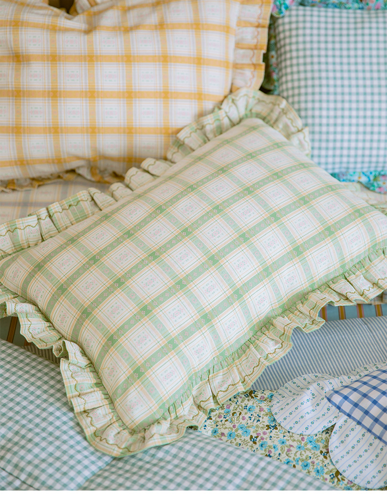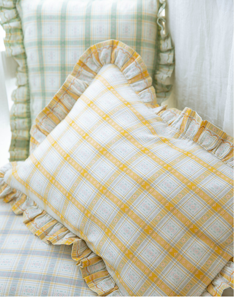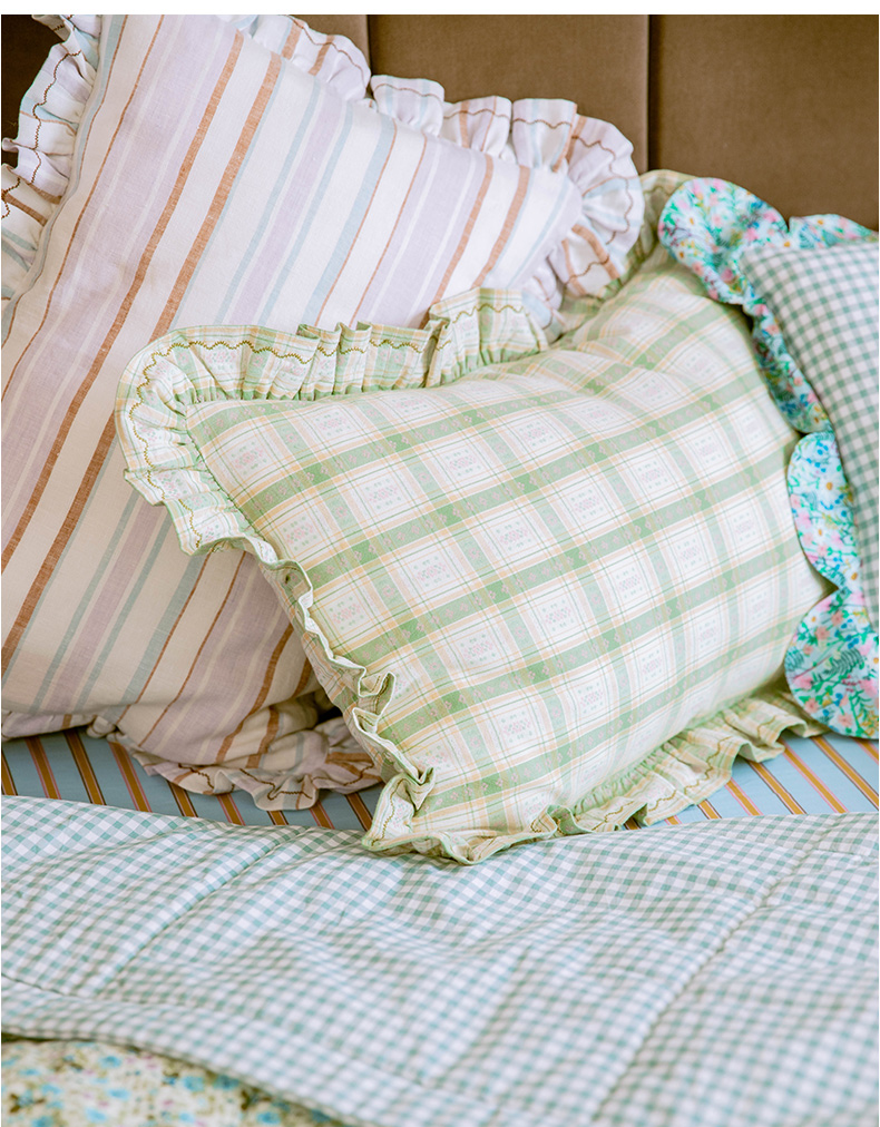 森系格纹系列花边枕全荞麦壳纯棉护颈枕