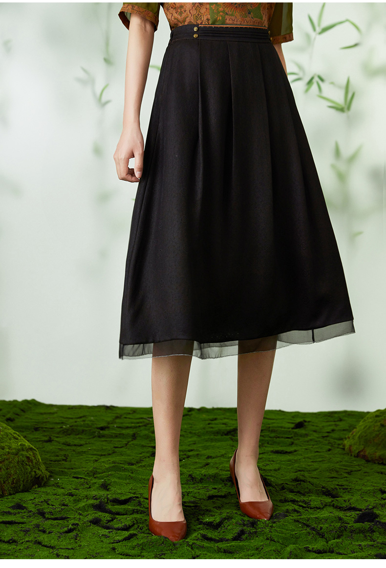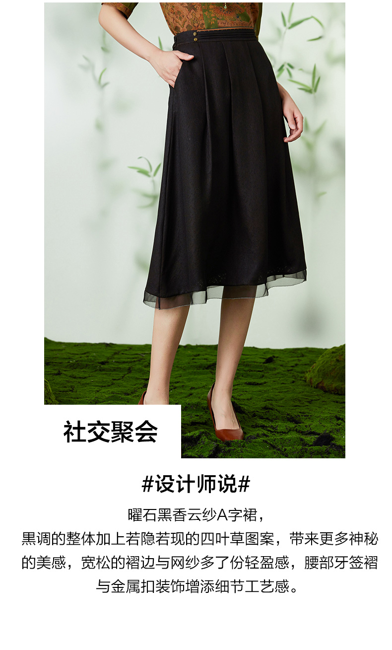【香云纱】乔万尼100%真丝香云纱半身裙19mm简约a字版设计EM2D793