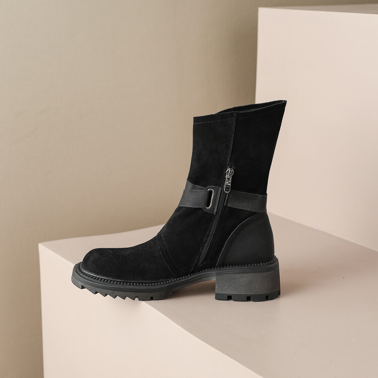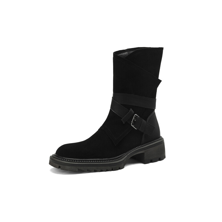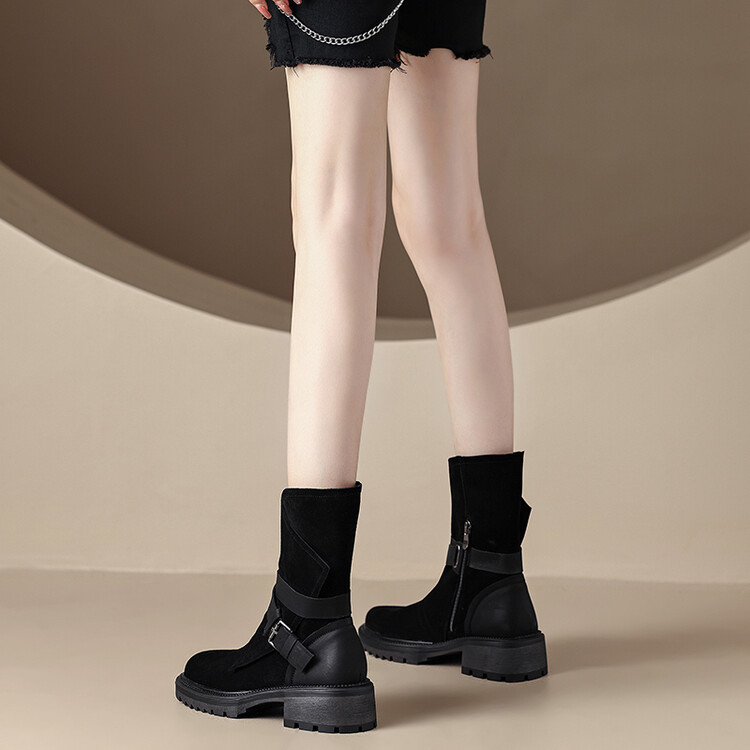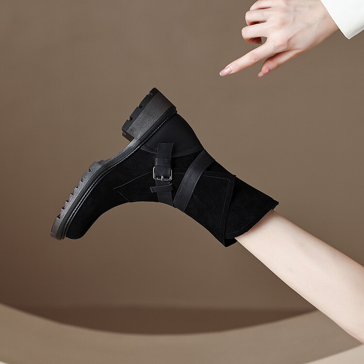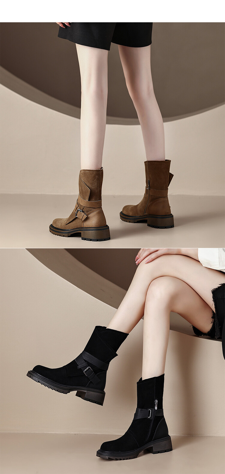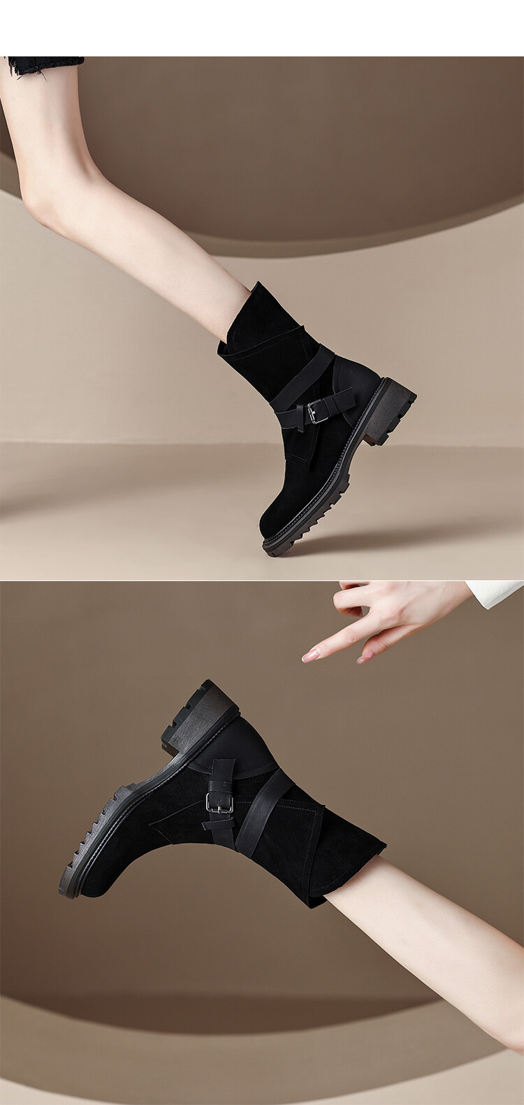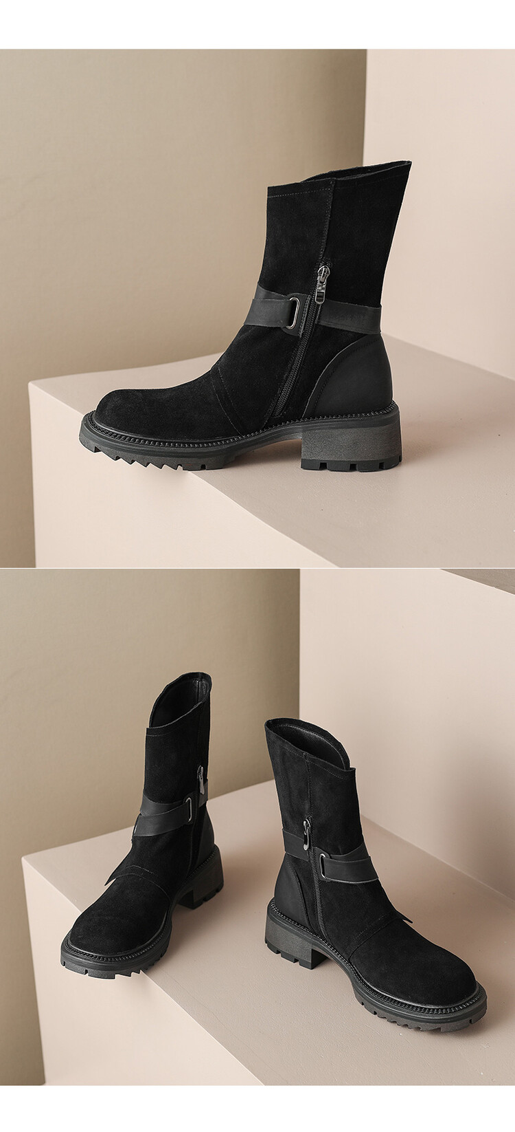【预售5天】法式复古皮带扣慵懒风西部牛仔靴秋冬季新款绒面侧拉链沙漠靴女MX&mx22-095