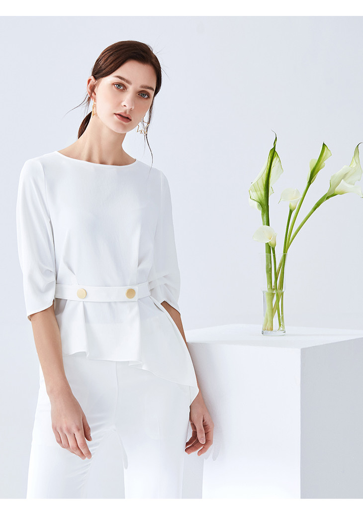 ITIE爱特爱女装秋款气质时尚通勤干练收腰显瘦百搭五分袖女上衣6113814