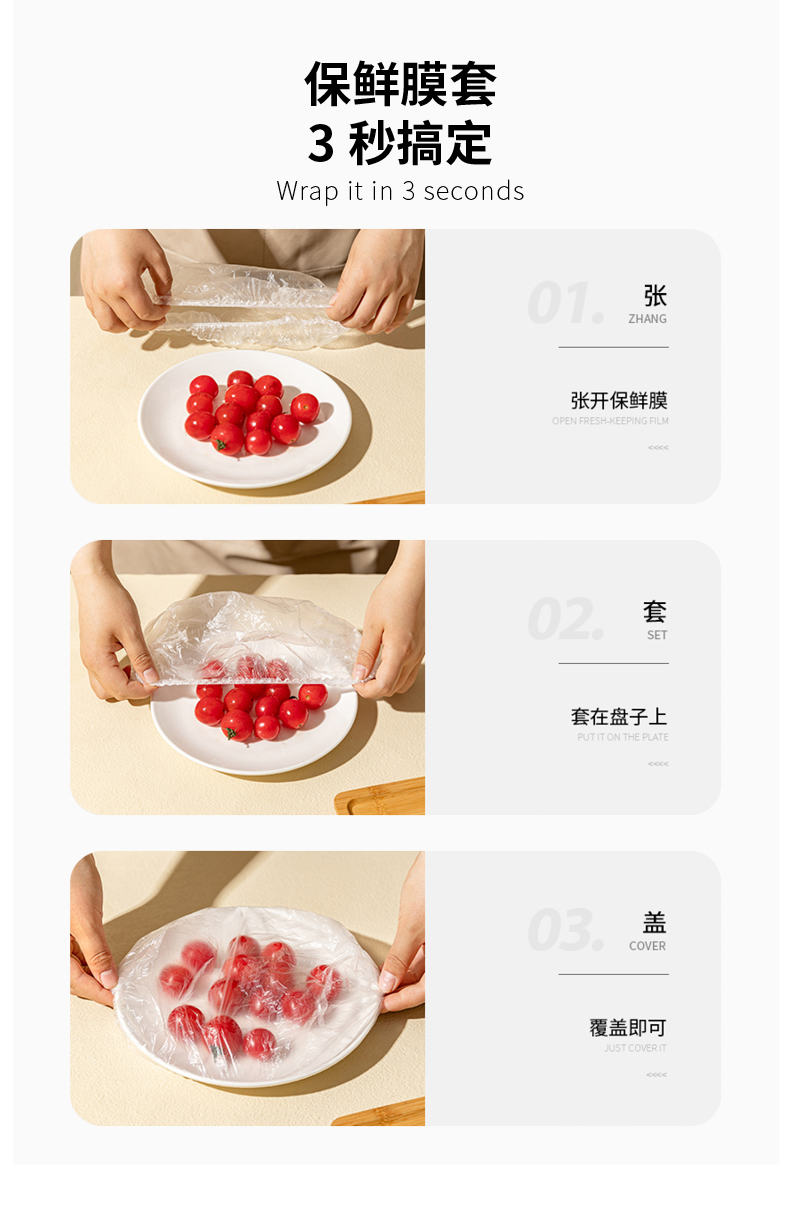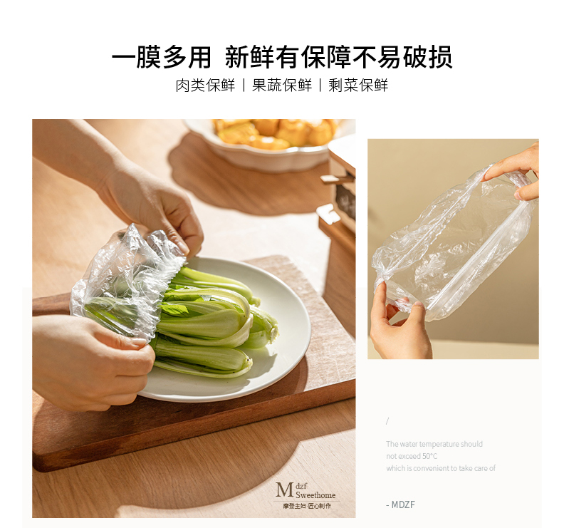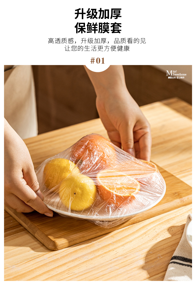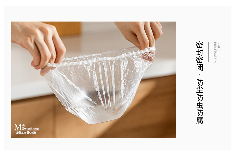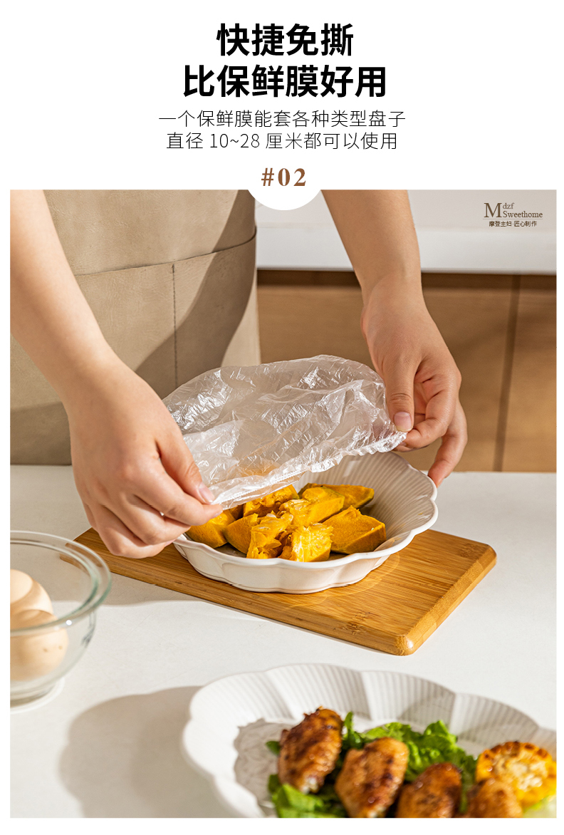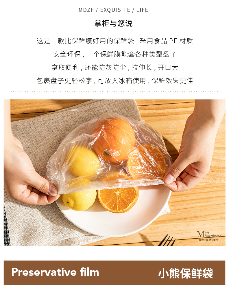 摩登主妇一次性保鲜膜套食品专用剩菜保鲜罩家用冰箱带松紧保鲜袋