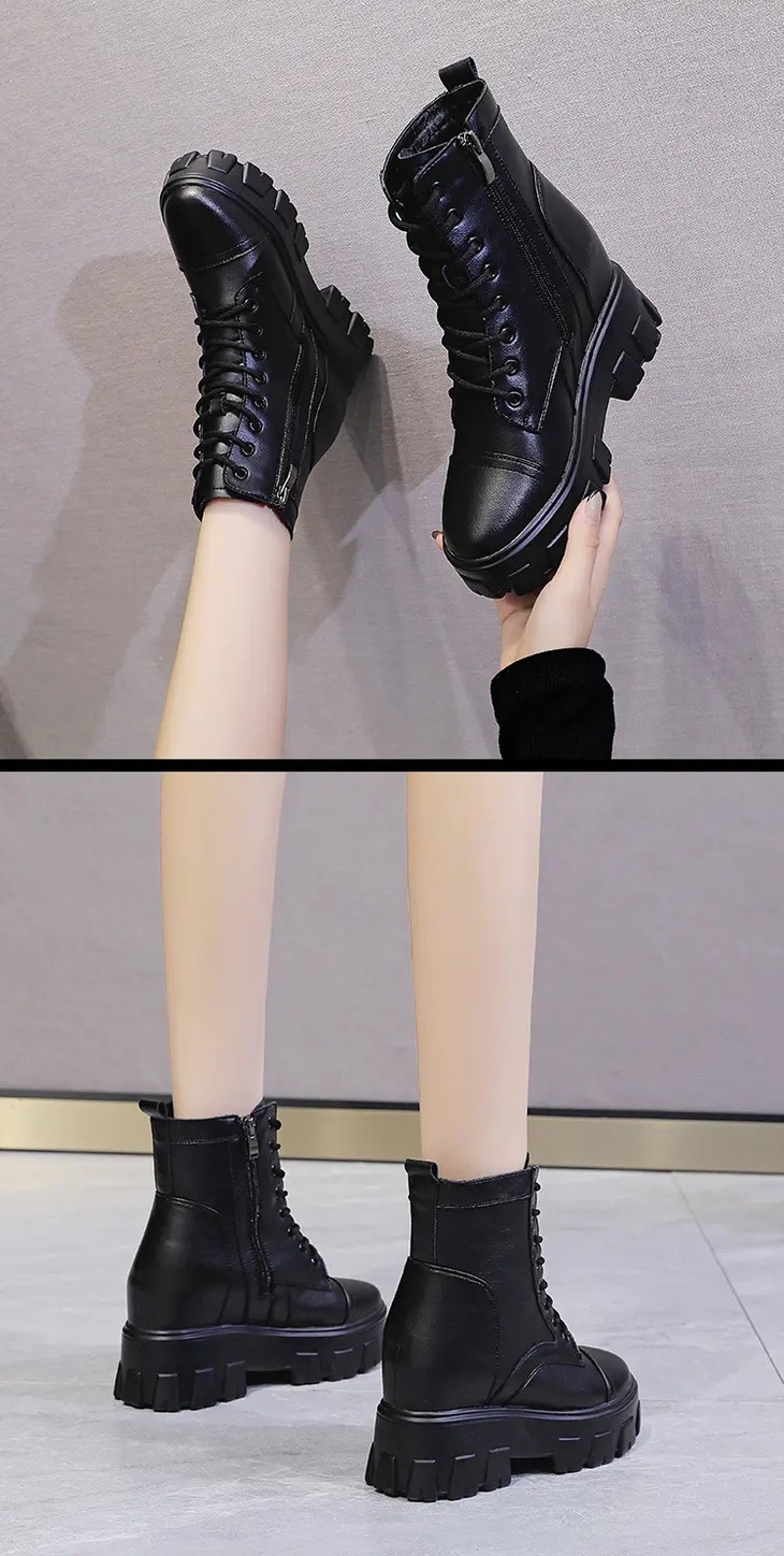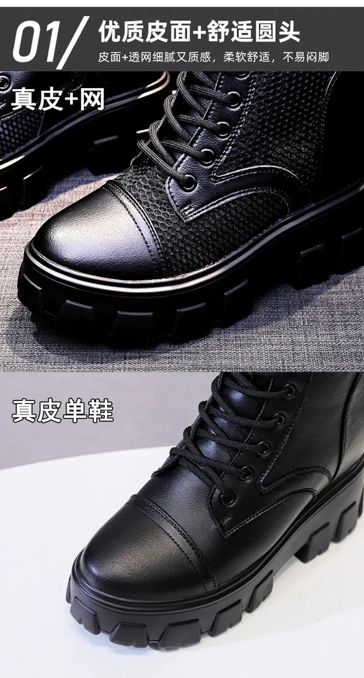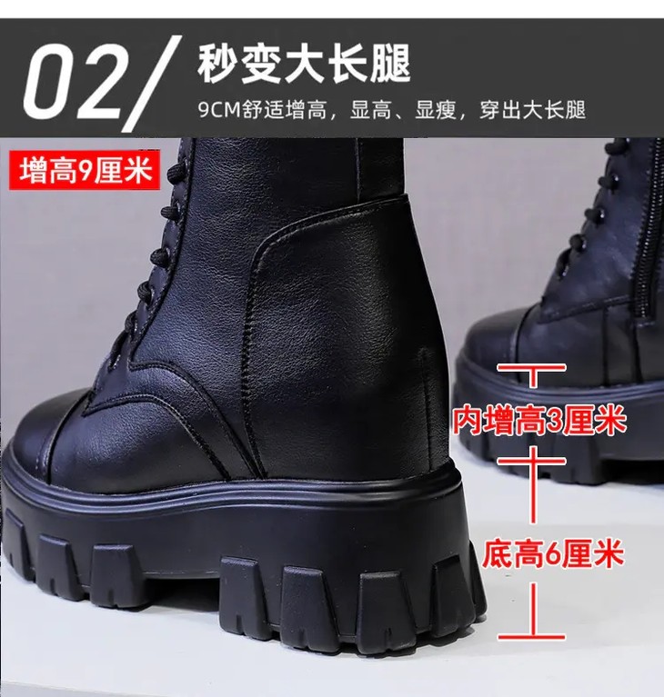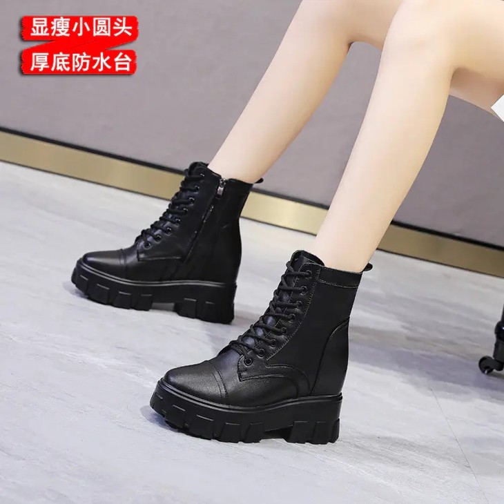 真皮女靴马蹄跟,中筒增高韩版百搭休闲女短靴AM225