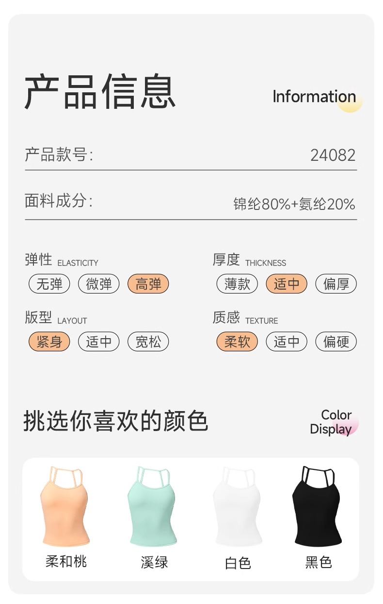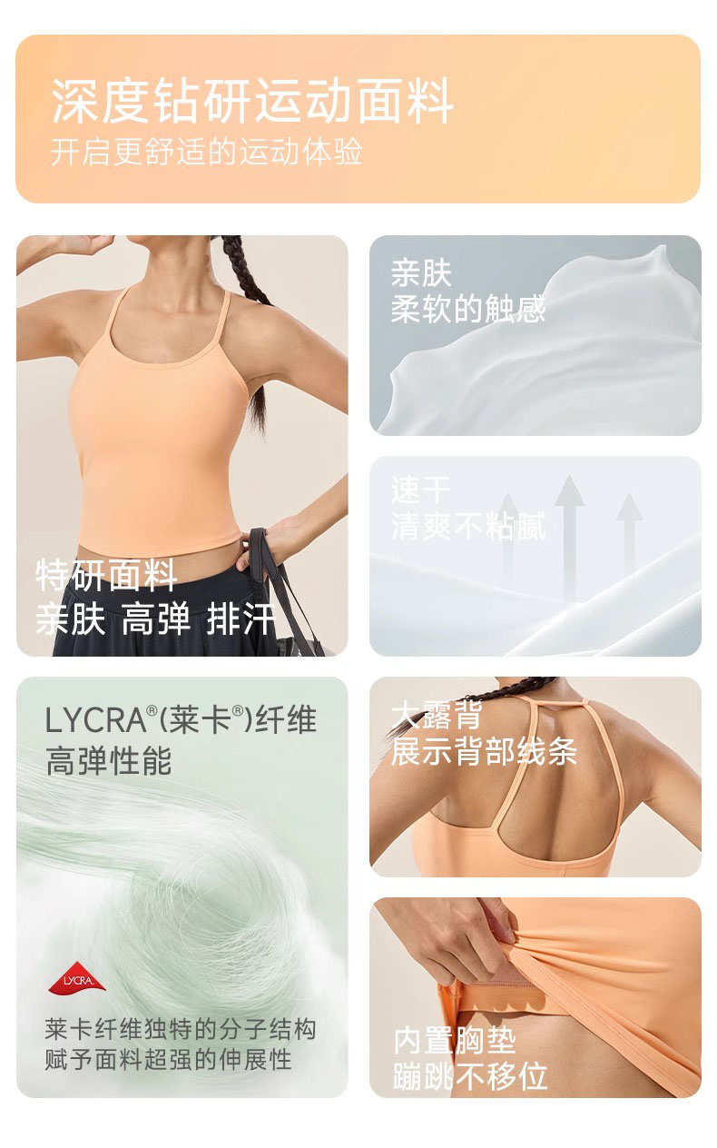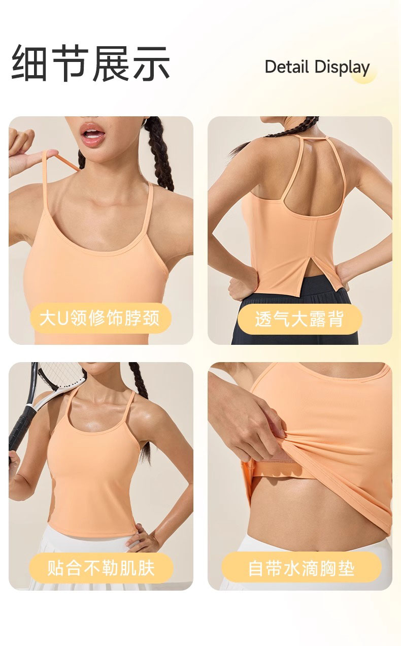 跃牌【欲动春风】系列 瑜伽背心女吊带性感运动内衣含胸垫开叉健身跑步上衣24082