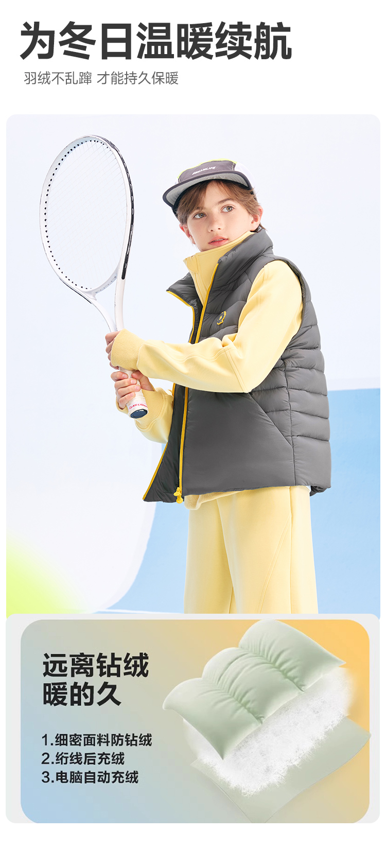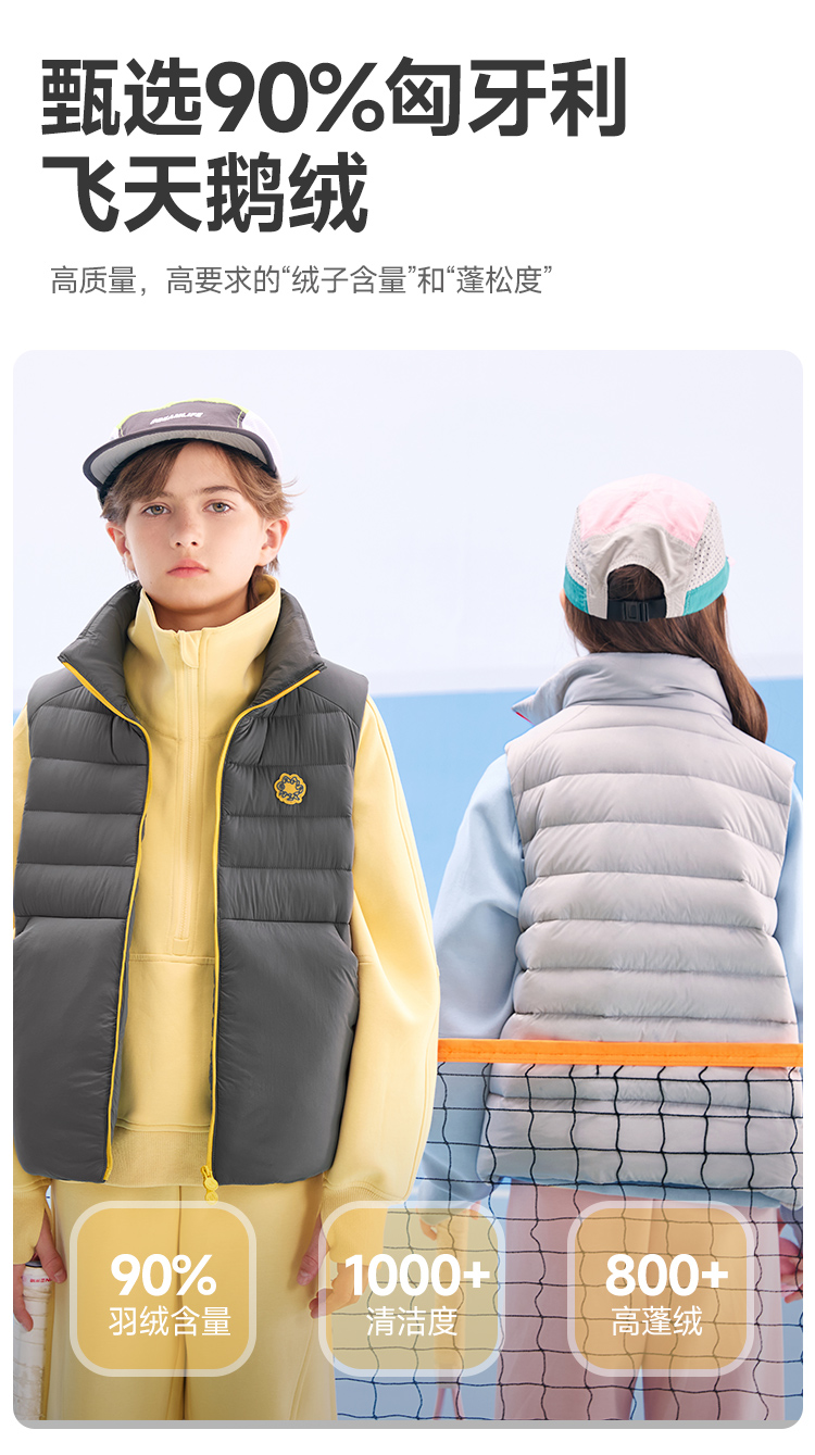 奇动童装男女童冬季羽绒服保暖白鹅绒儿童外套2025新款马甲DERMJ25617 商品图2