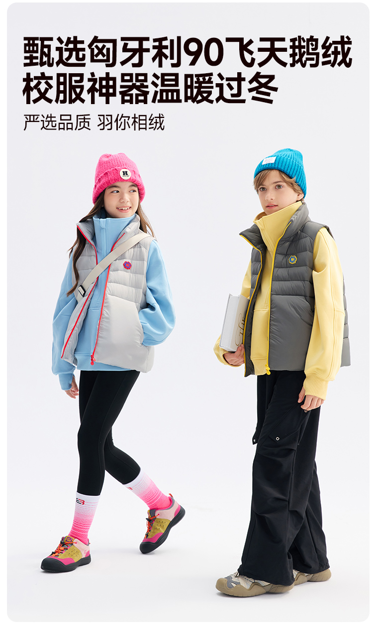 奇动童装男女童冬季羽绒服保暖白鹅绒儿童外套2025新款马甲DERMJ25617 商品图0