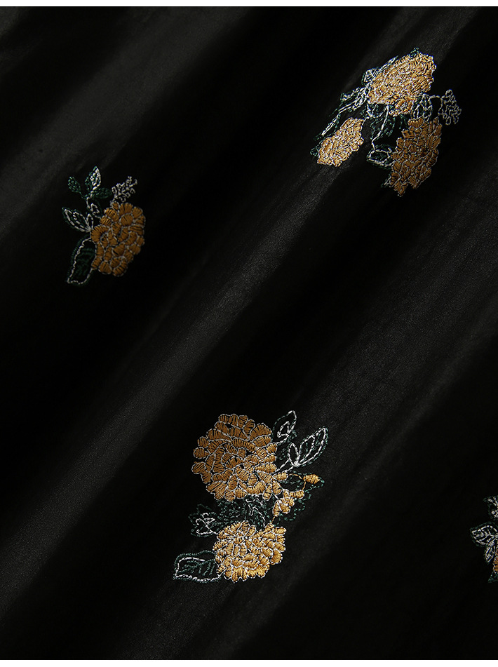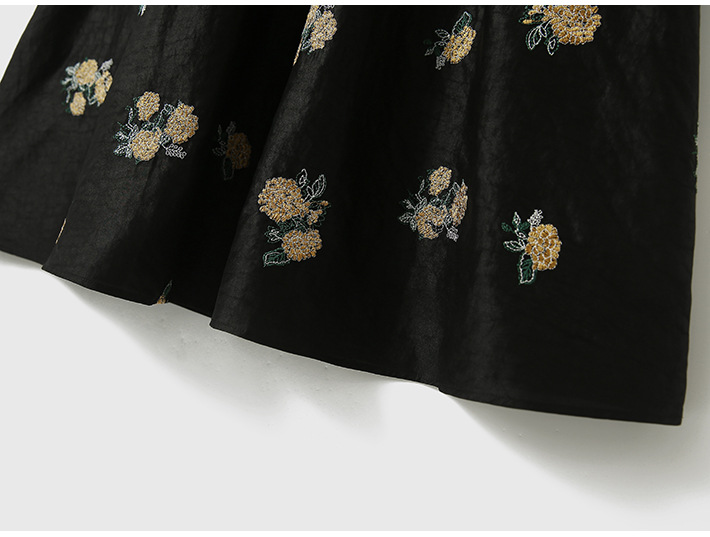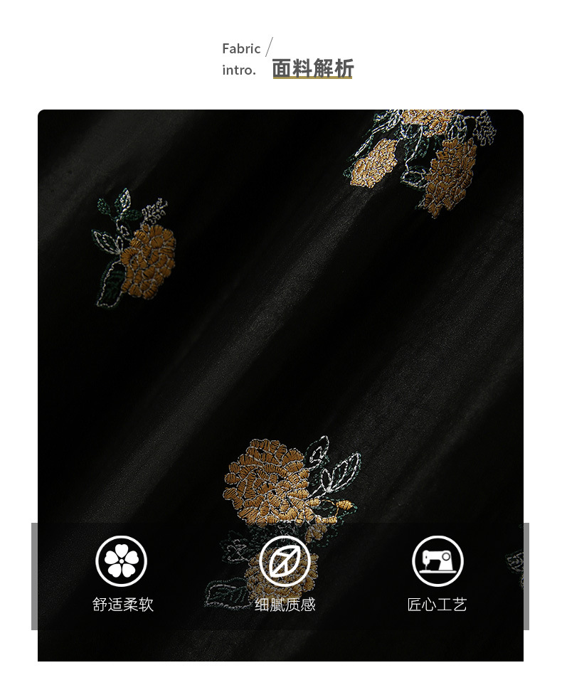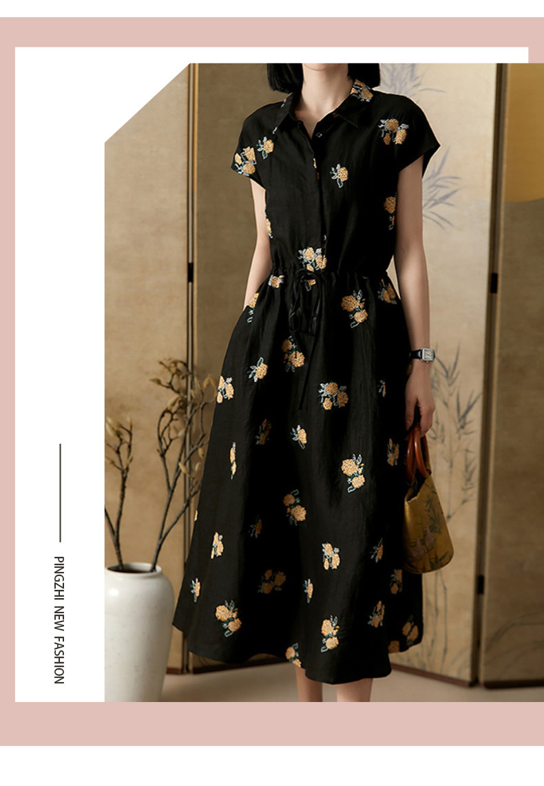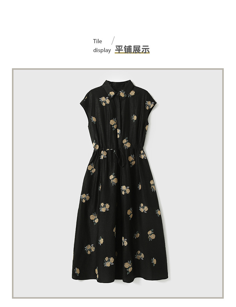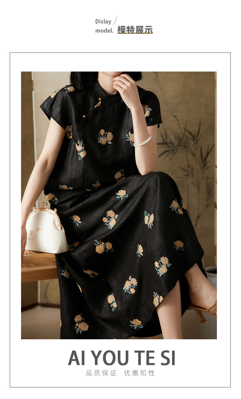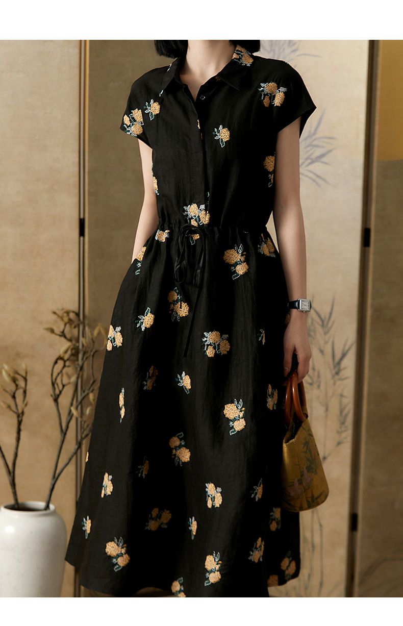 丁摩 全真丝绣球花刺绣 香云纱连衣裙LZ4447