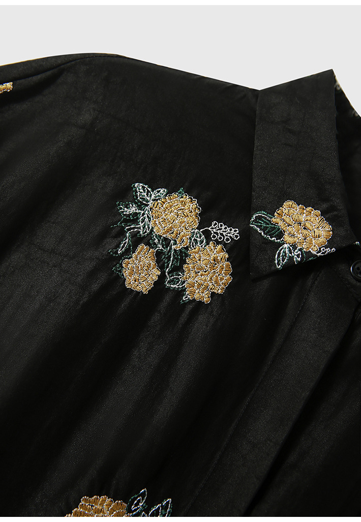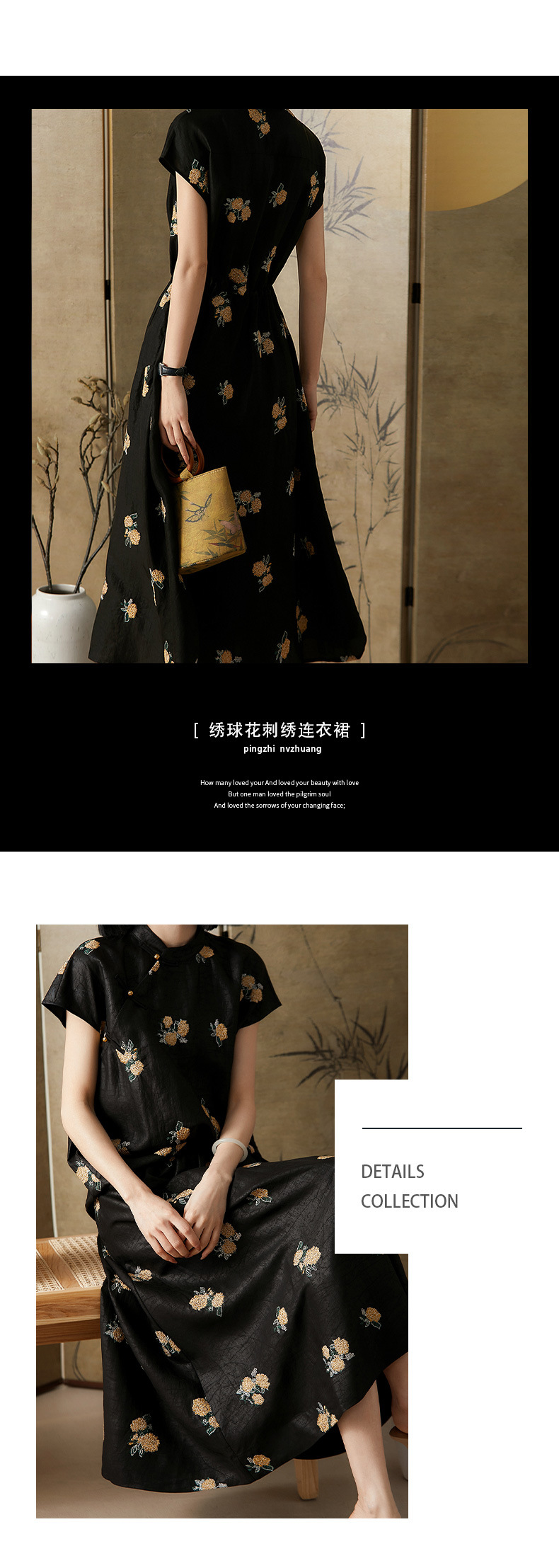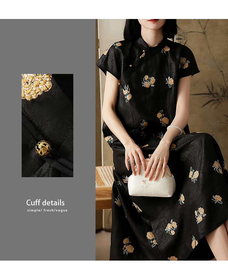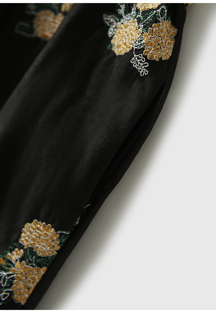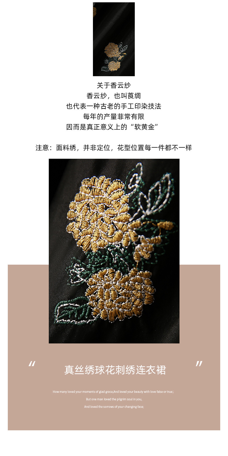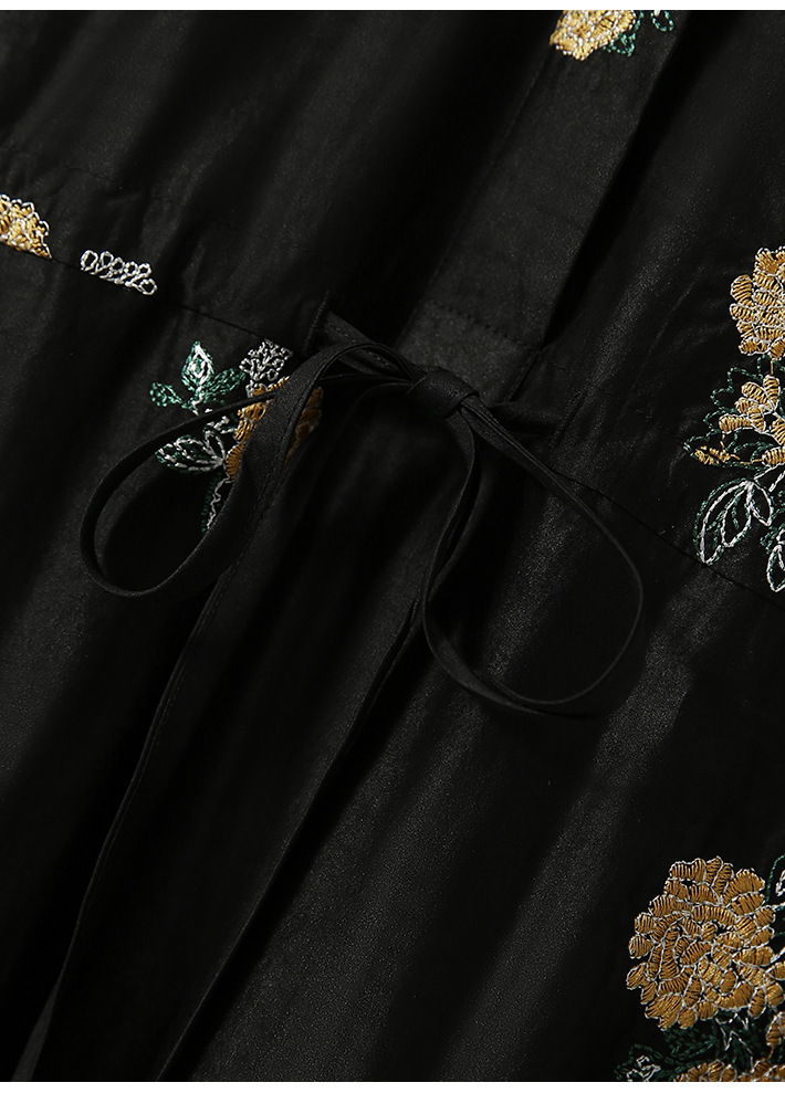 丁摩 全真丝绣球花刺绣 香云纱连衣裙LZ4447