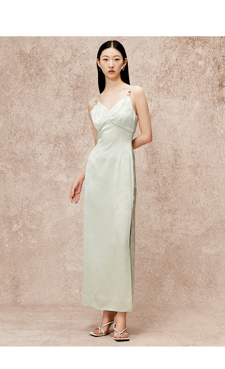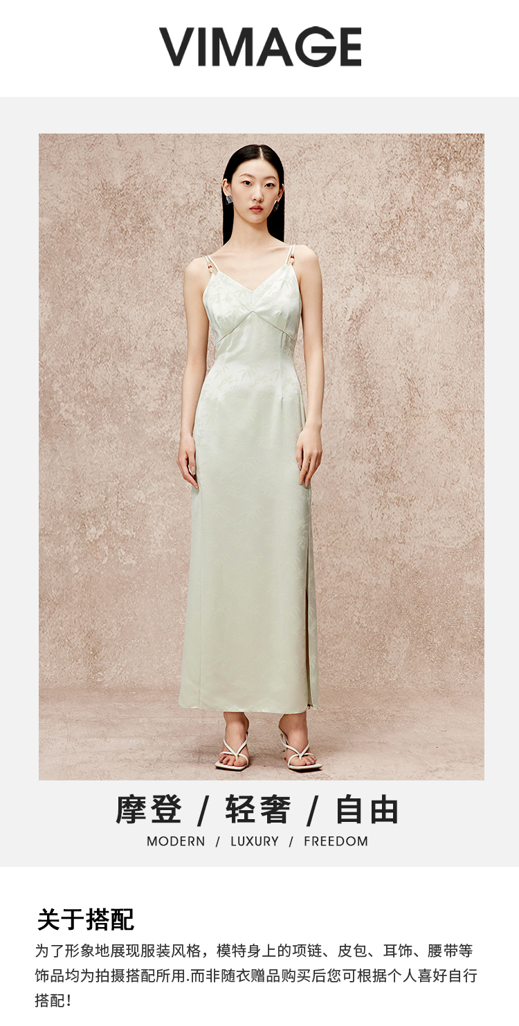 VIMAGE纬漫纪高级感缎面垂坠露背吊带礼服连衣裙秋季新款V2277801
