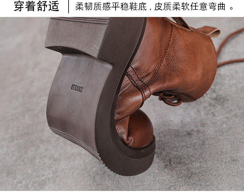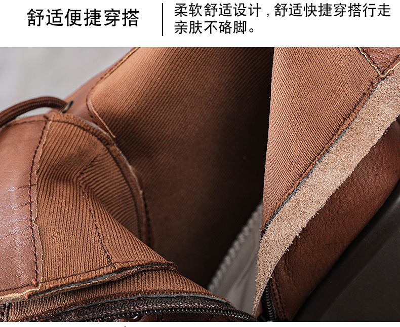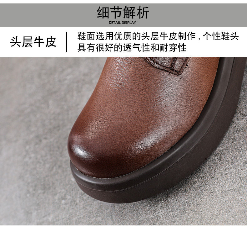 YR 2939真皮粗跟短靴厚底马丁靴圆头单靴短筒棉靴 商品图4