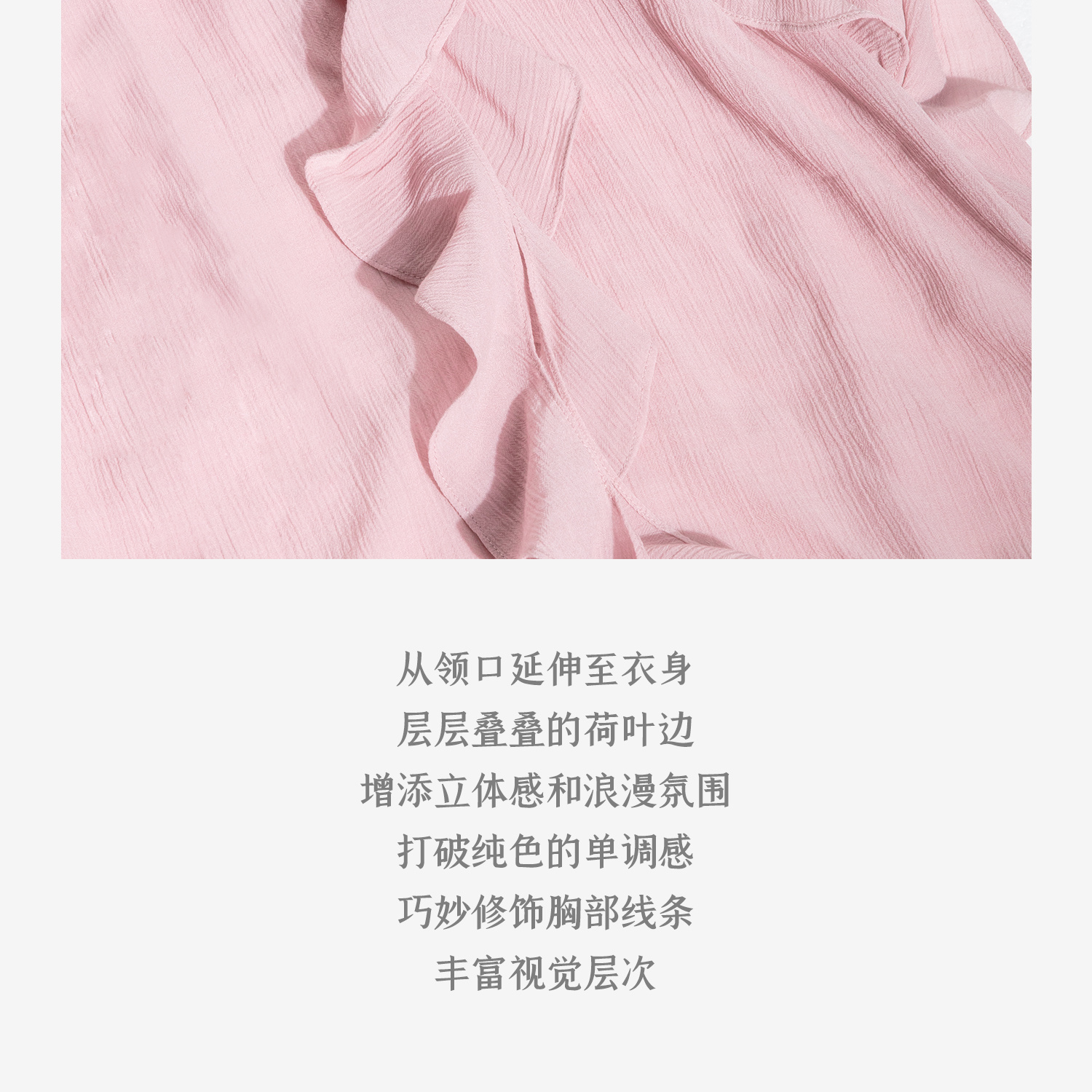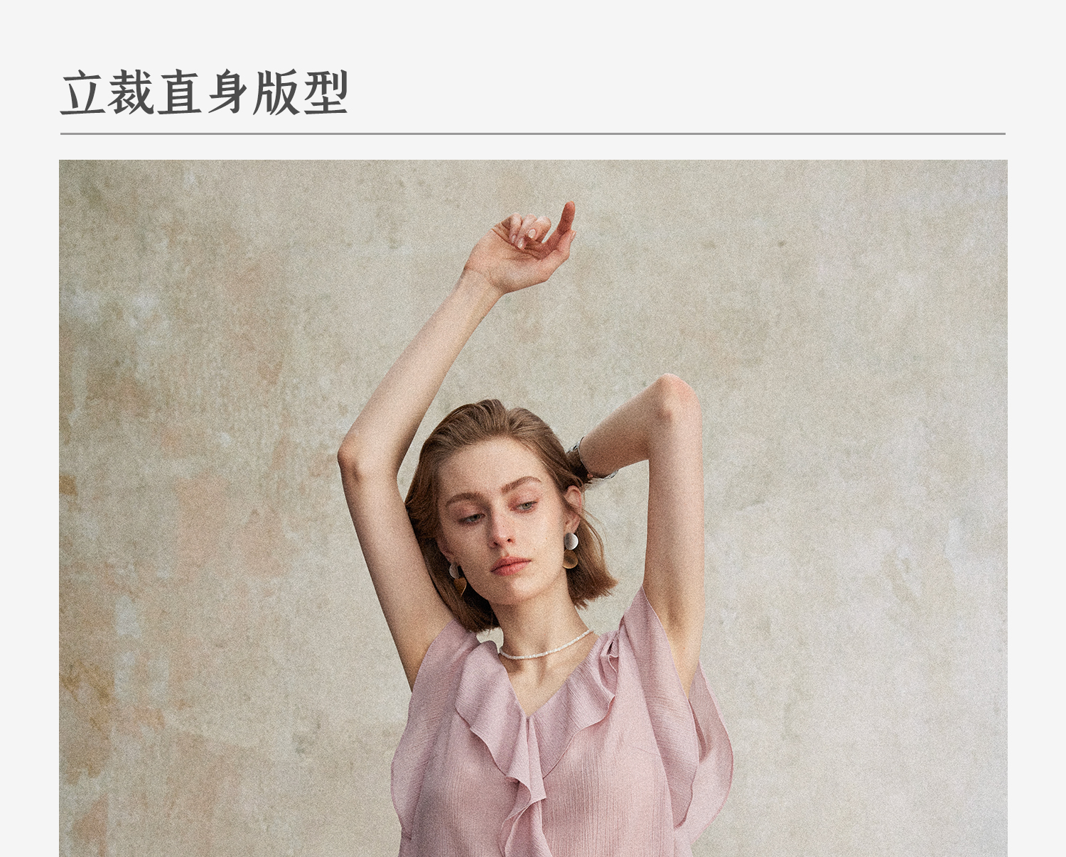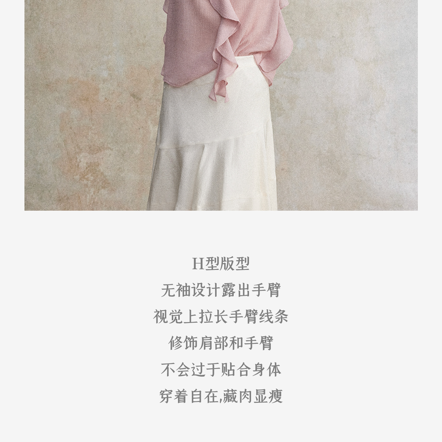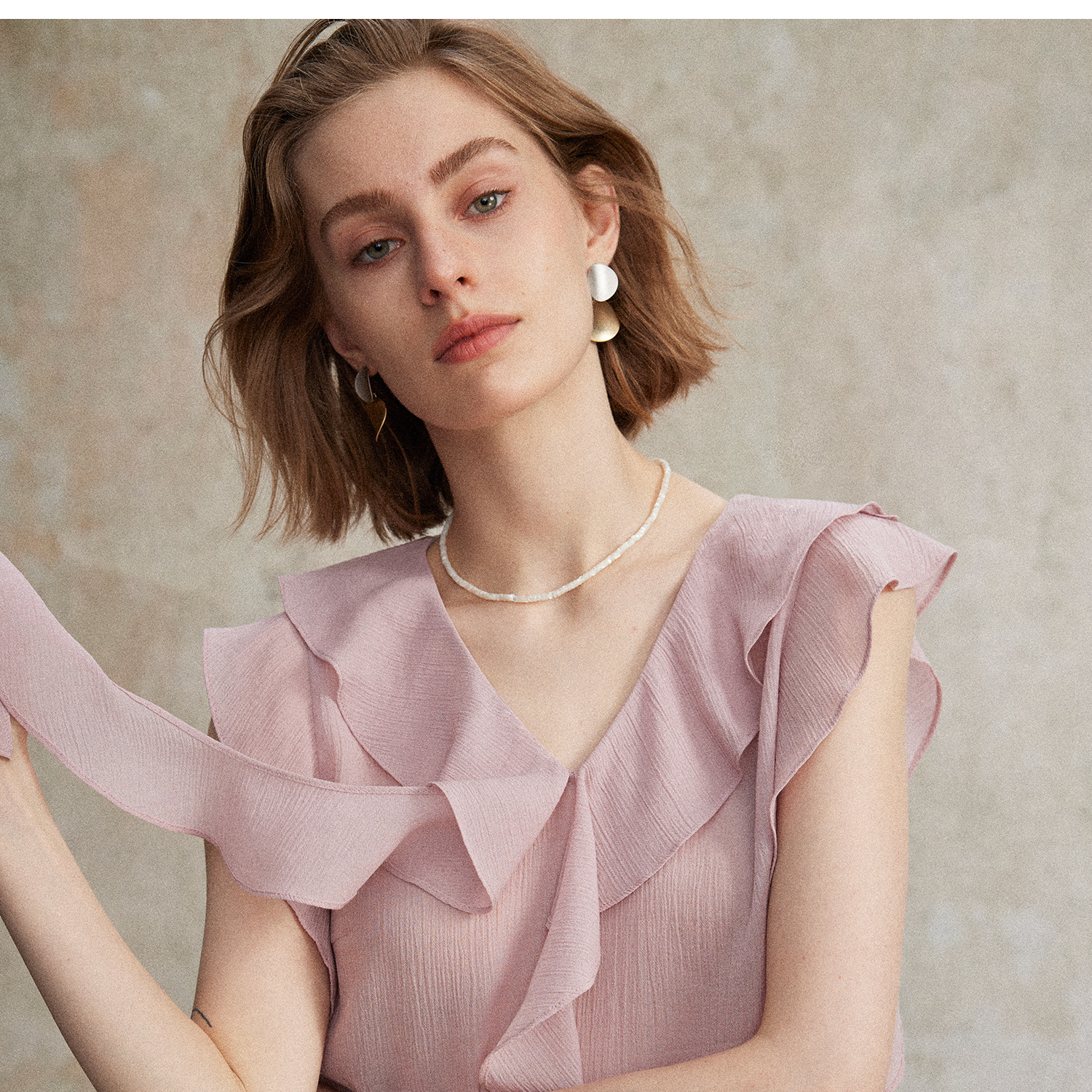 C+IMPRESS/西嘉天丝羊毛混纺 优雅法式浪漫荷叶边V领衬衫无袖上衣CS2502119