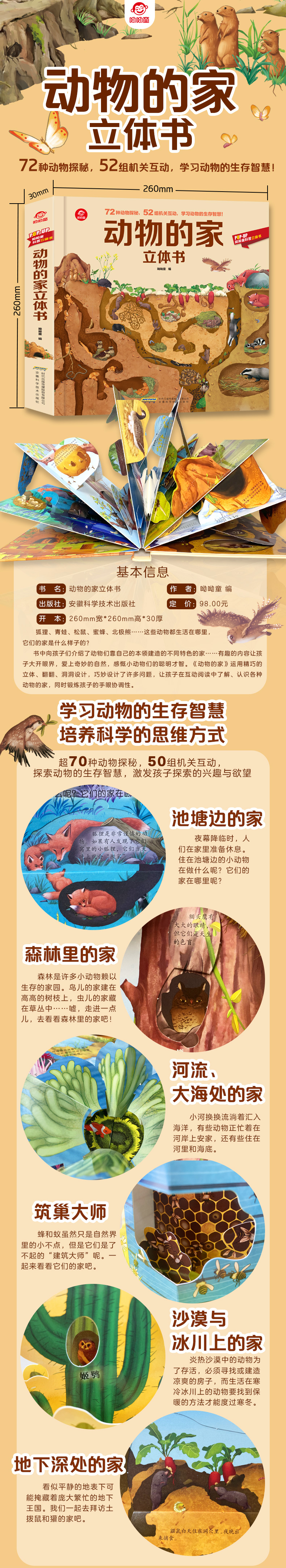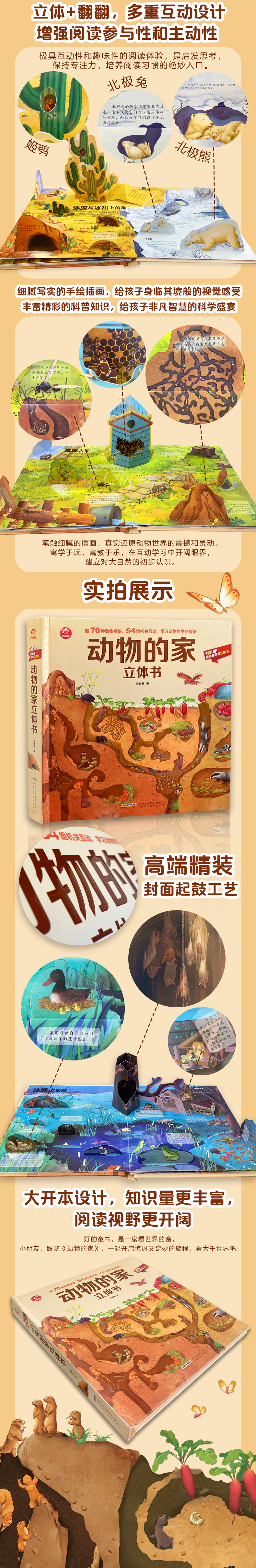 新书预售 动物的家立体书3-6岁揭秘动物3D翻翻书AR动物儿童百科全书POP-UP科普立体书