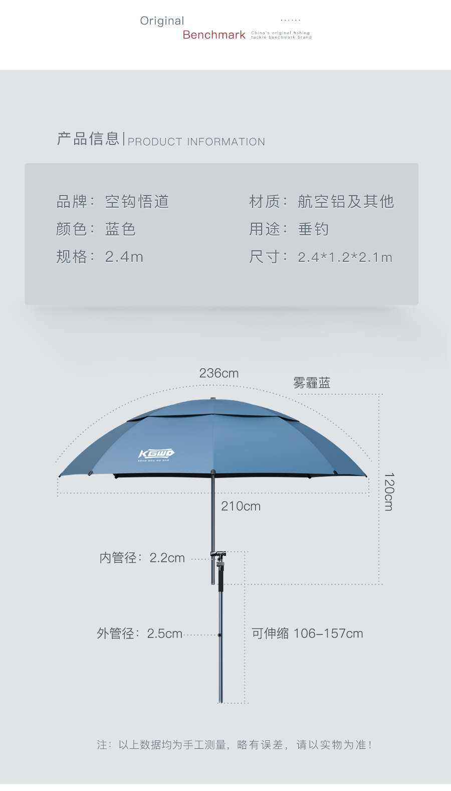 空钩悟道全遮光钓鱼伞 2.4米万向防雨新款钓鱼遮阳伞防晒垂钓雨伞