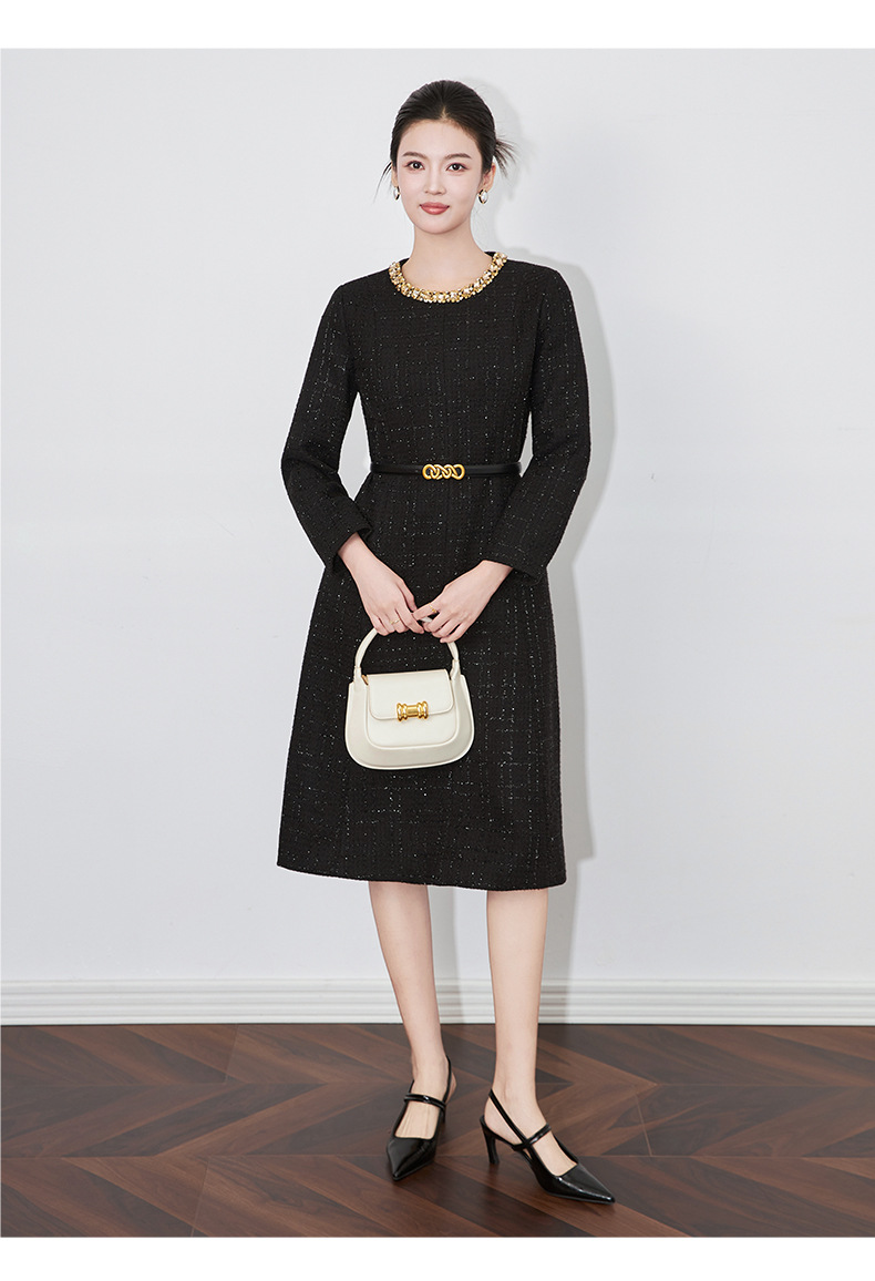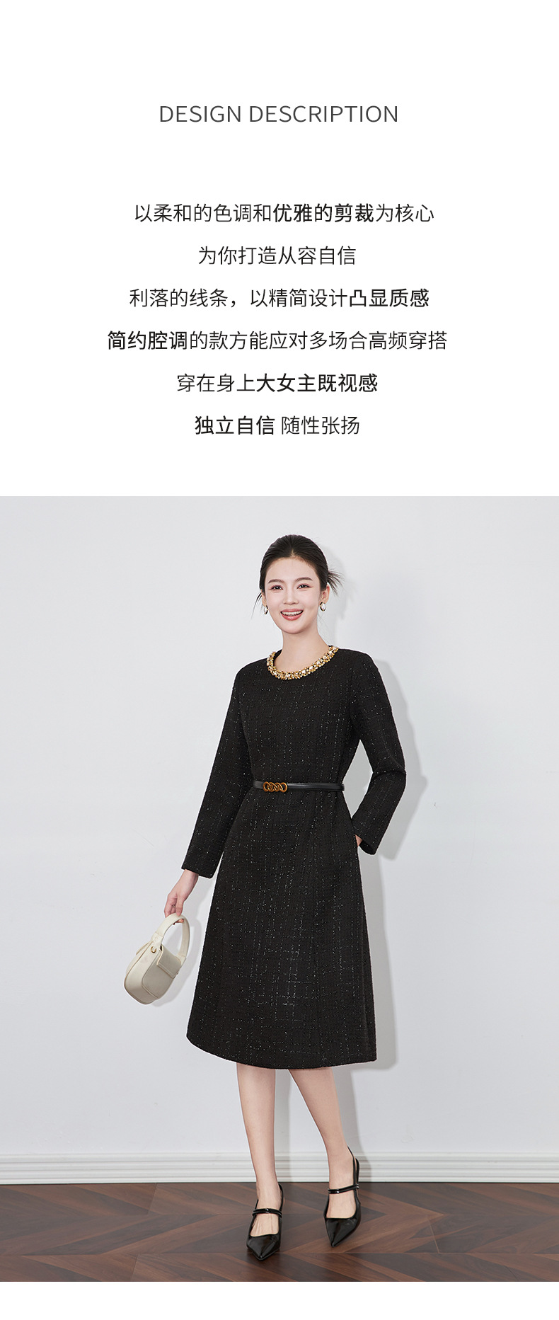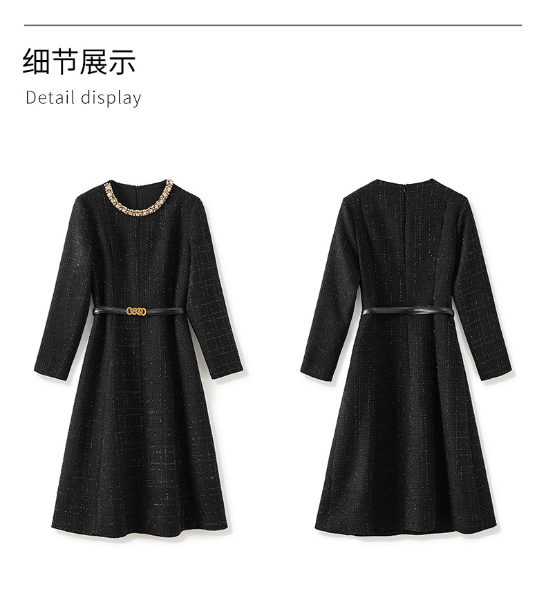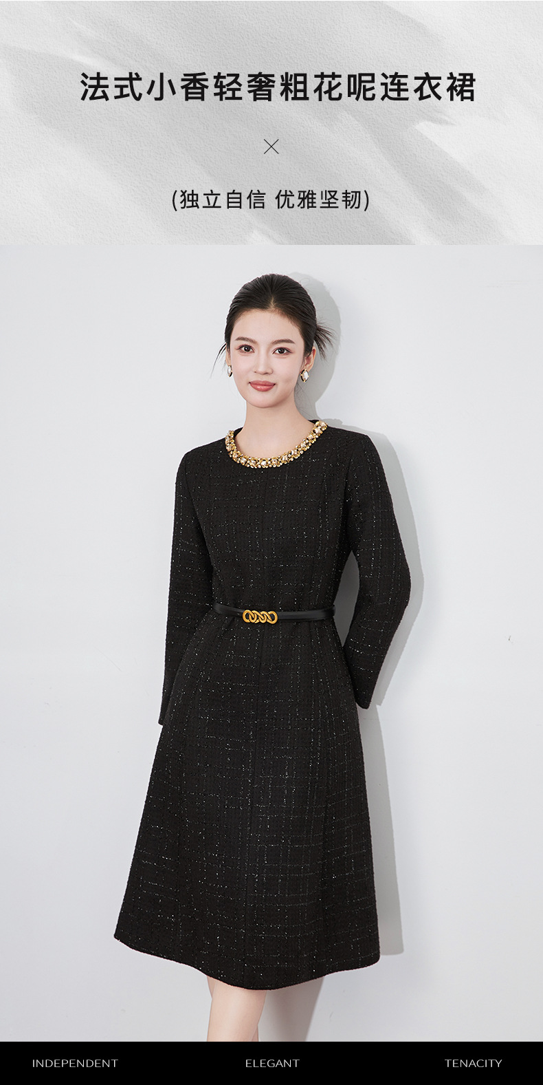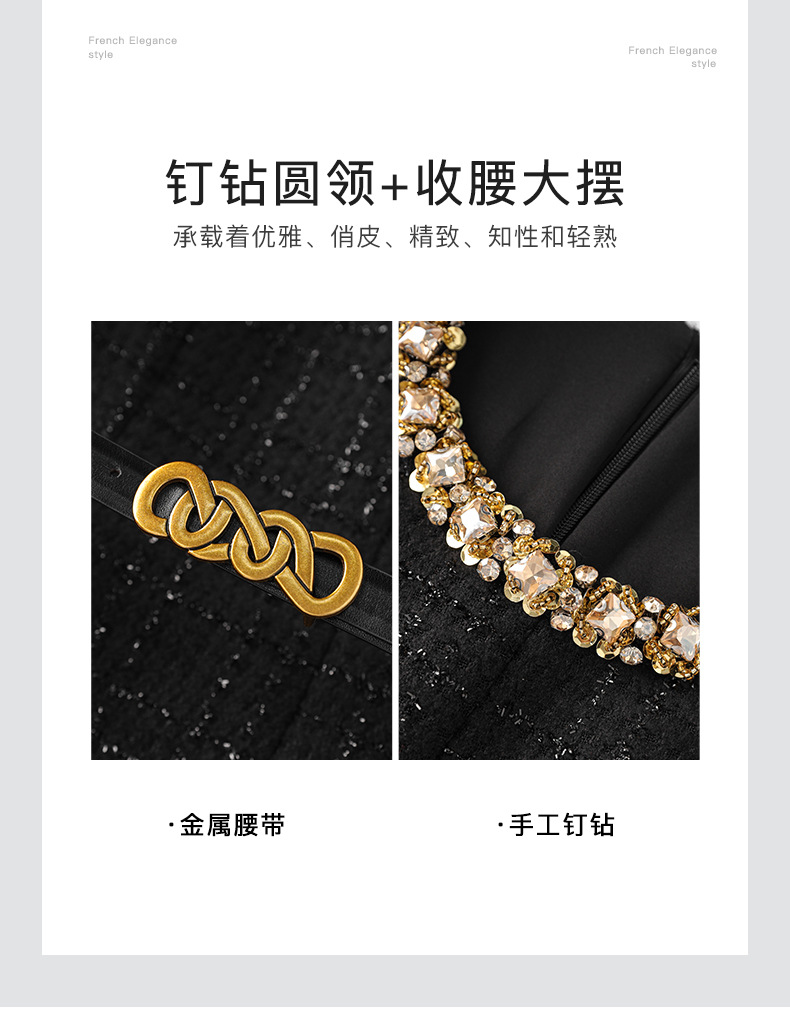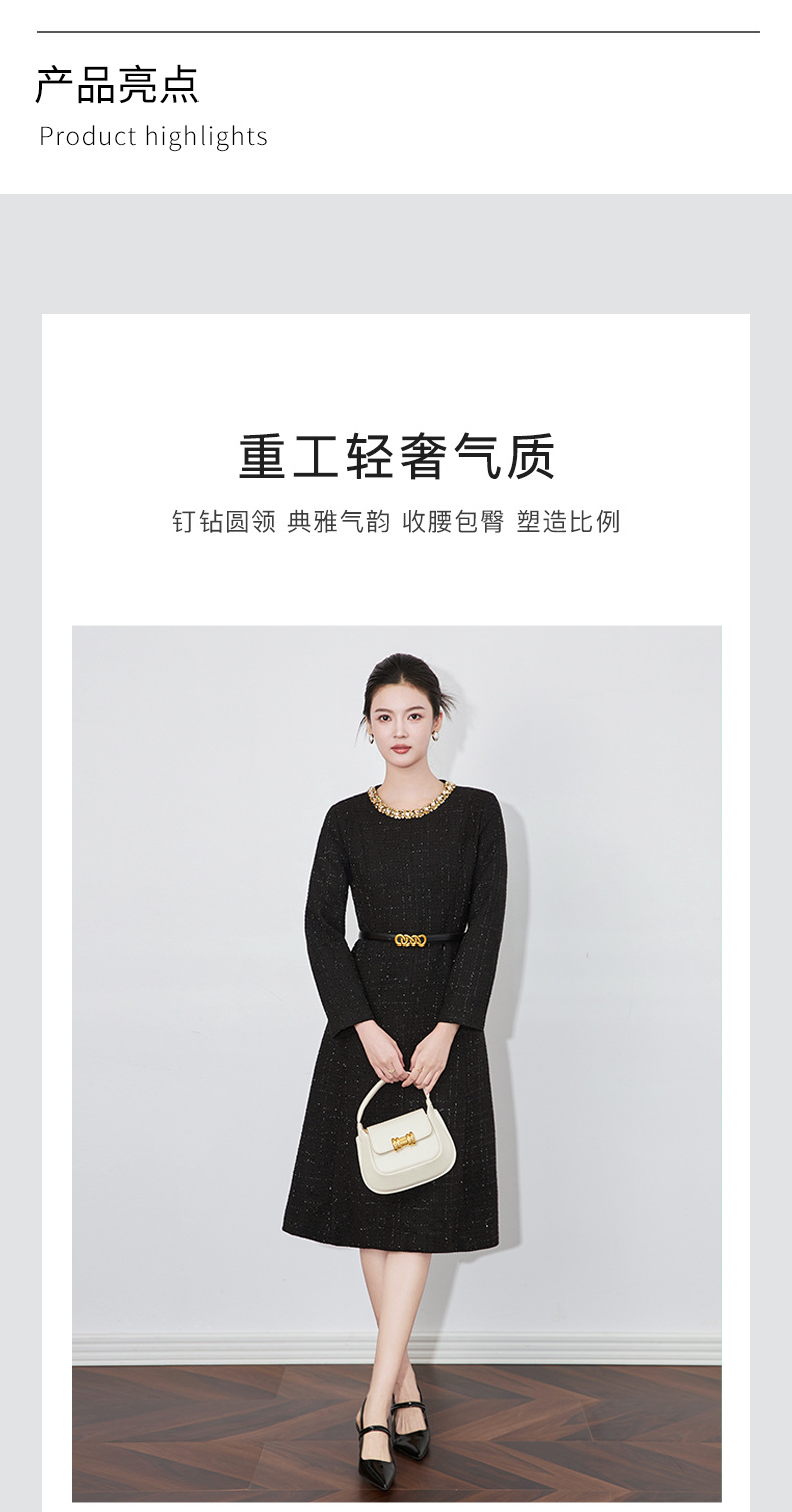 【高货wl】全新升级【铂金会员413/天猫559/差价146】(95546) 洛诗琳秋冬新款小香风重工圆领金钻亮丝时尚洋气连衣裙