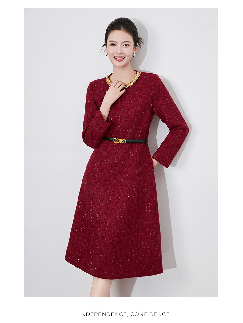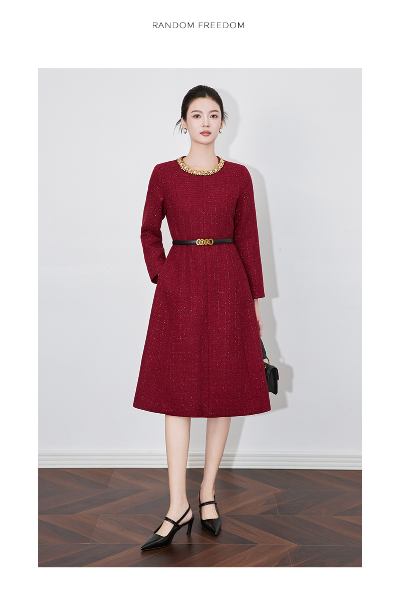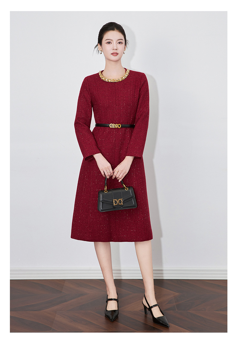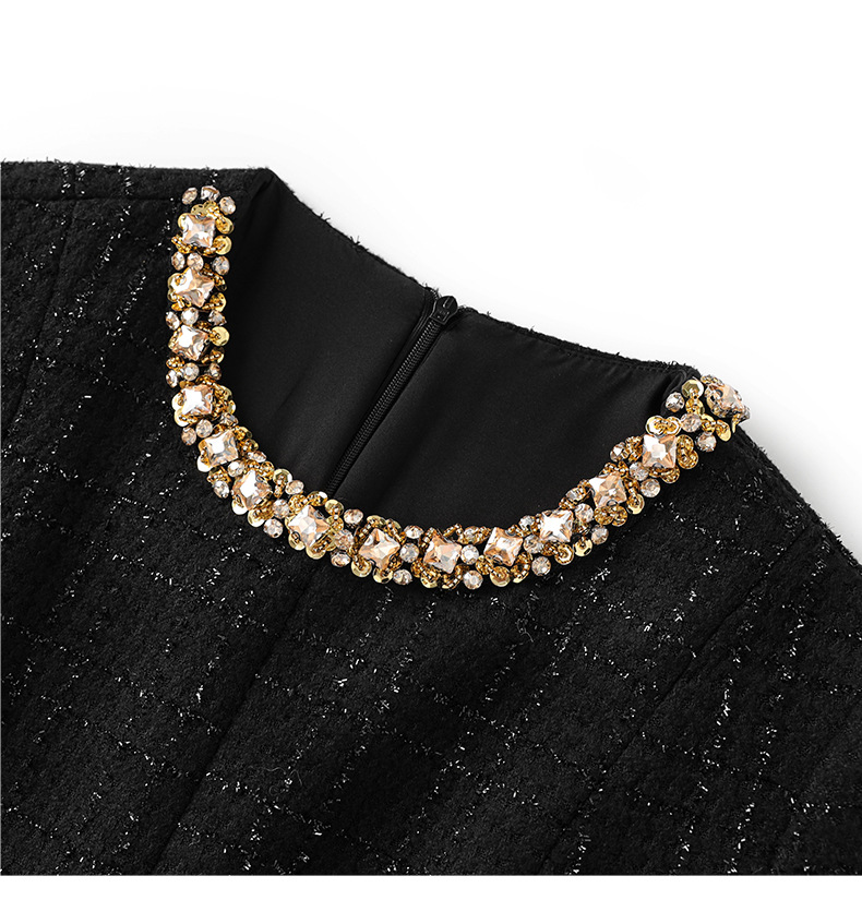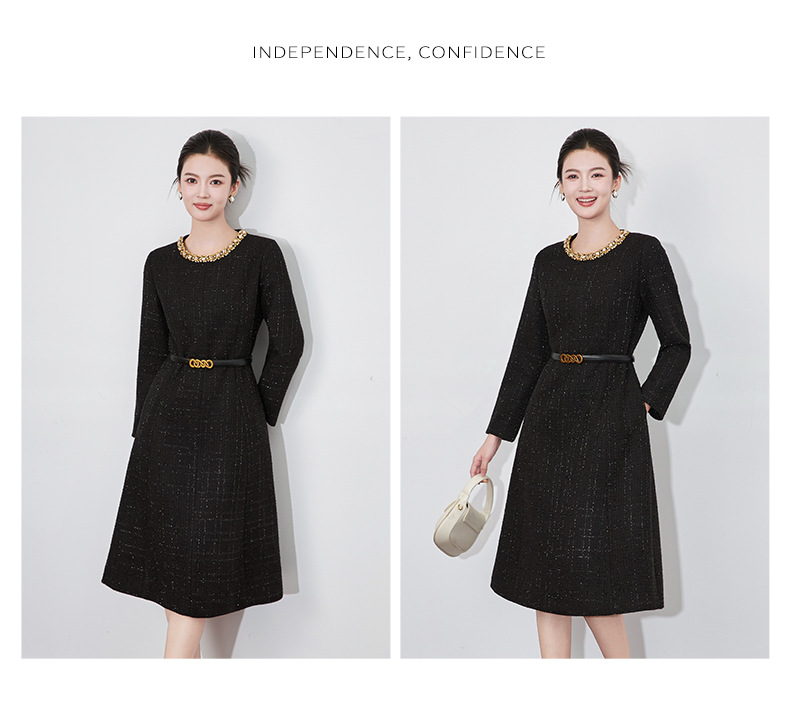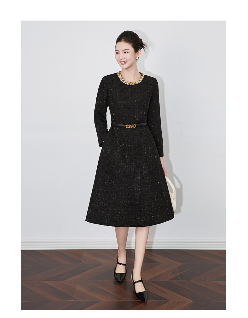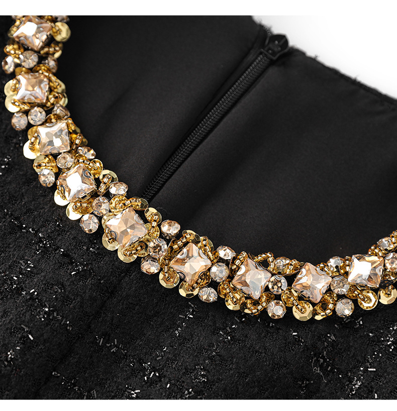 【高货wl】全新升级【铂金会员413/天猫559/差价146】(95546) 洛诗琳秋冬新款小香风重工圆领金钻亮丝时尚洋气连衣裙