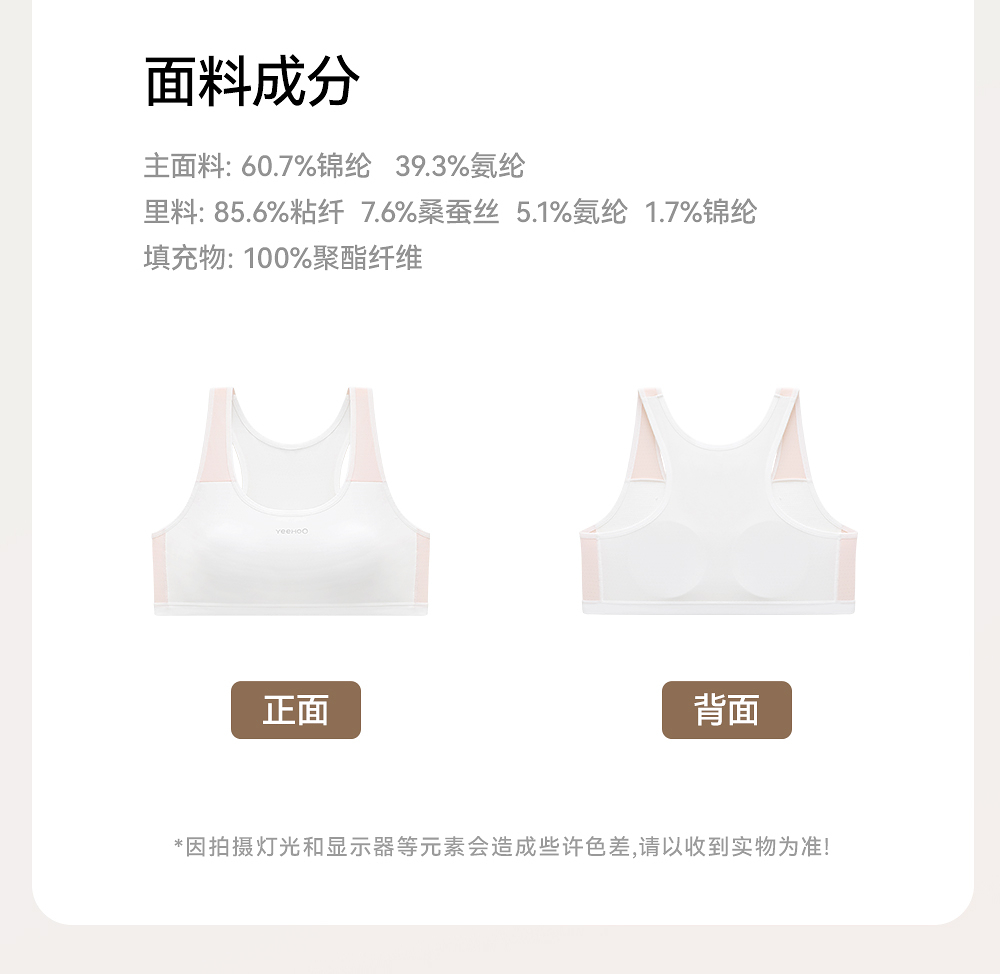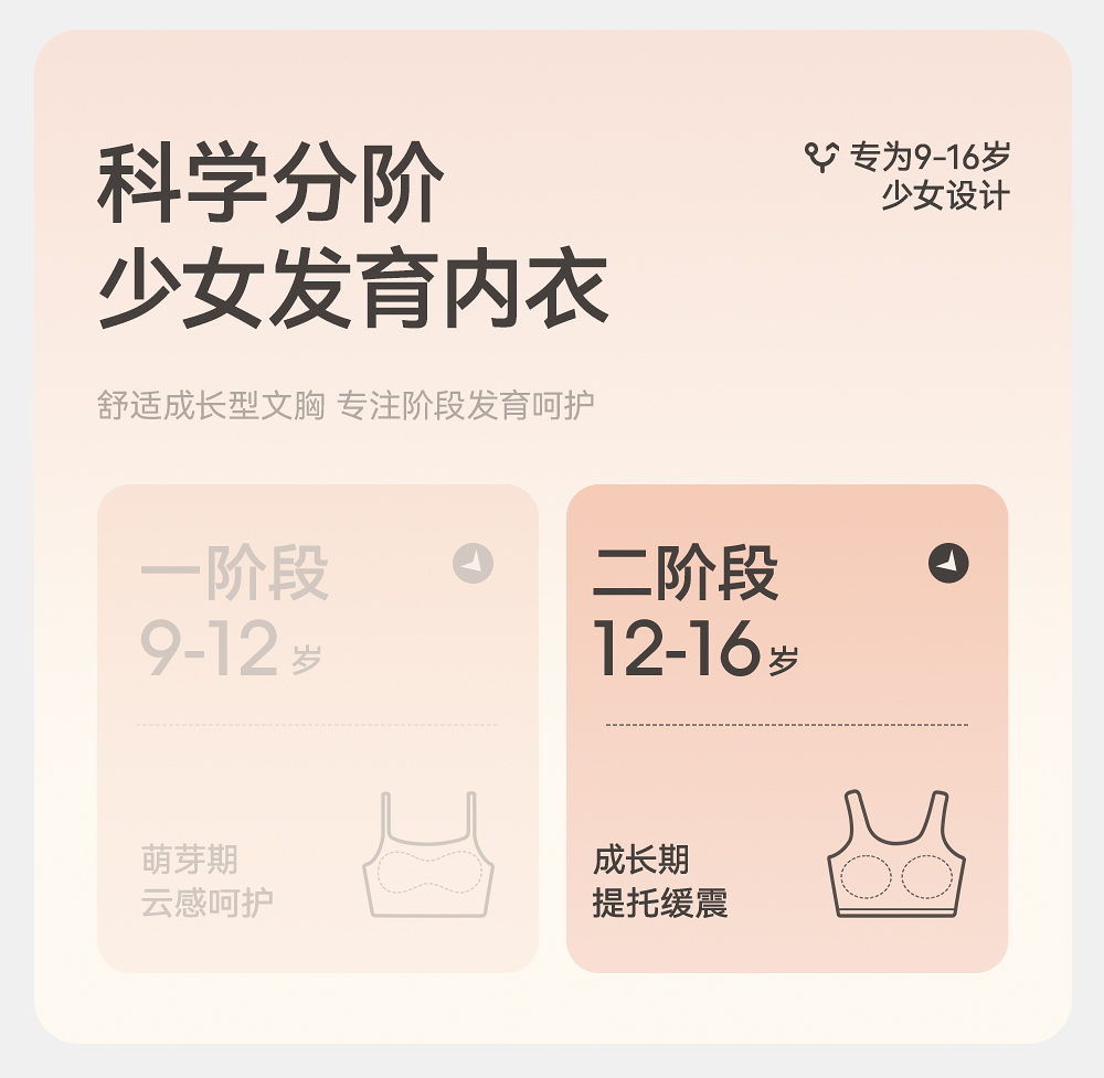 英氏少女发育抹胸无痕透气青春期女运动内衣抗菌女大童背心二阶段