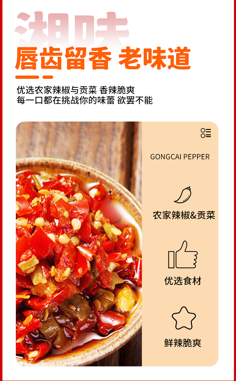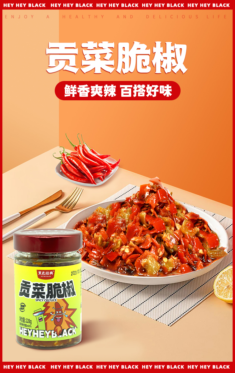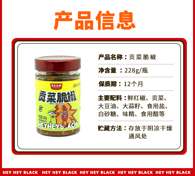 【1瓶装120积分+10元】黑色经典贡菜脆椒(玻璃瓶) 228g