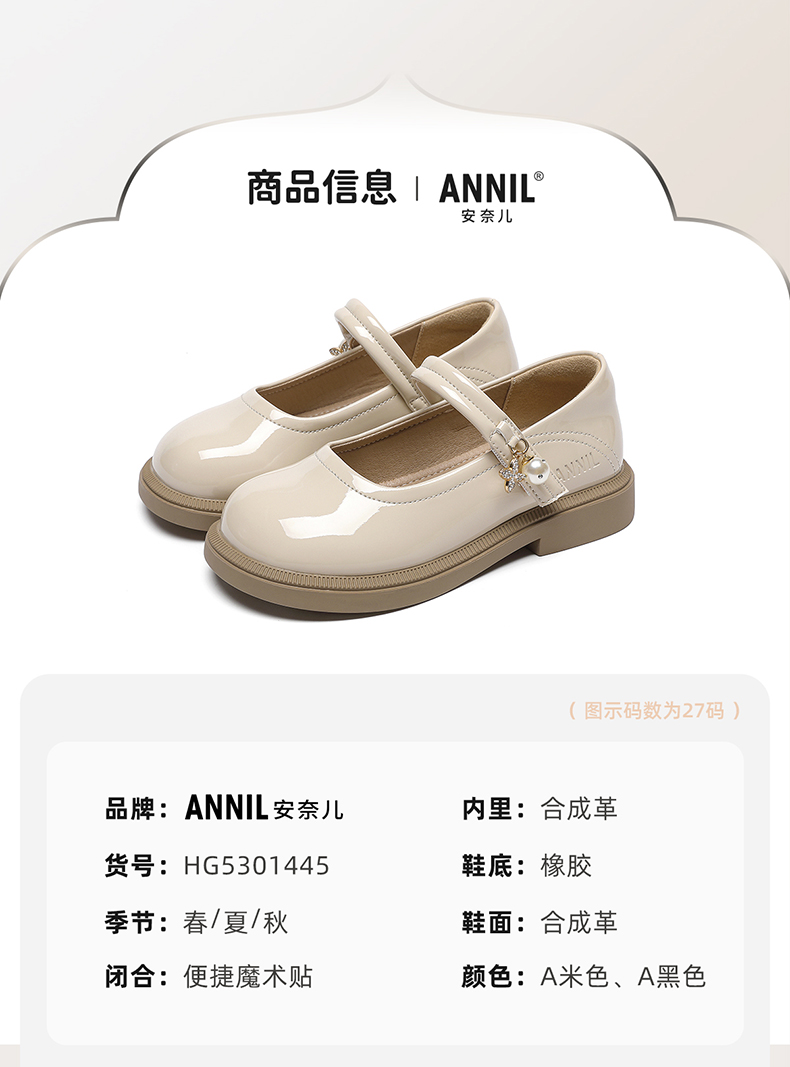 ANNIL/安奈儿百搭亮闪闪水晶软底公主皮鞋HG5301445