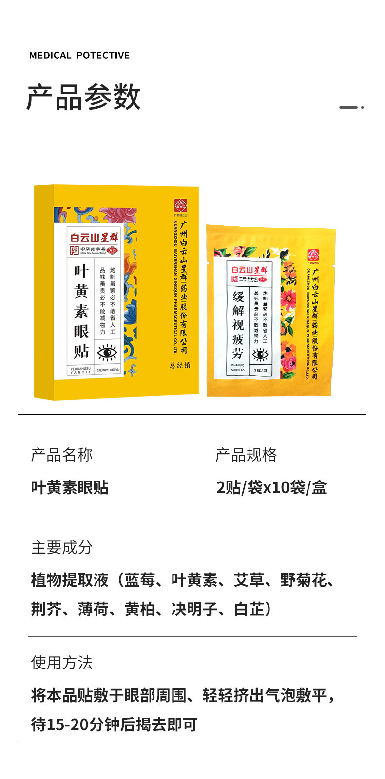 广药白云山叶黄素眼贴 黑眼圈眼疲劳冷敷贴叶黄素眼贴